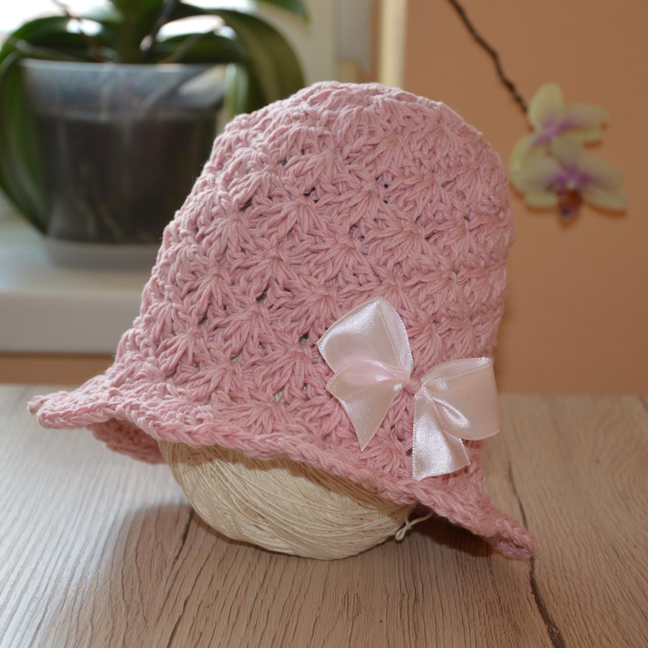 Predám háčkovaný klobúčik/čiapočku zdobenú saténovou mašličkou. Veľkosť je len orientačná. Veci háčkujem podľa mojej ročnej dcéry, iné veľkosti urobím na objednávku. Klobúčik je vhodný na obvod hlavičky 48-50 cm. Farba je skôr staro-ružová.