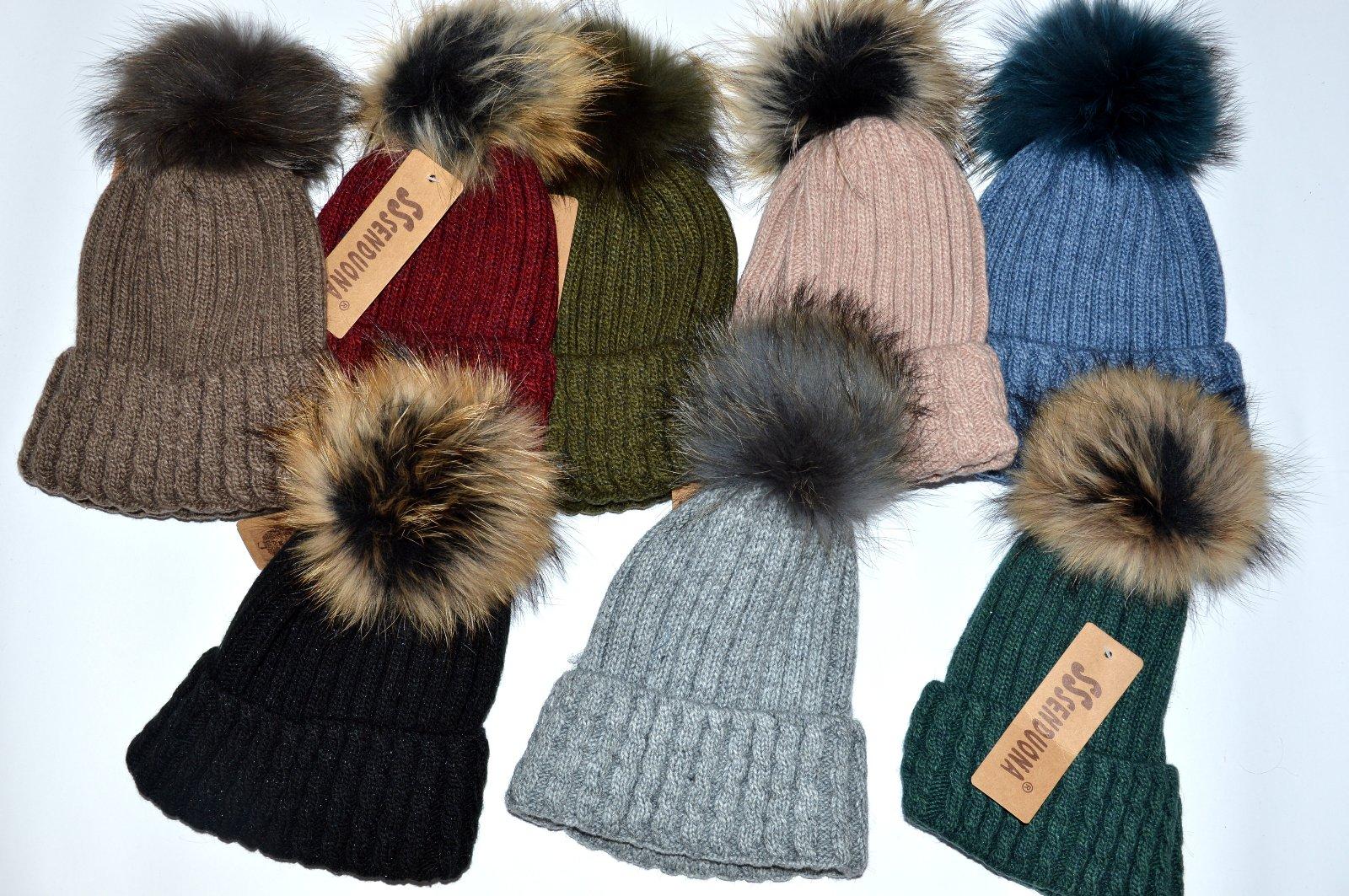 SkladomPletená čiapočka s veľmi pekným vzorom a bohatým brmbolcom.