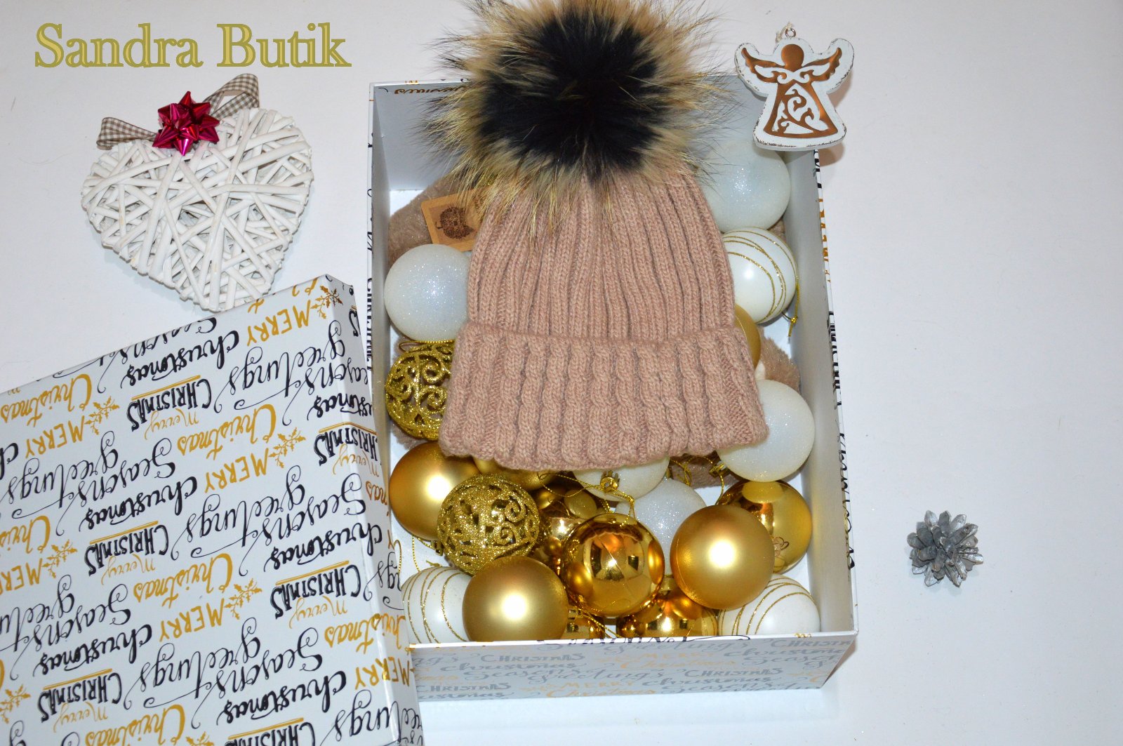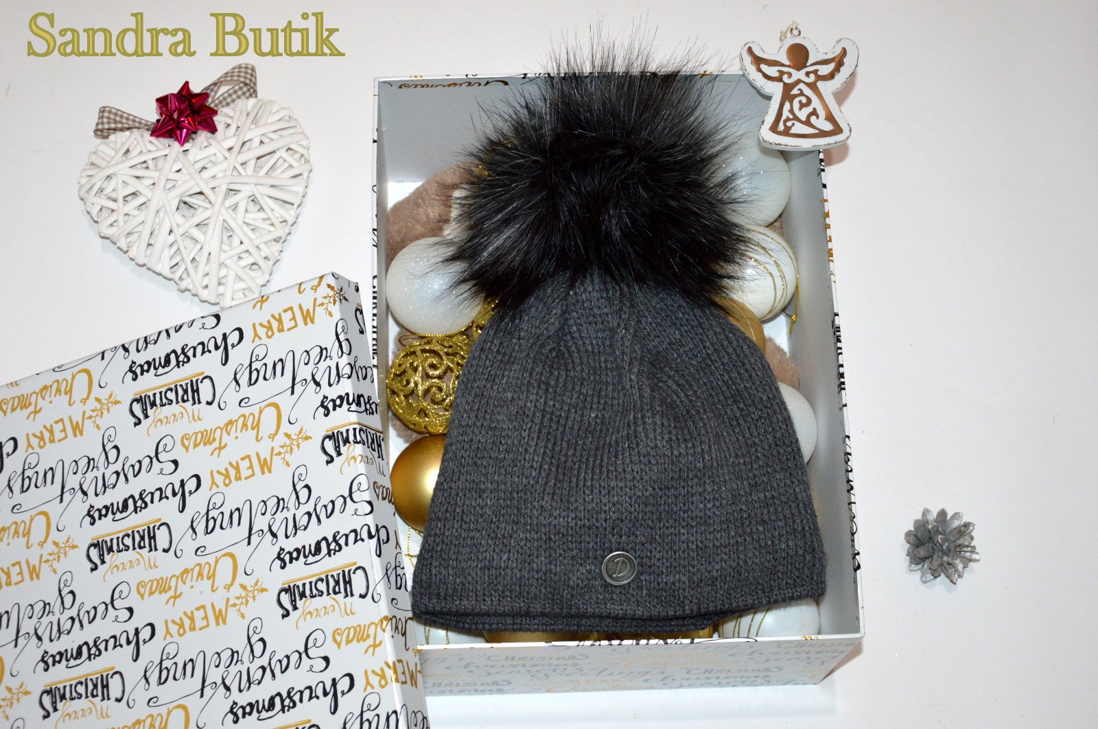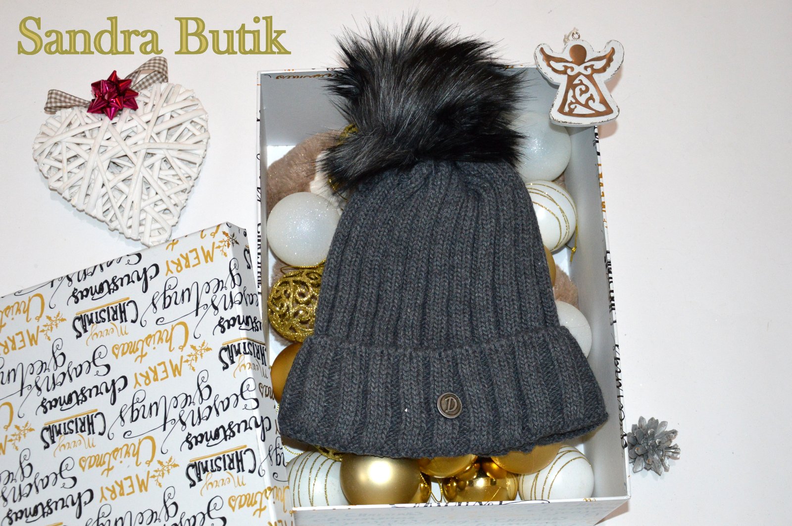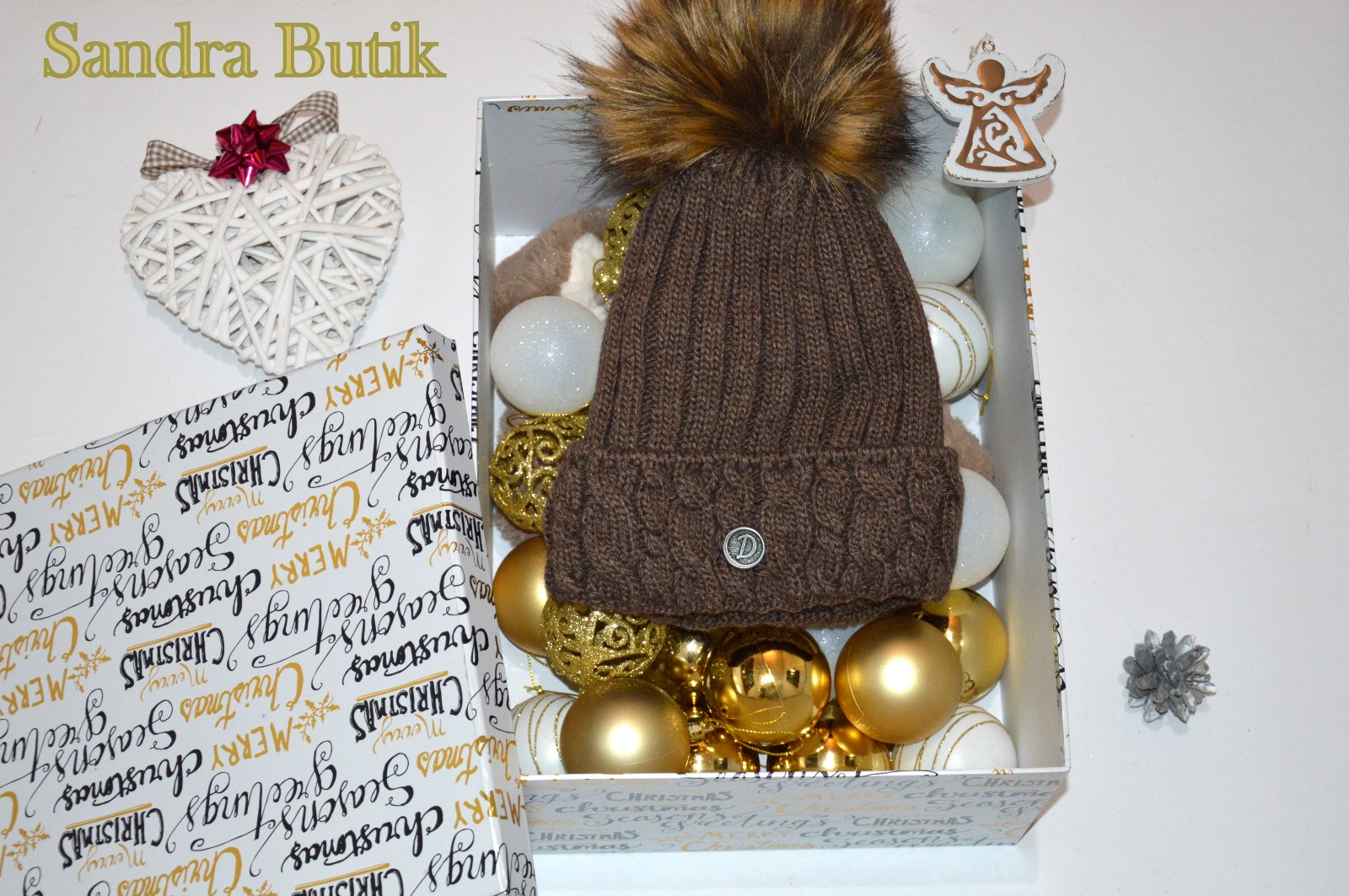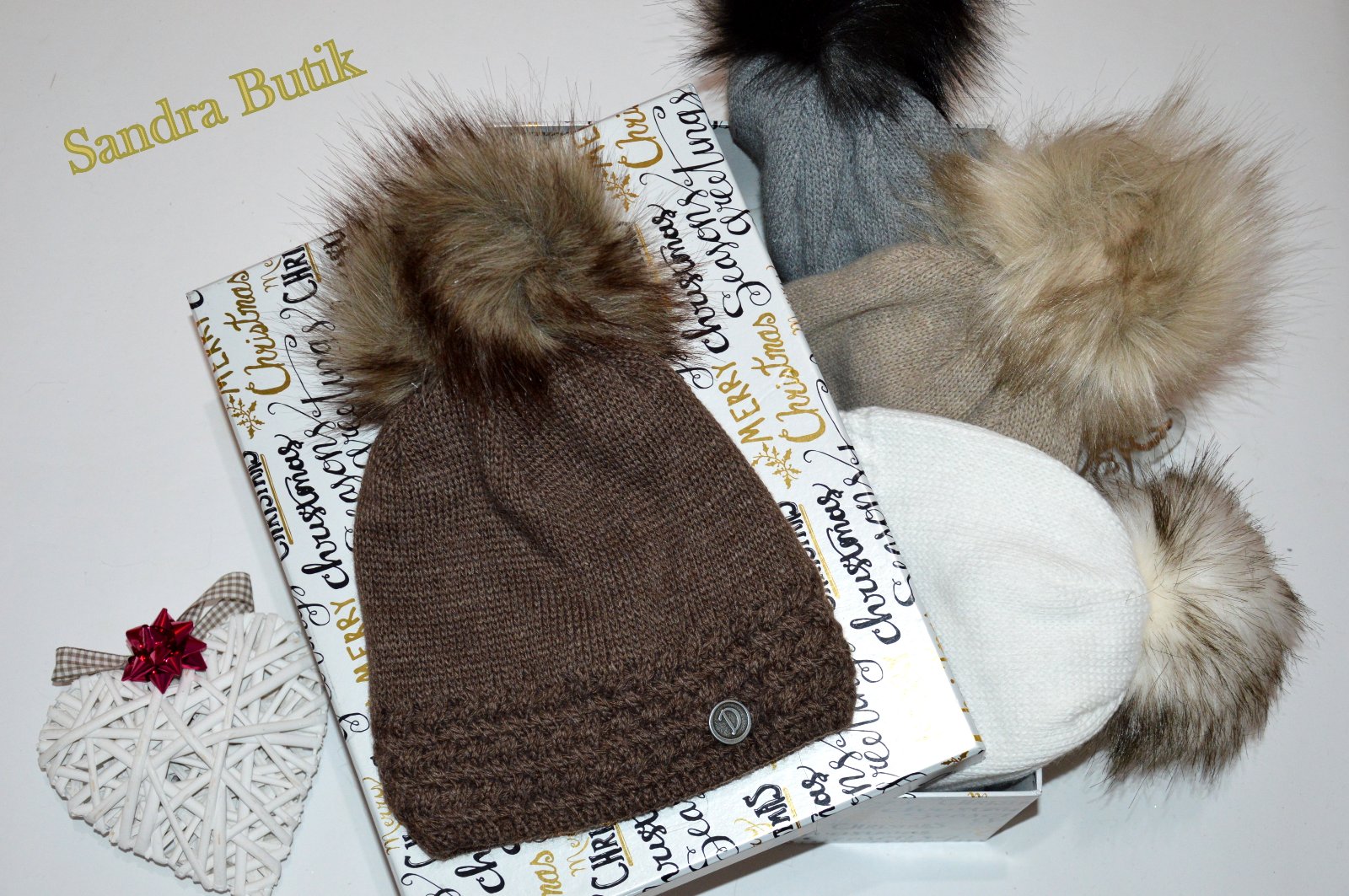 SkladomPletená čiapočka s veľmi pekným vzorom a bohatým brmbolcom.