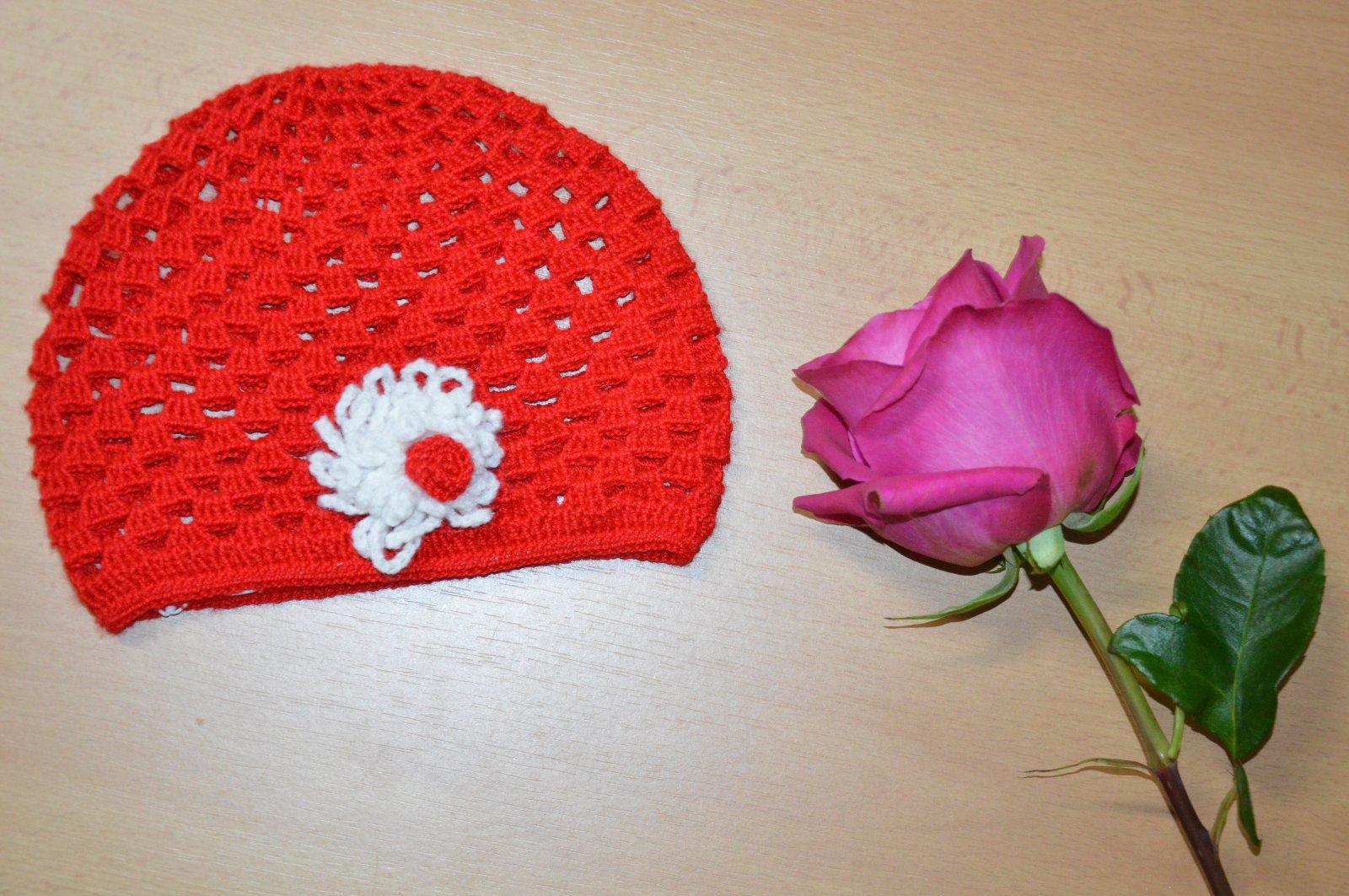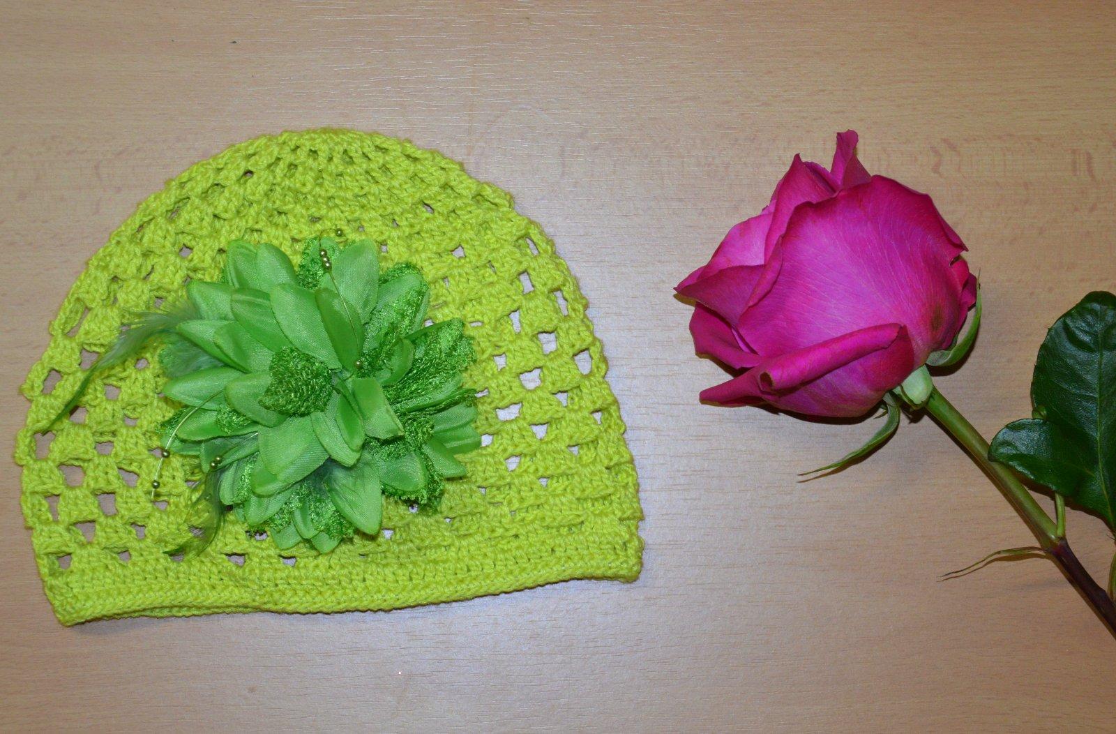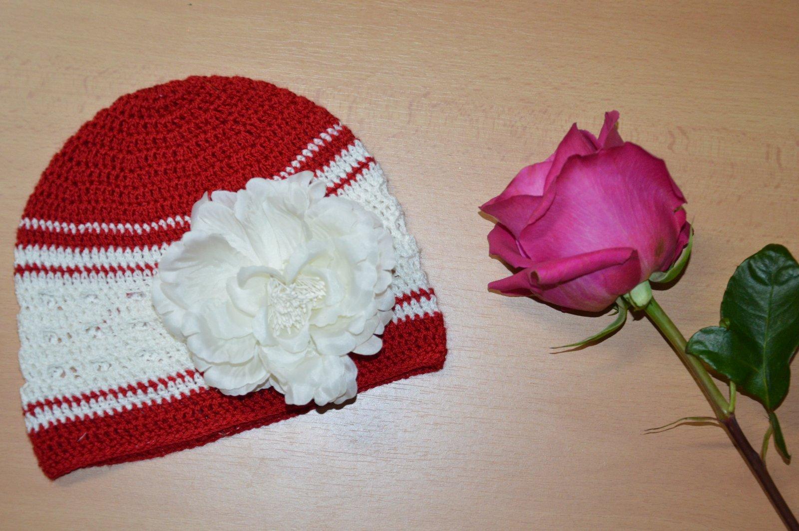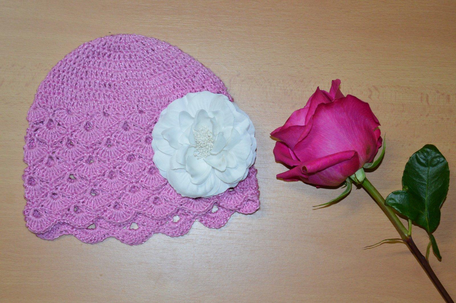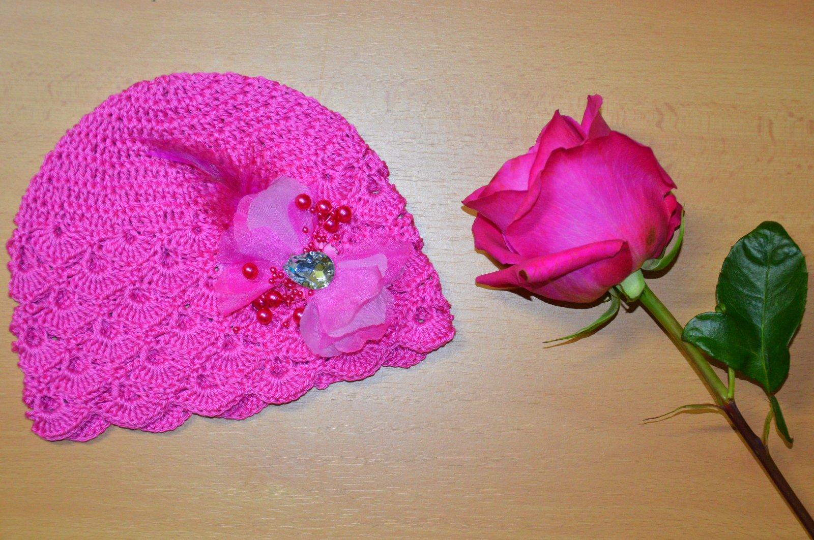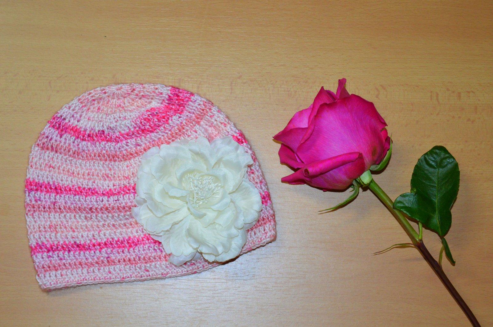 SkladomRučne háčkovaná čiapočka s veľmi pekným vzorom a kvetom.