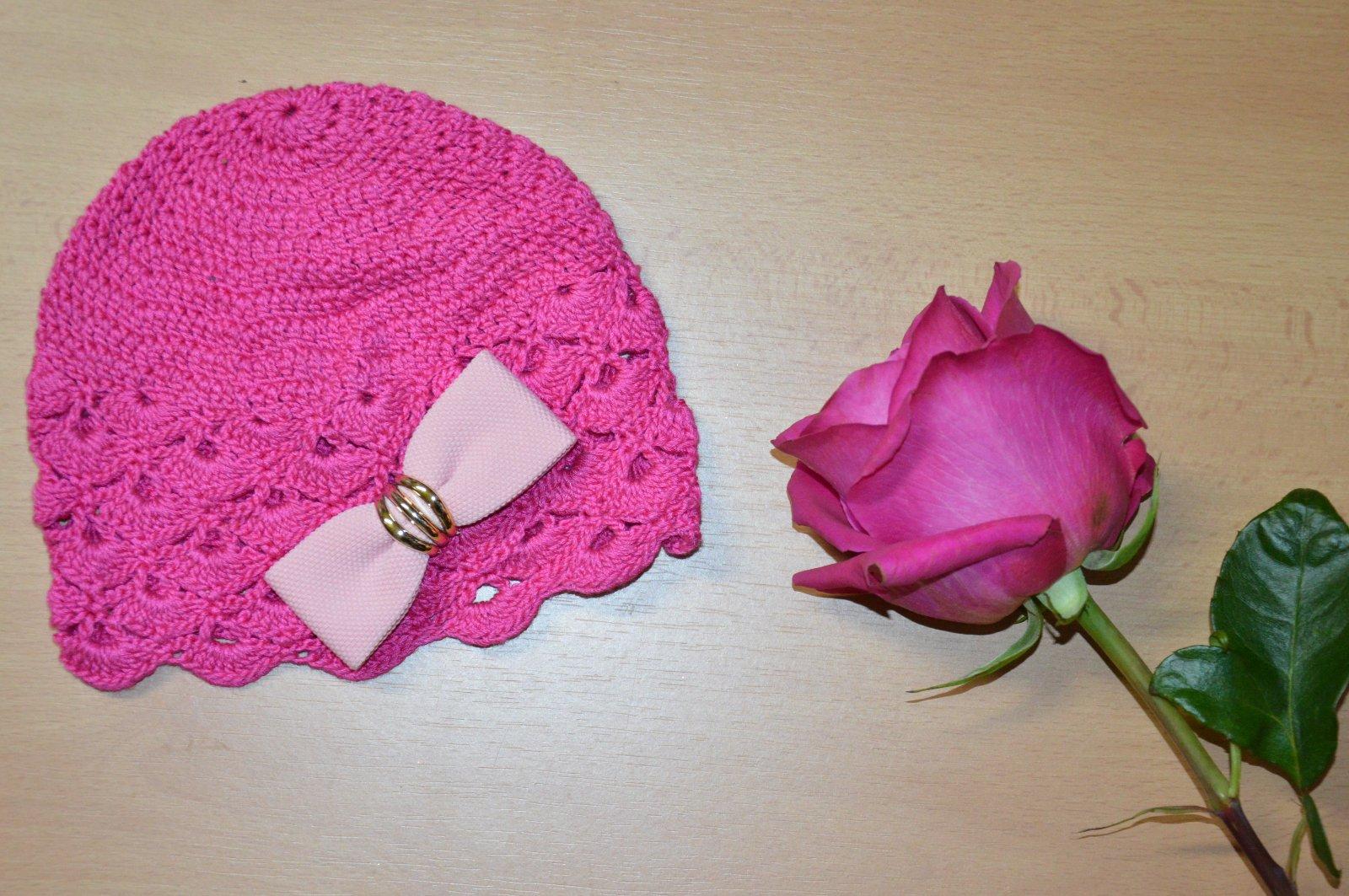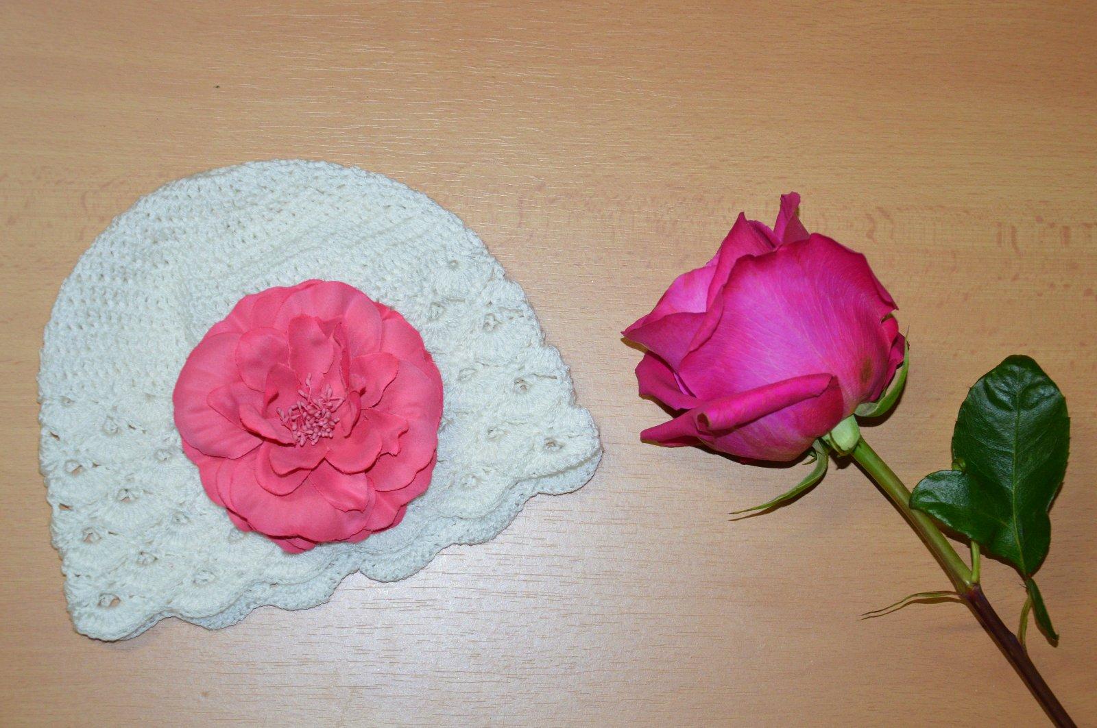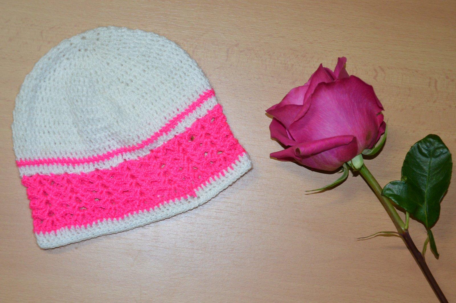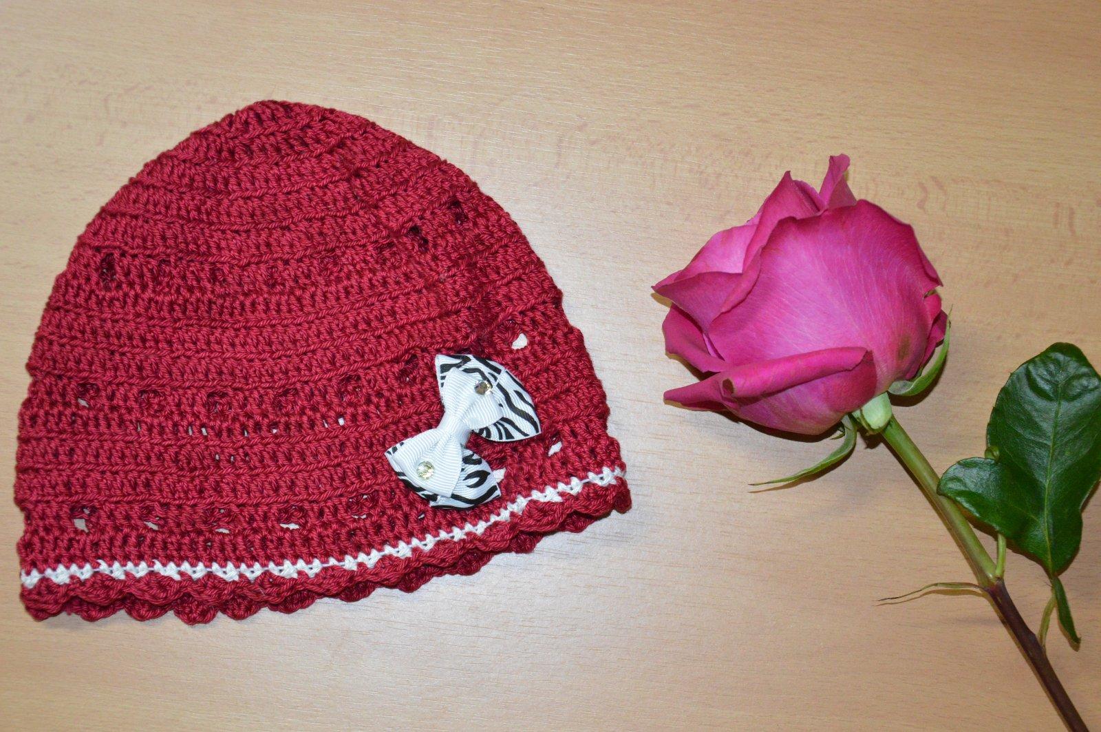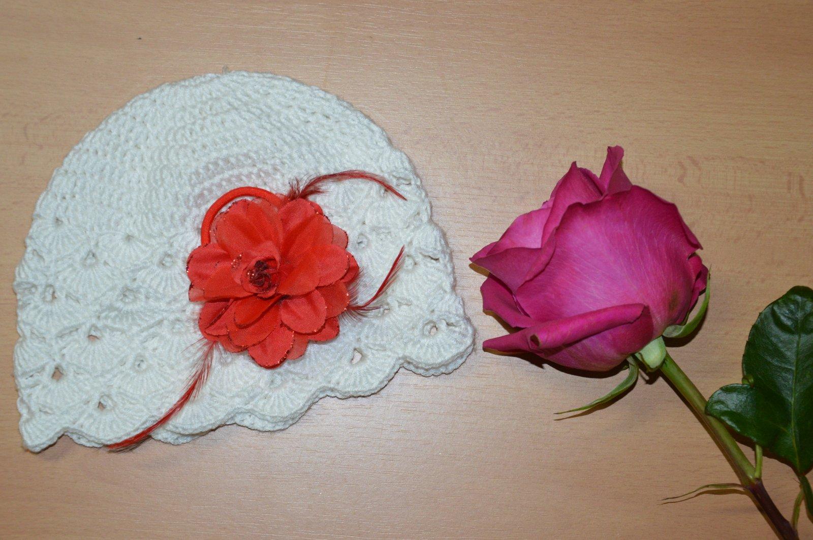 SkladomRučne háčkovaná čiapočka s veľmi pekným vzorom a kvetom.
