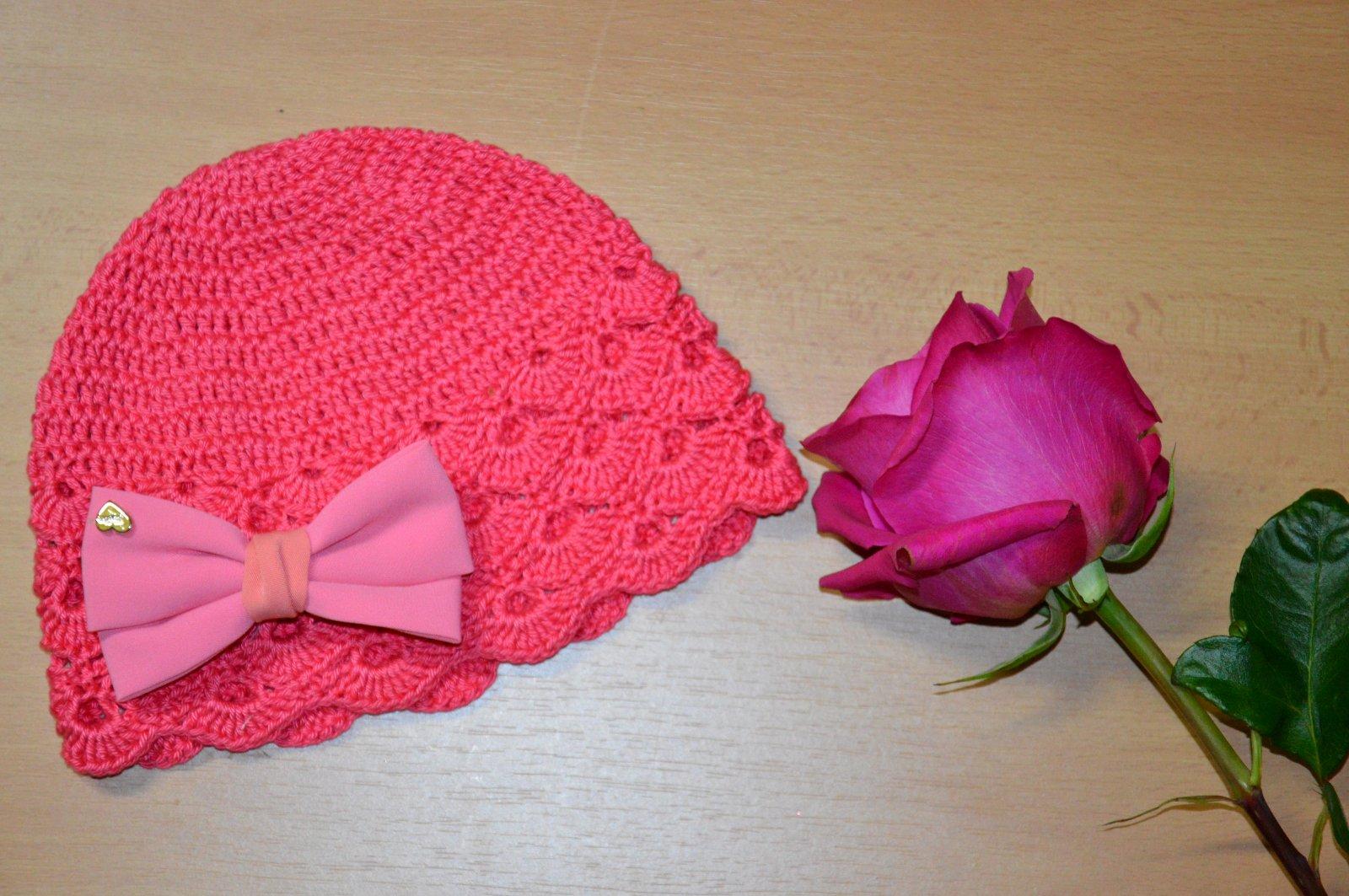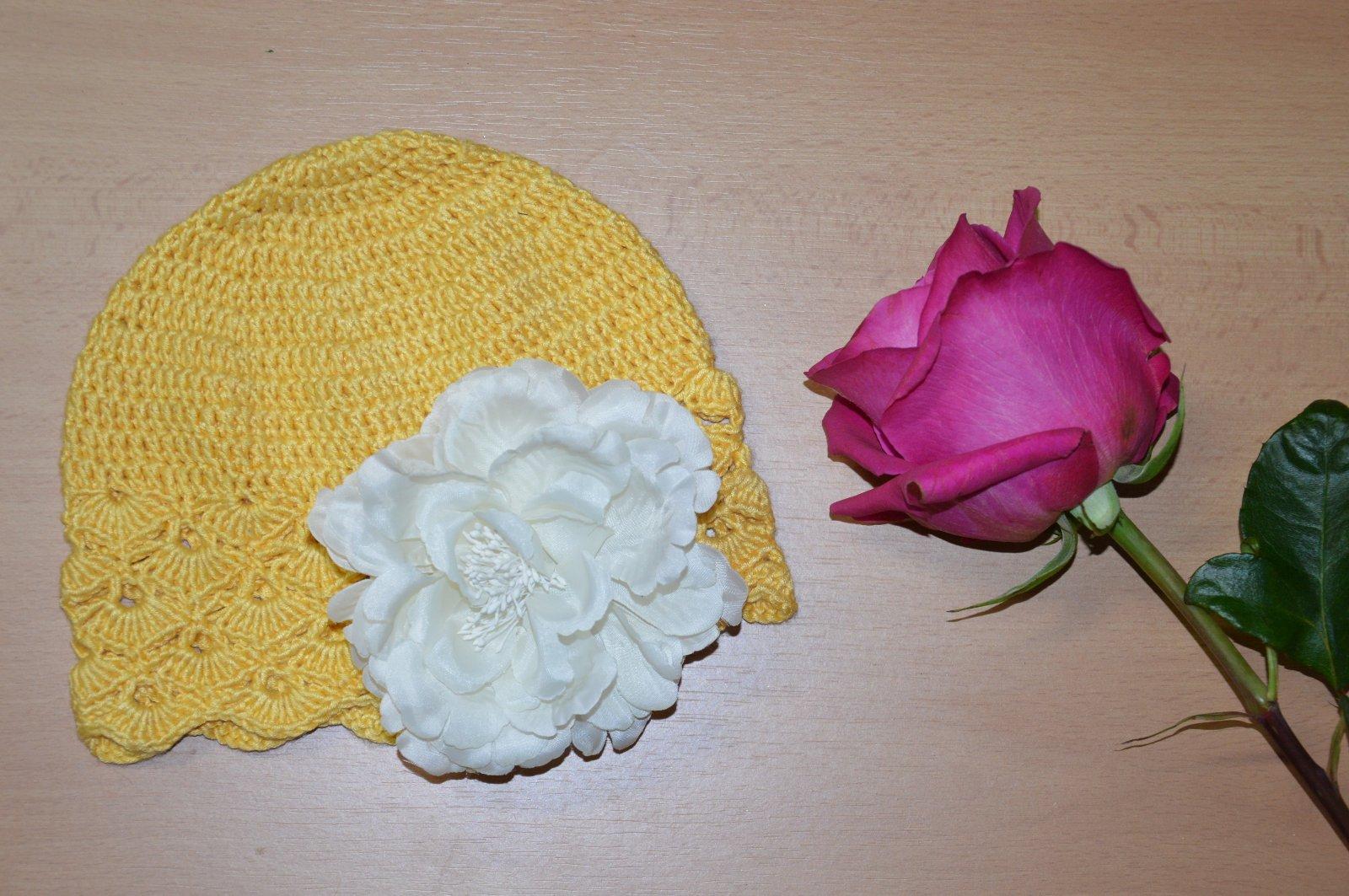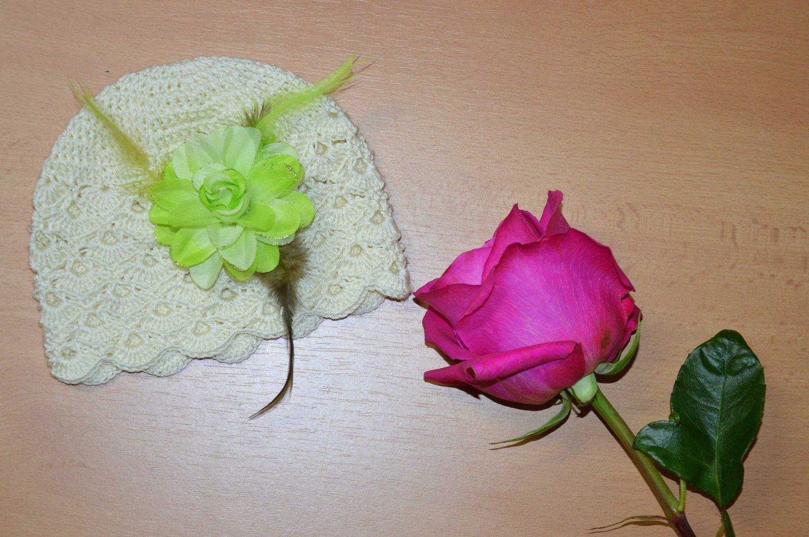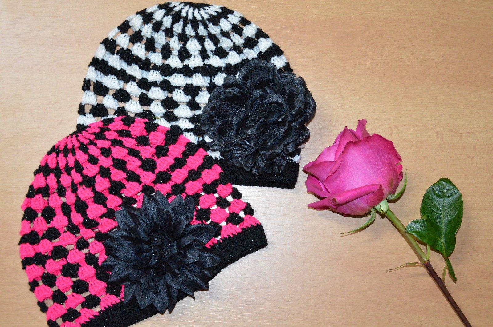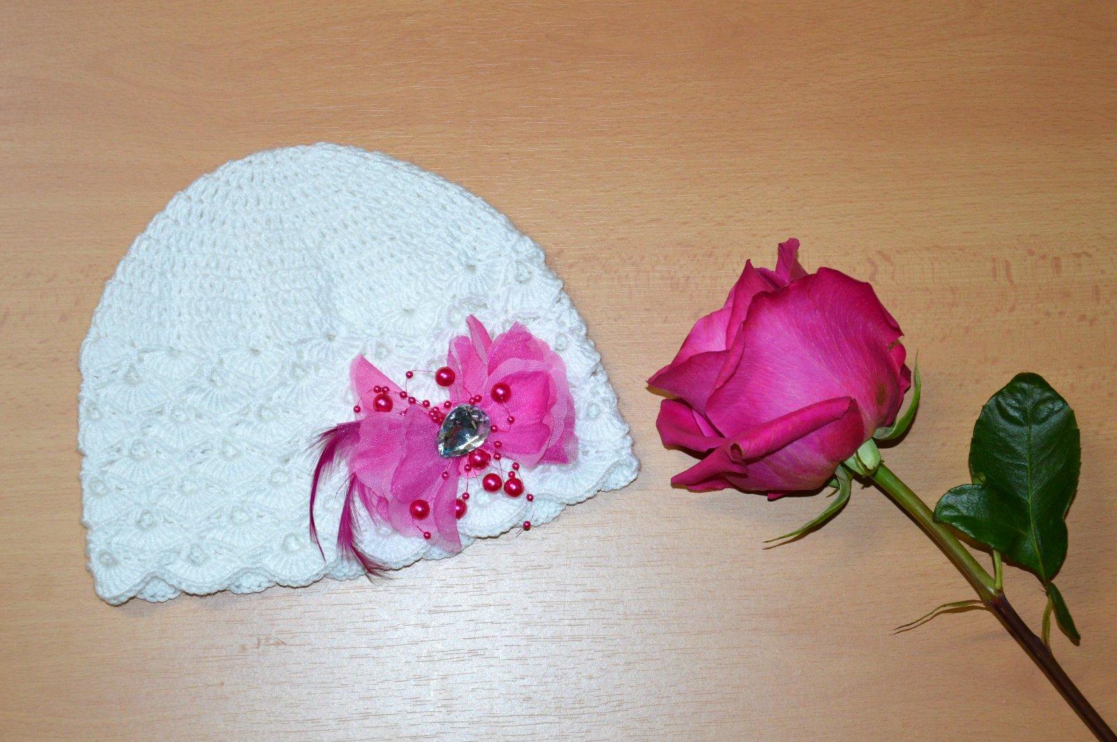 SkladomRučne háčkovaná čiapočka s veľmi pekným vzorom a kvetom.