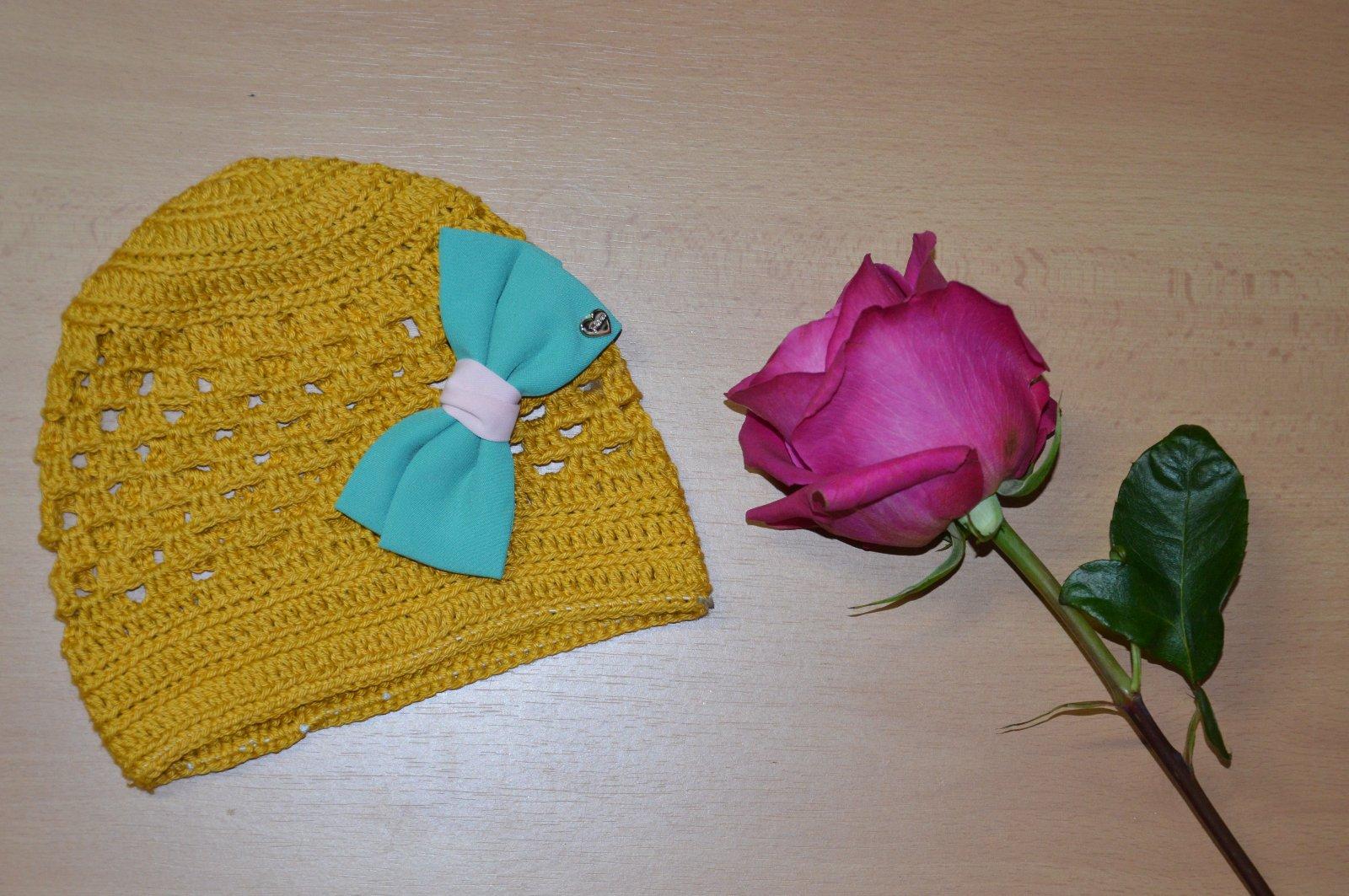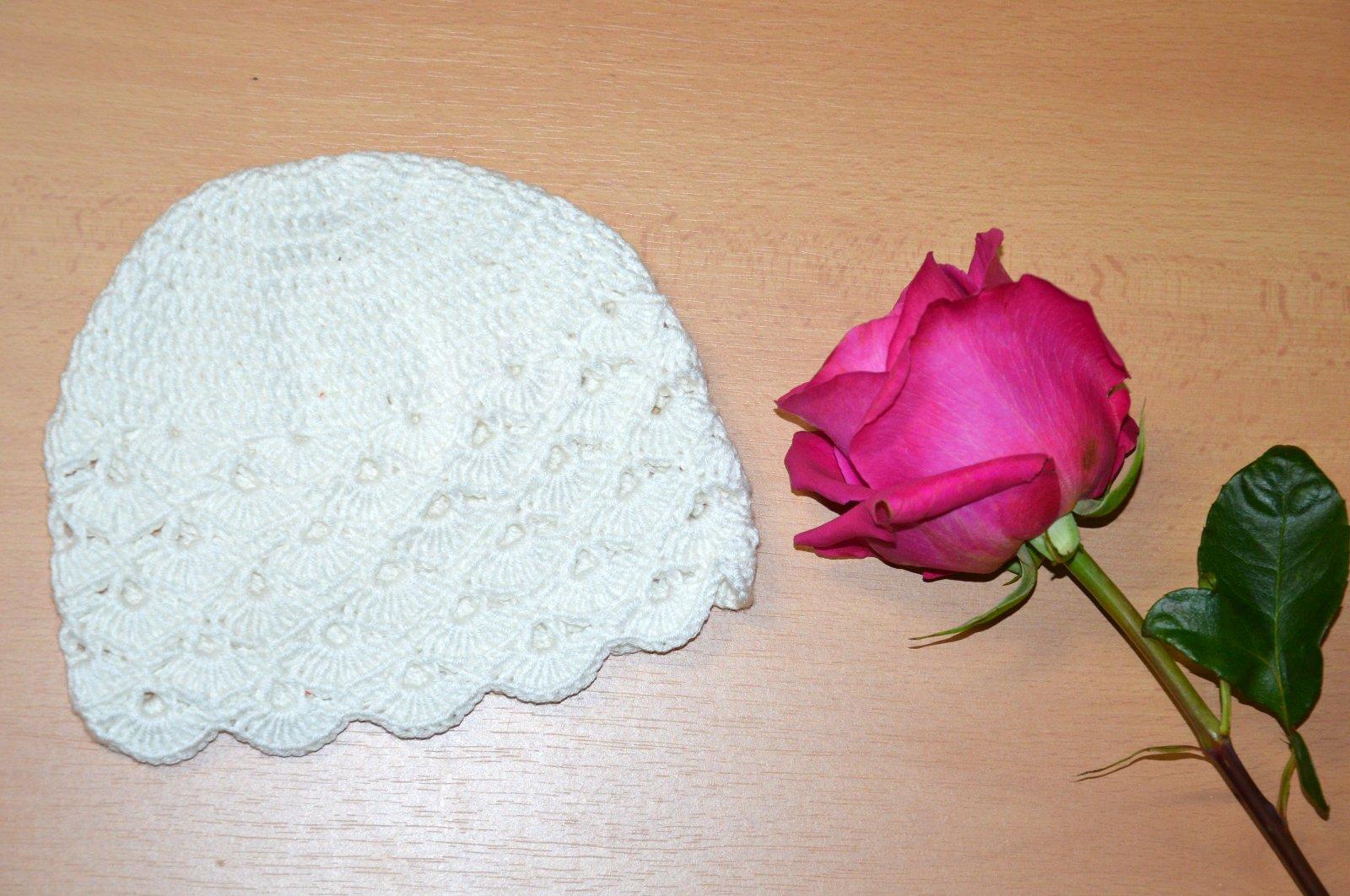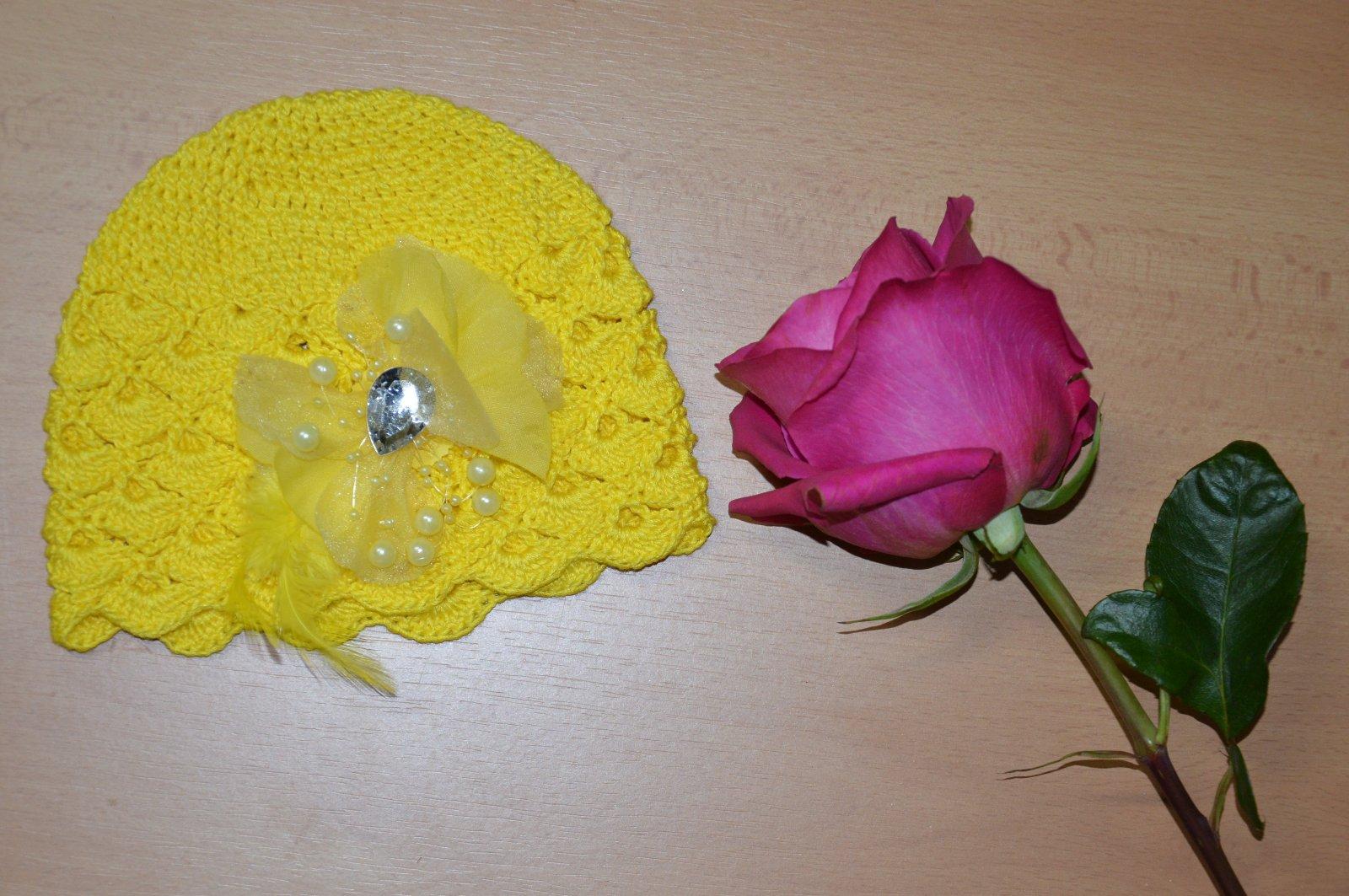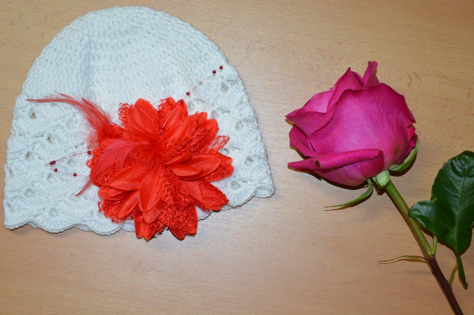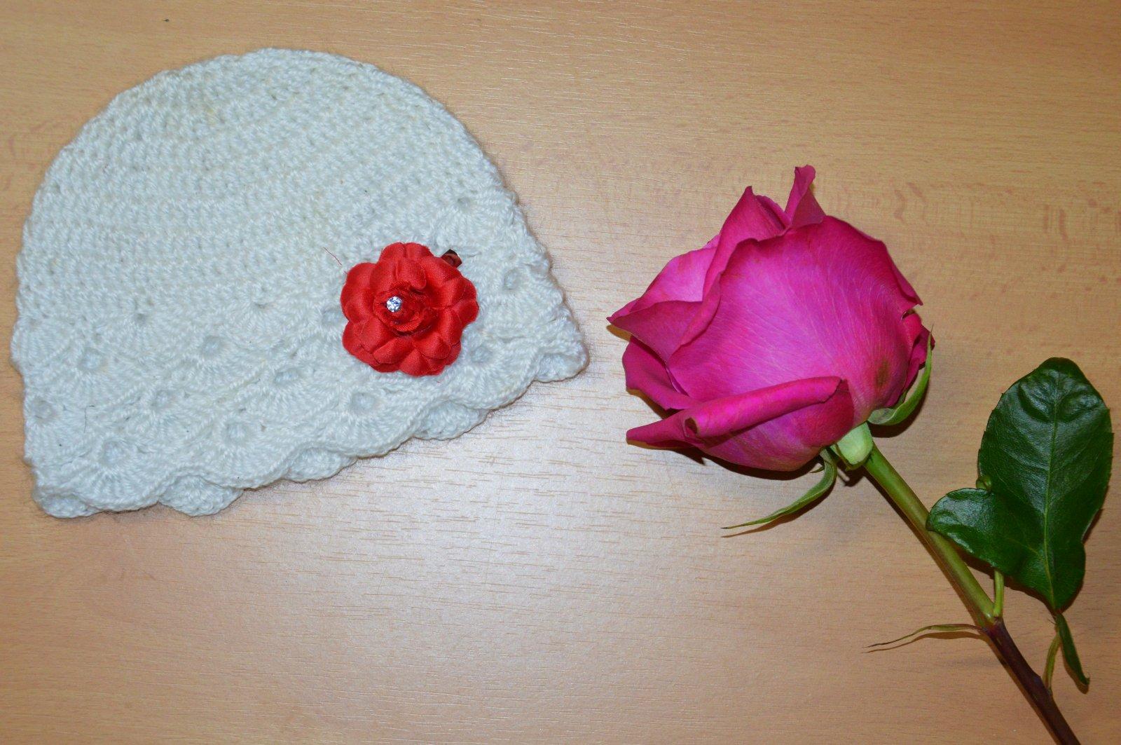 SkladomRučne háčkovaná čiapočka s veľmi pekným vzorom a kvetom.