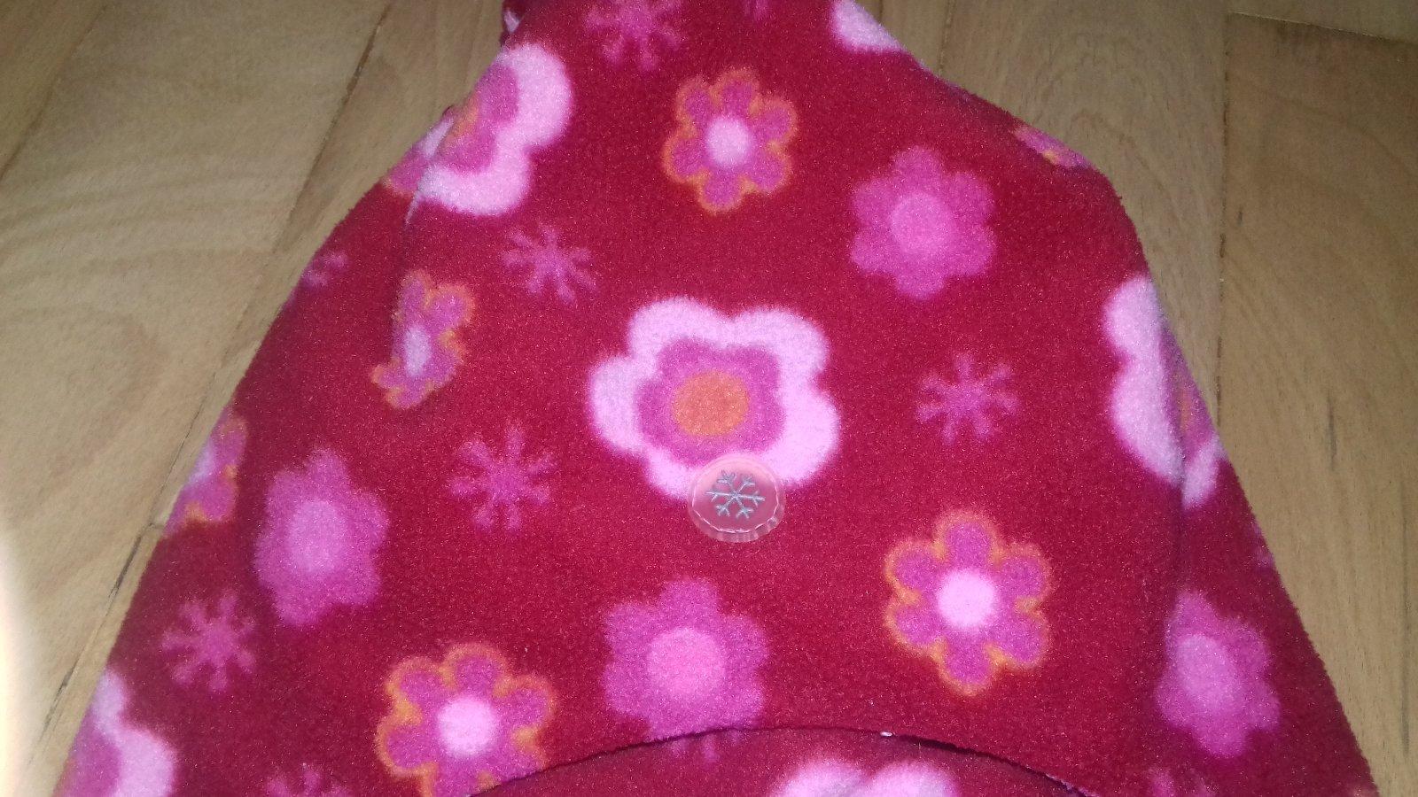 Predam peknu hrubu fleesovu ciapku vhodnu na studenu zimu. Je z 2 vrstiev hrubsieho fleesu. Velmi pohodlna, makka, zakryva pekne celo i uska. Bez poskodeni, iba malinko zmolkov. Vel. pisana 46-48, mala nosila do 2r.