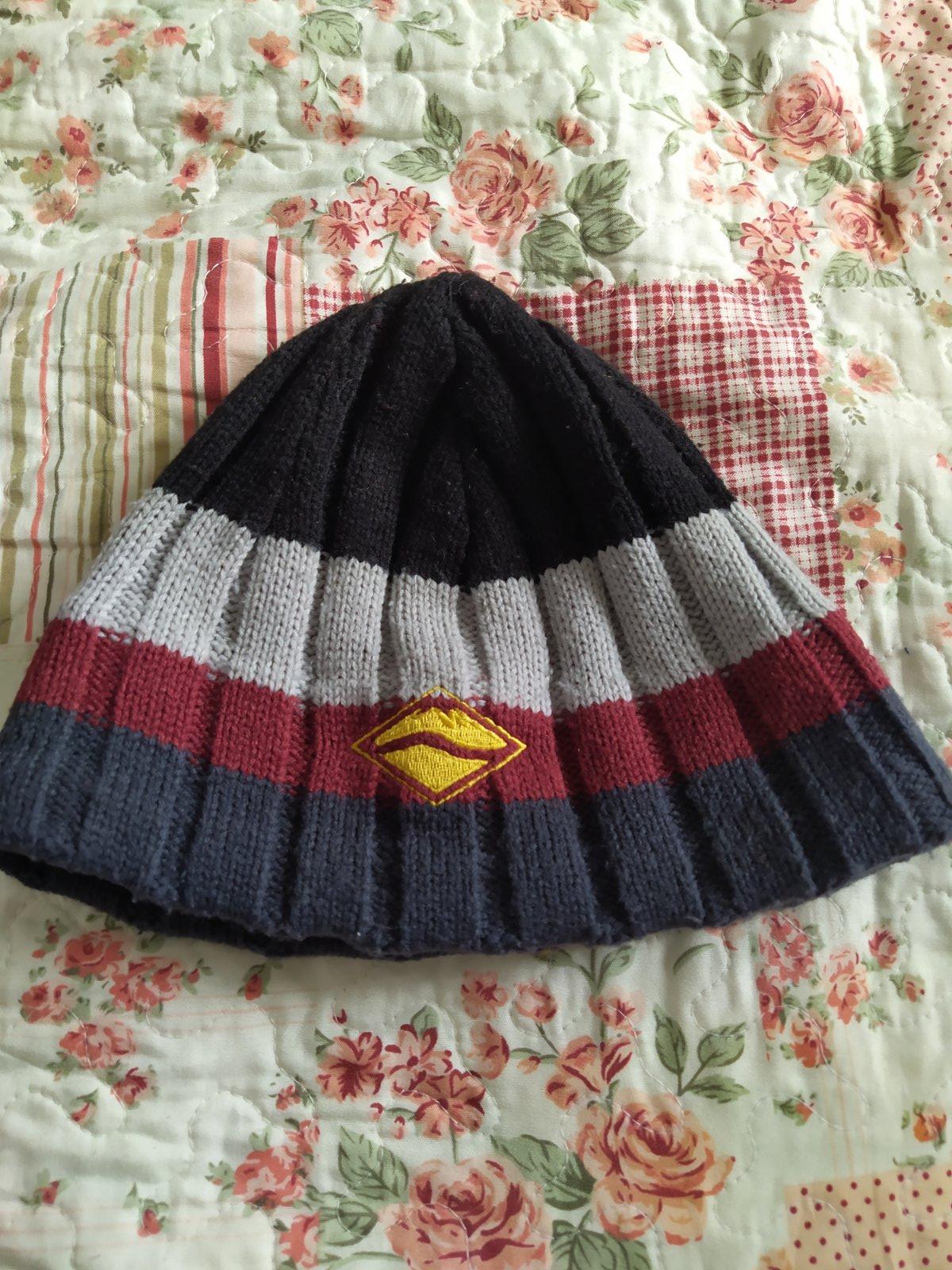 2x upletová čiapočka, iba vyskúsané, odmietol malý. Napriek tomu, asi od výroby jedna mikroškvrnka na pásikavej čiapke. Dĺžka 17 cm obvod 32 cm...natiahne sa, je to pružné Cena spolu.