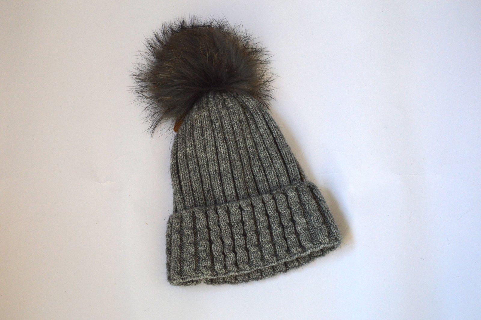 SkladomPletená čiapočka s veľmi pekným vzorom a bohatým brmbolcom.