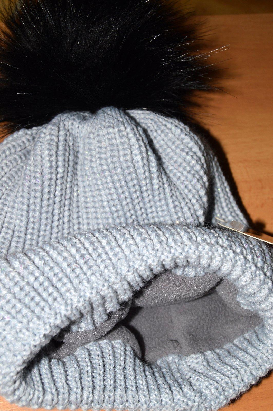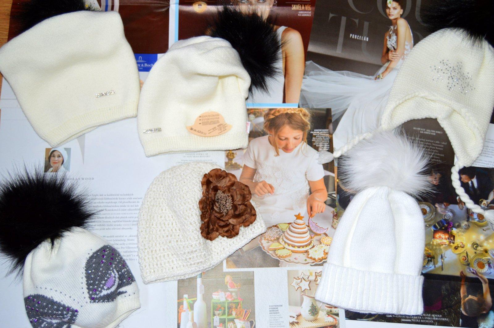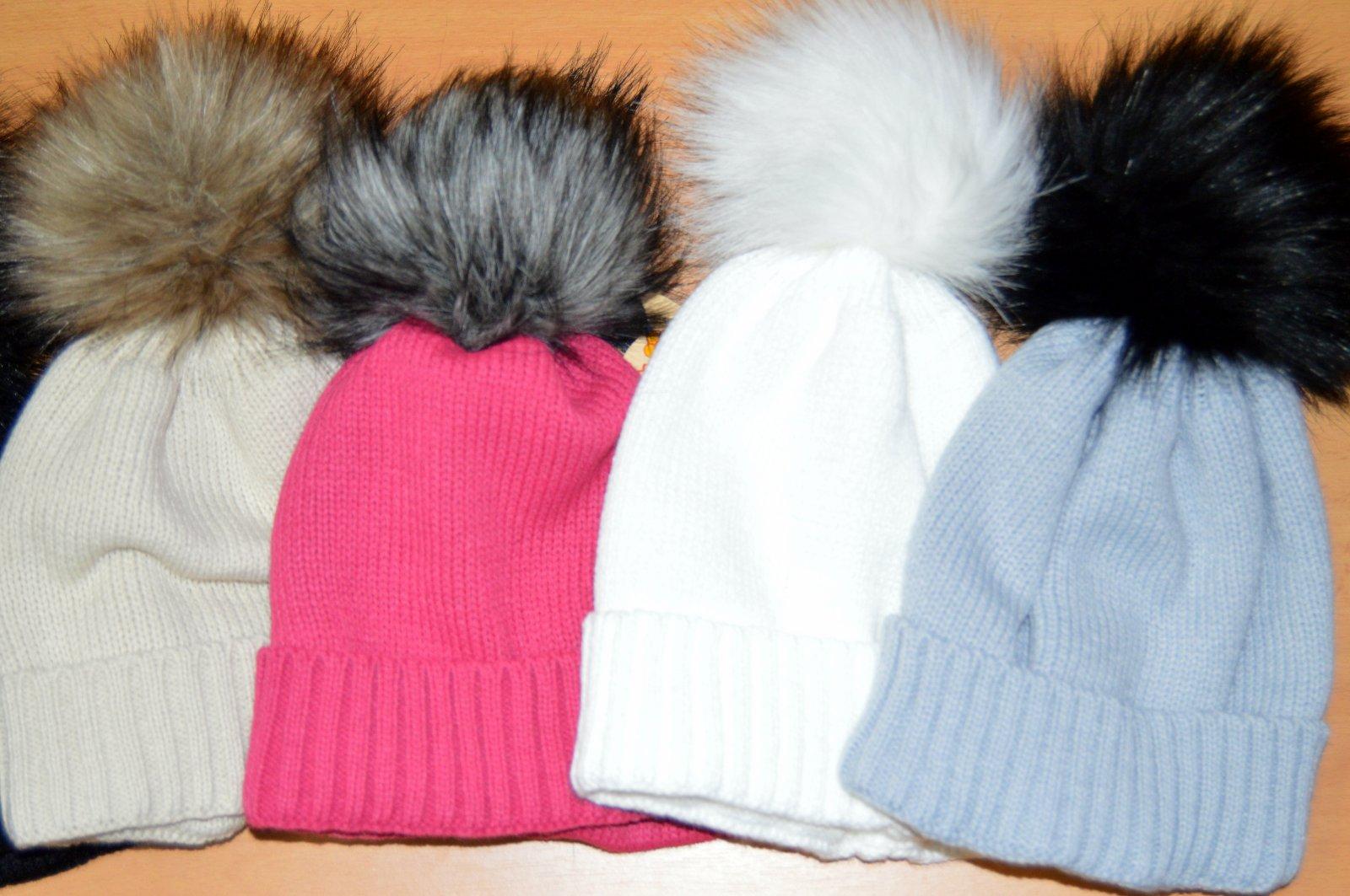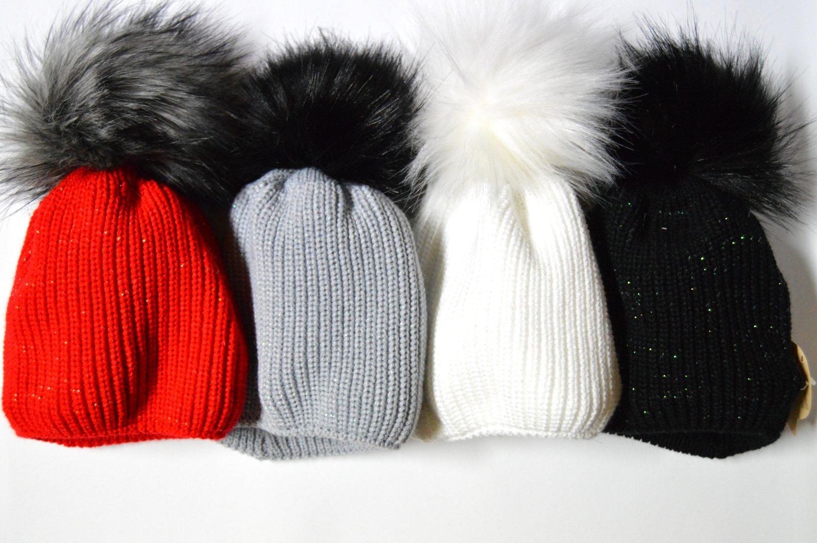 Pletená čiapočka s veľmi pekným vzorom a bohatým brmbolcom.