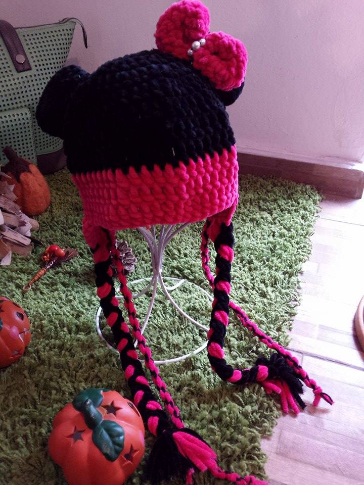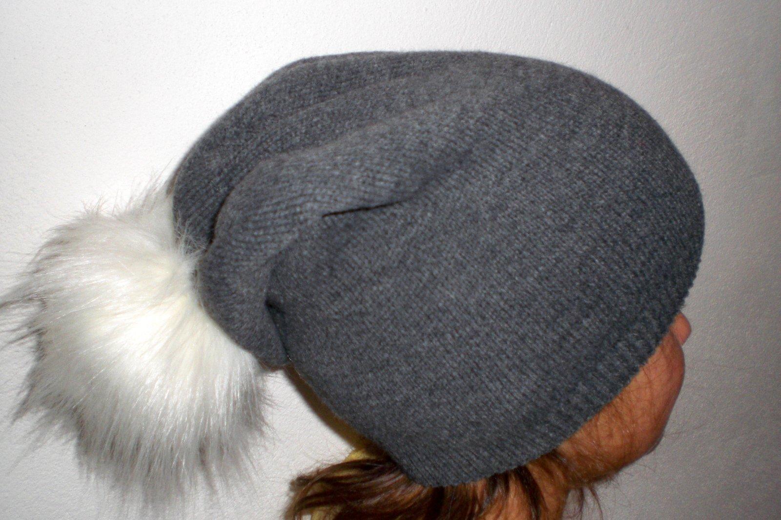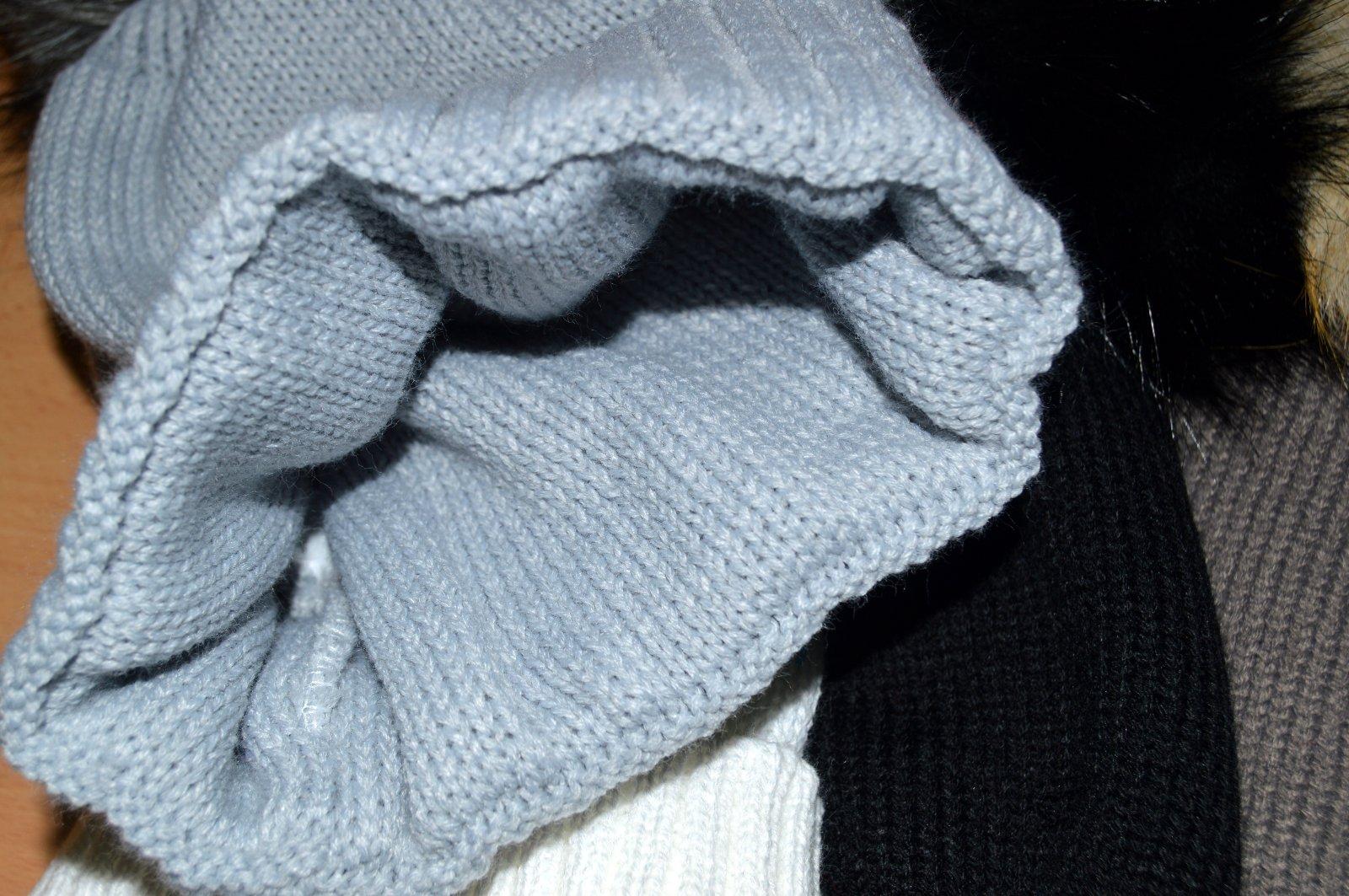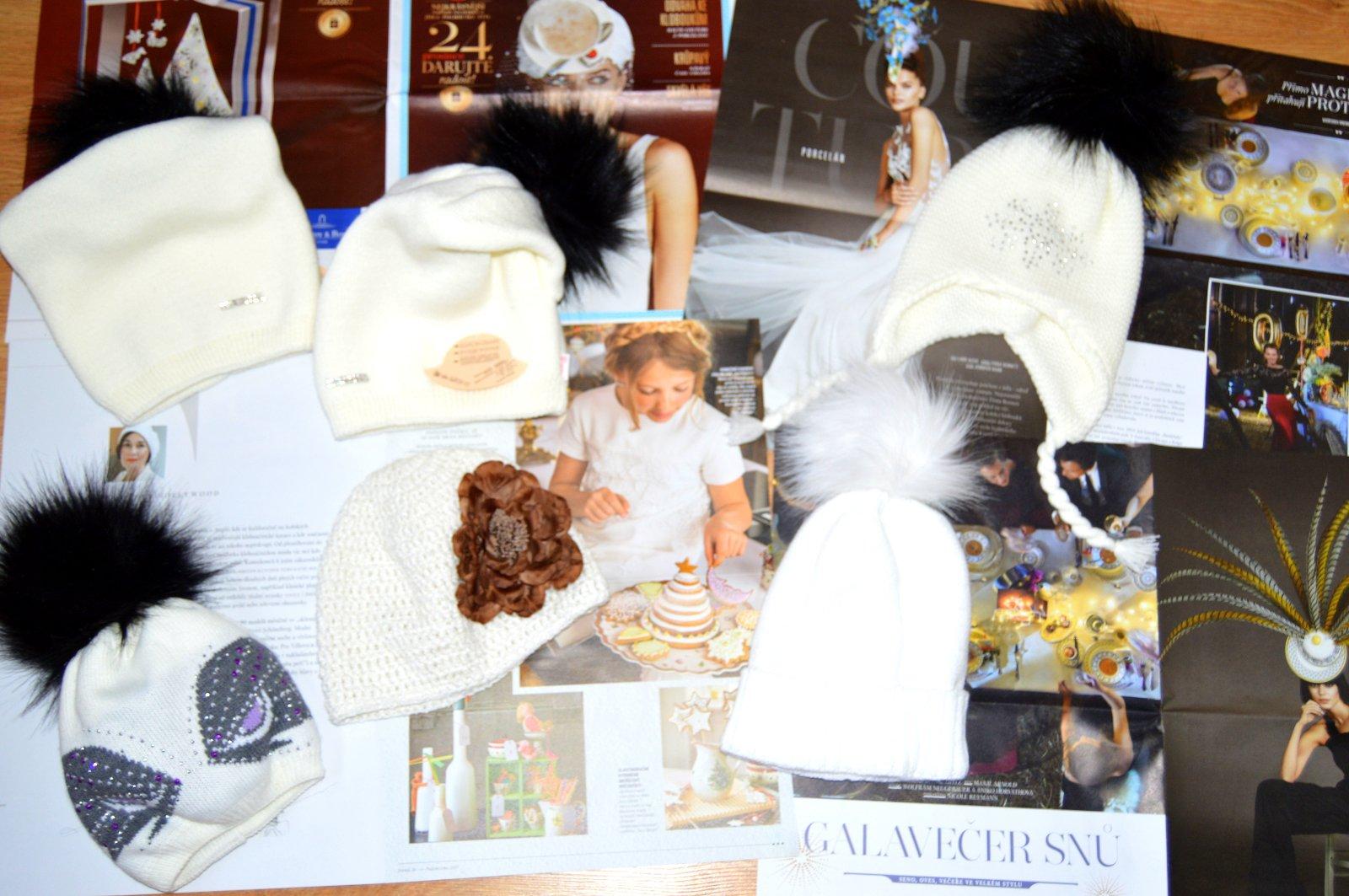 Pletená čiapočka s veľmi pekným vzorom a bohatým brmbolcom.