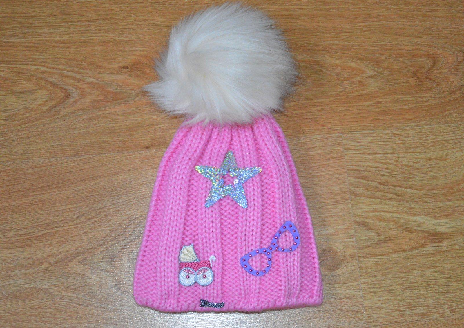 SkladomPletená čiapočka s veľmi pekným vzorom a bohatým brmbolcom.