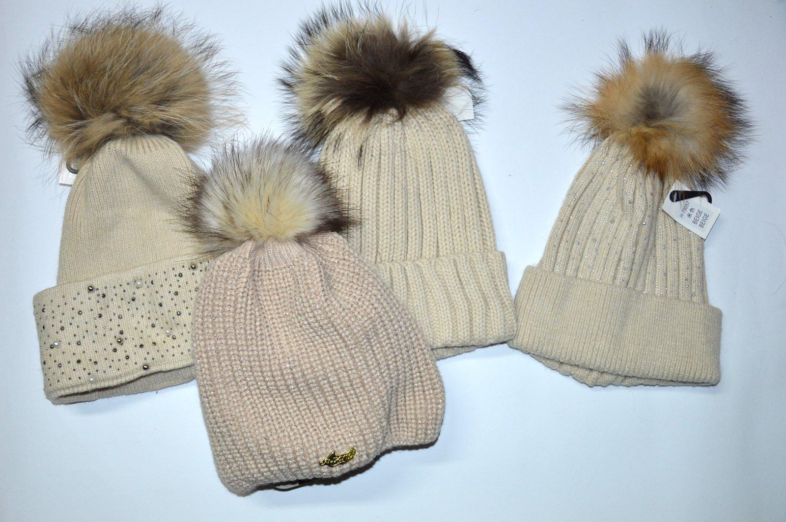Pletená čiapočka s veľmi pekným vzorom a bohatým brmbolcom.