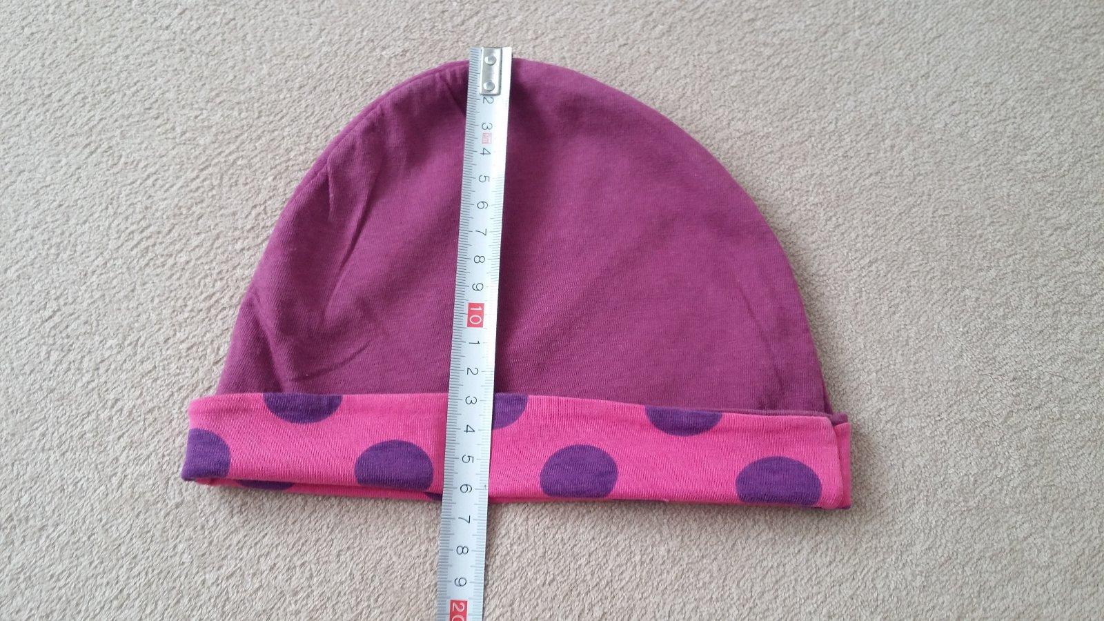 fialová čiapka s guličkami. už len na donosenie. veľkosť odhadom