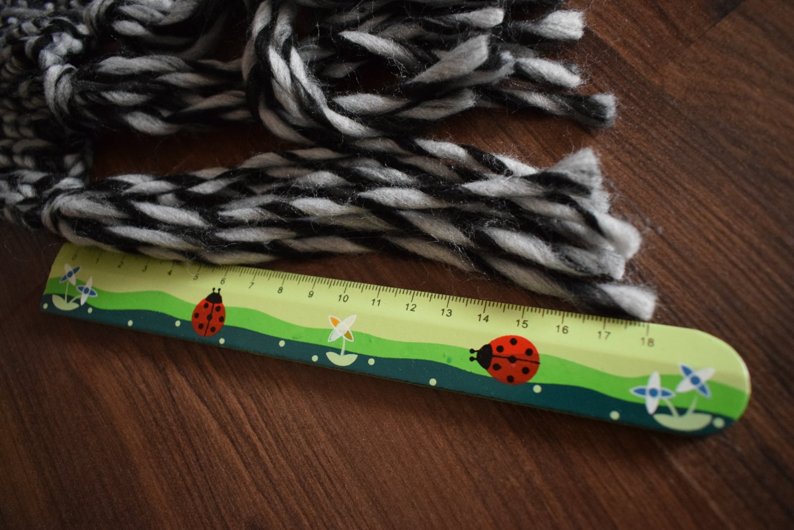 Dlhý šál s dlhými strapcami. Veľmi príjemný.