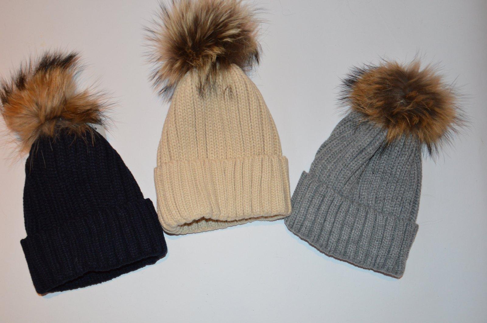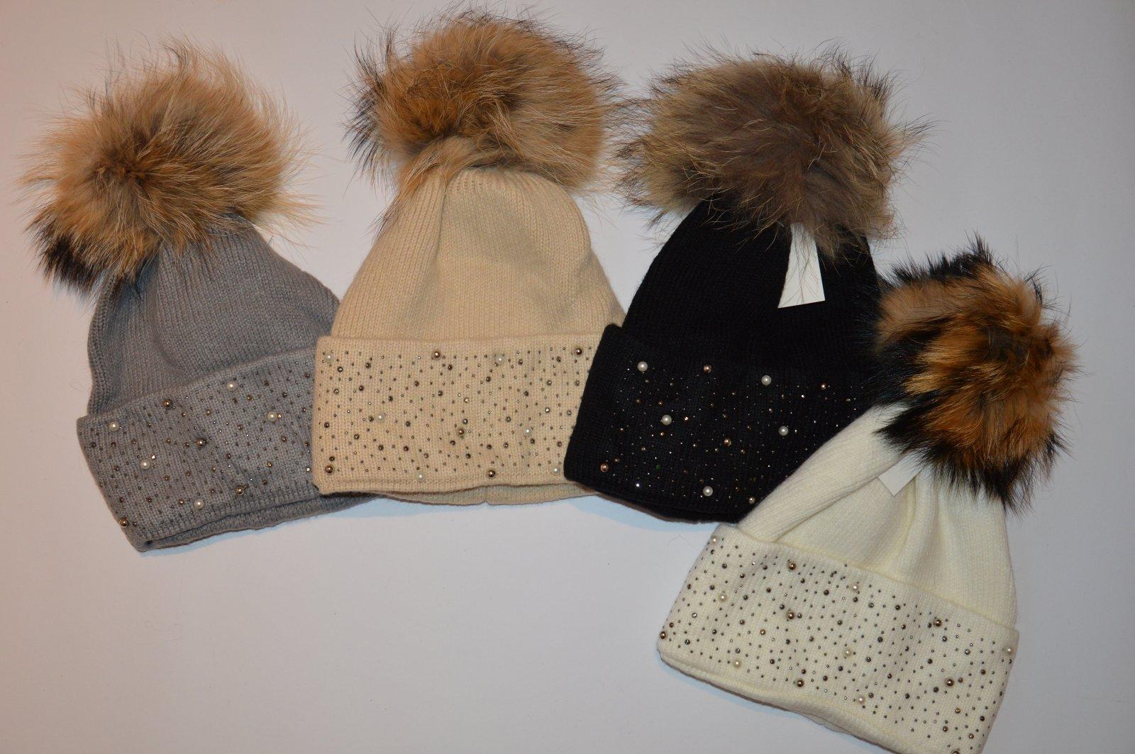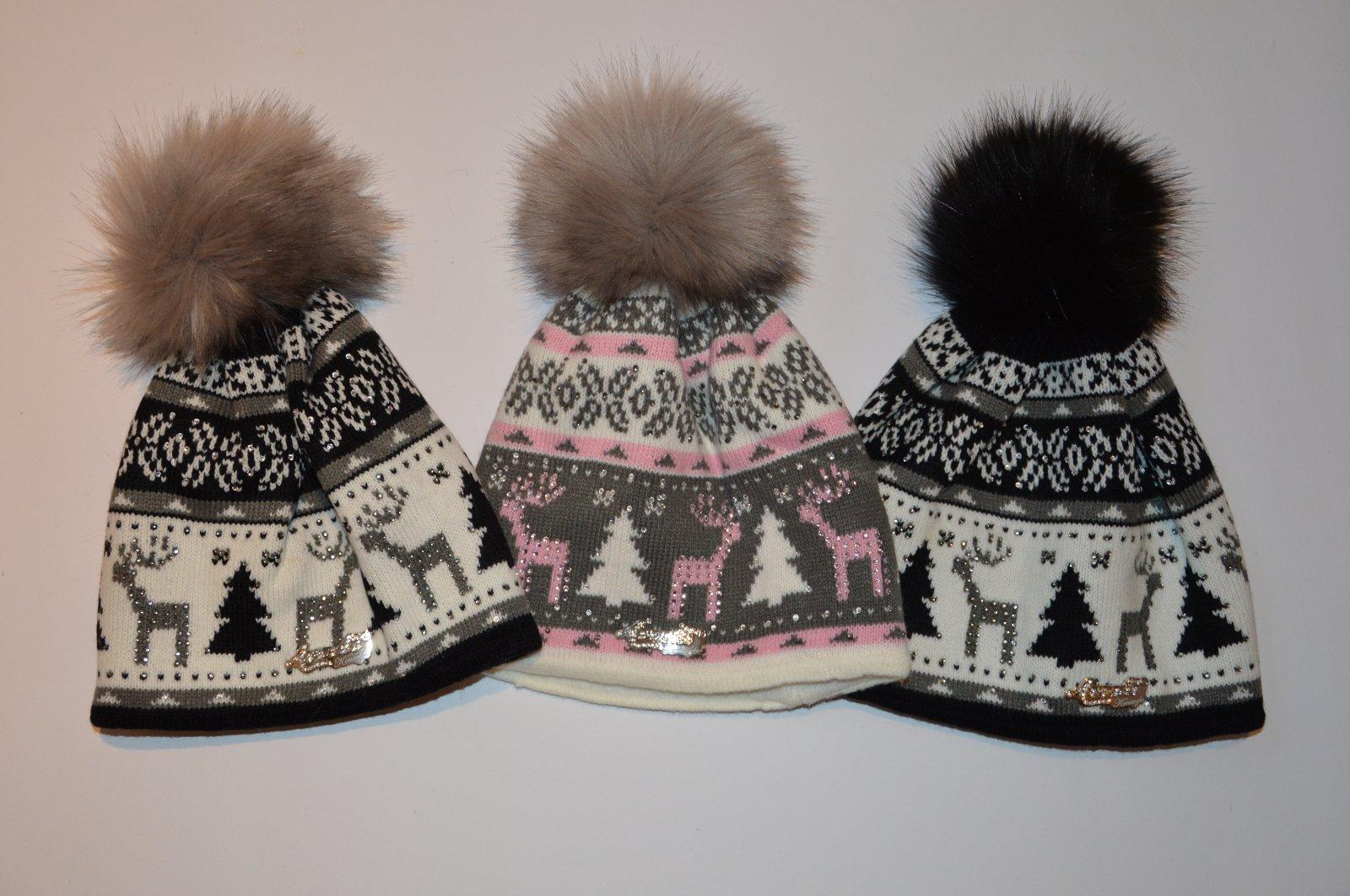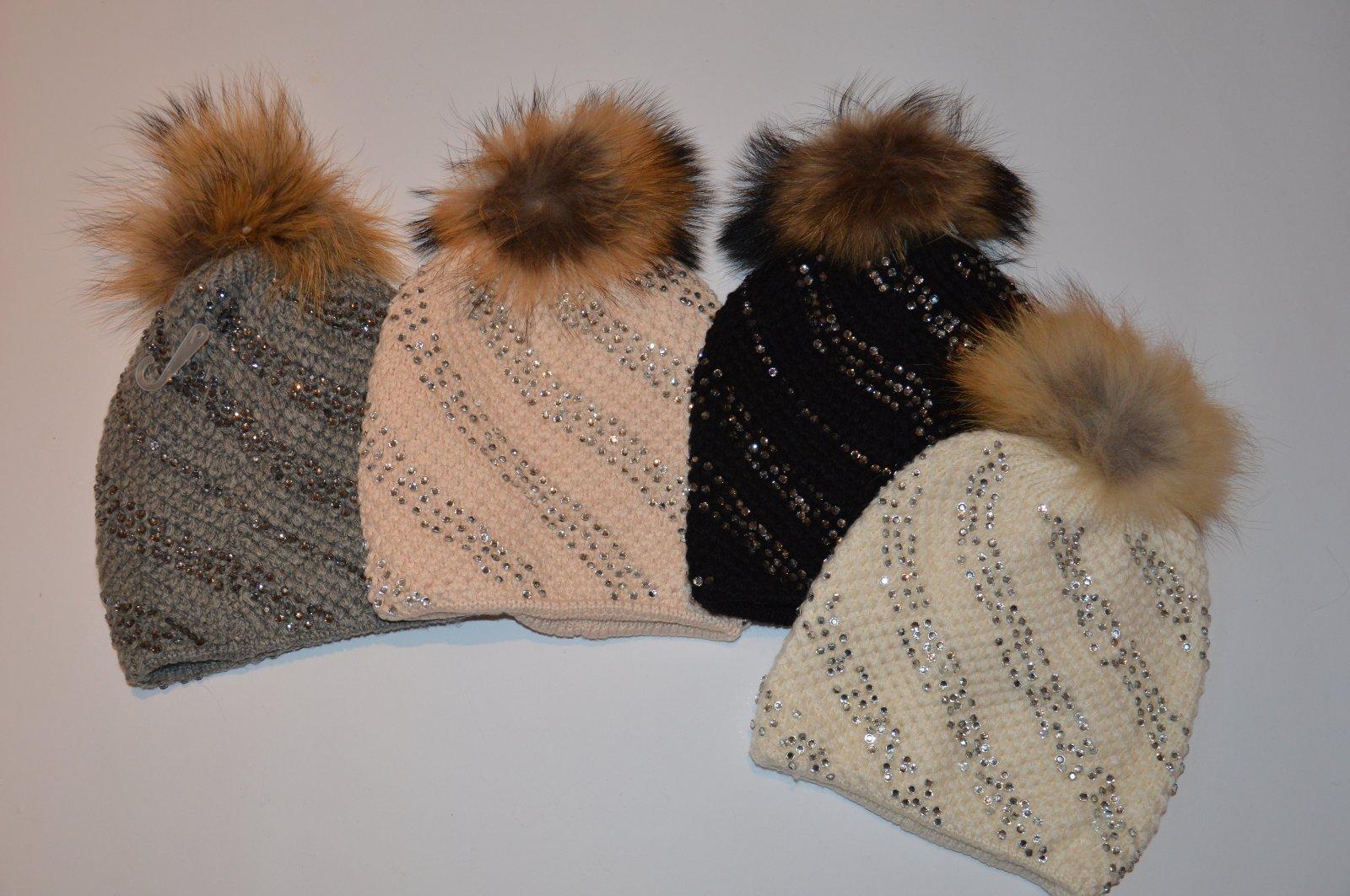 Pletená čiapočka s veľmi pekným vzorom a bohatým brmbolcom.