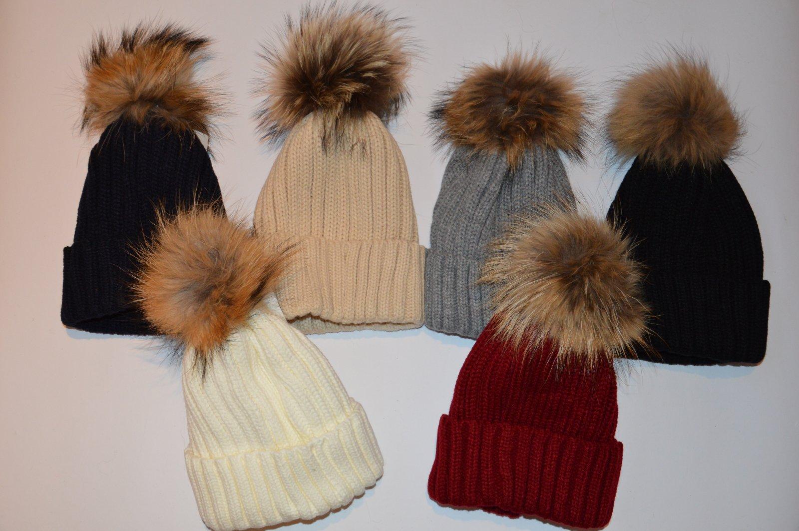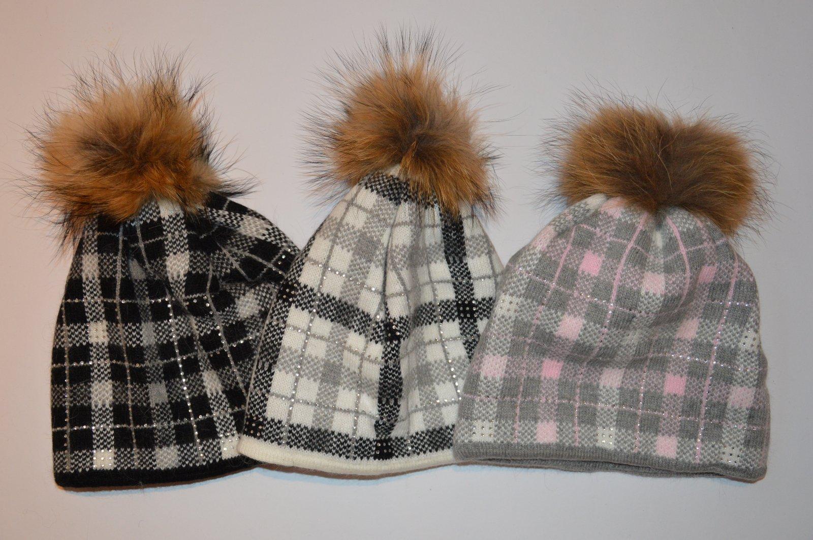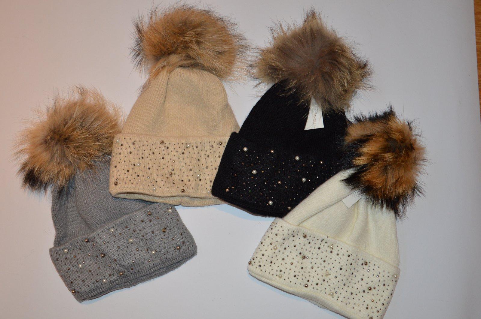 Pletená čiapočka s veľmi pekným vzorom a bohatým brmbolcom.