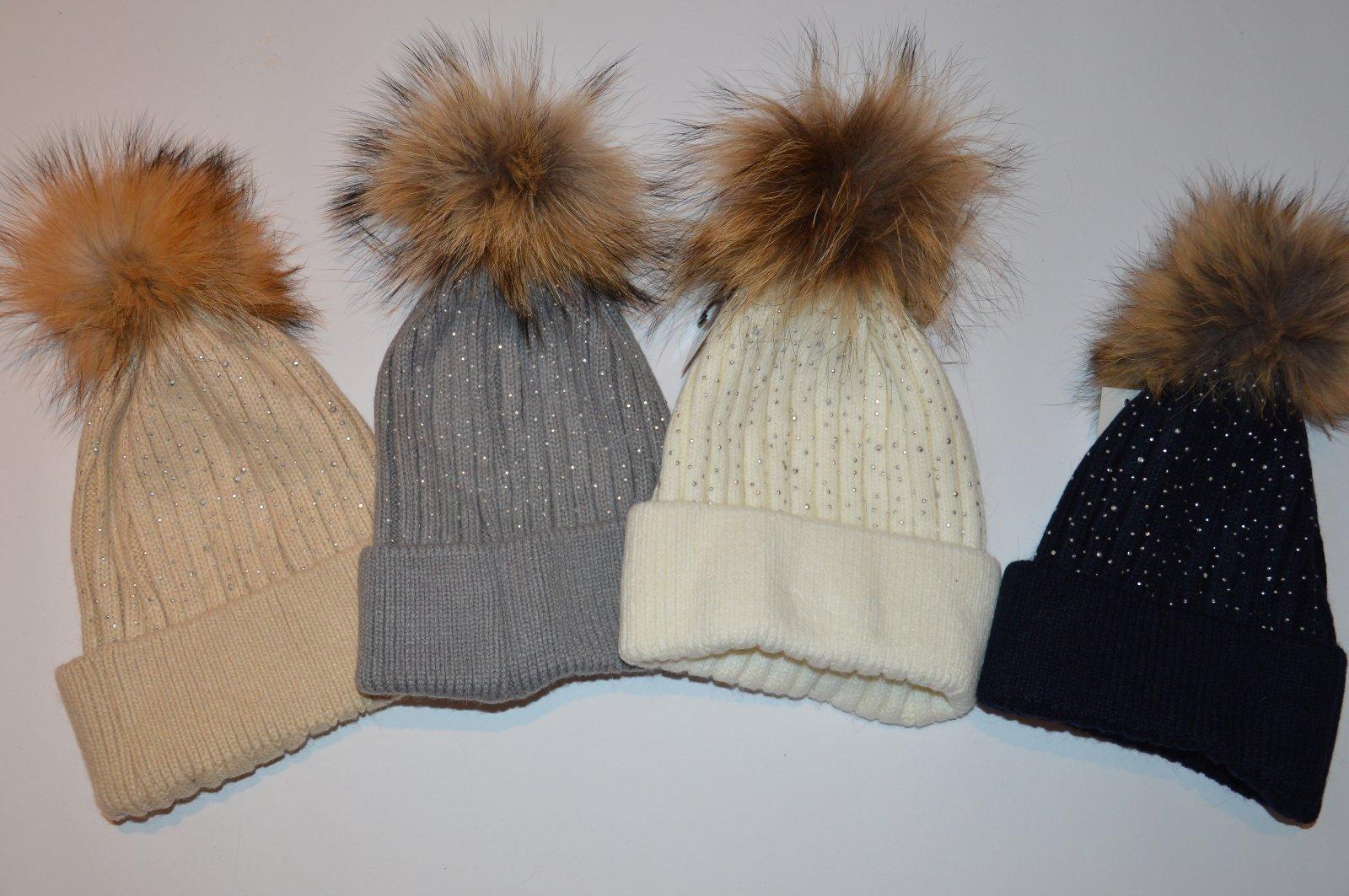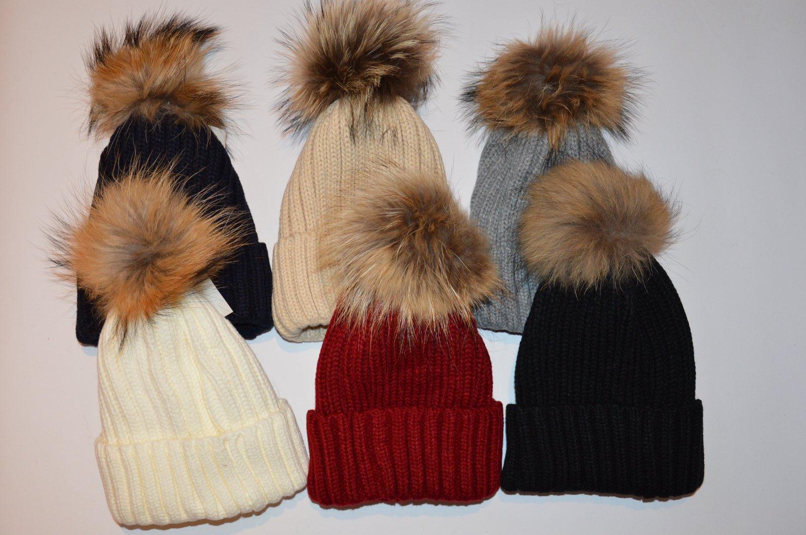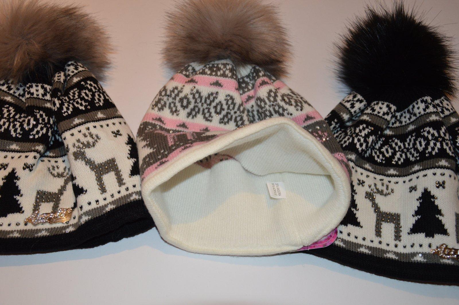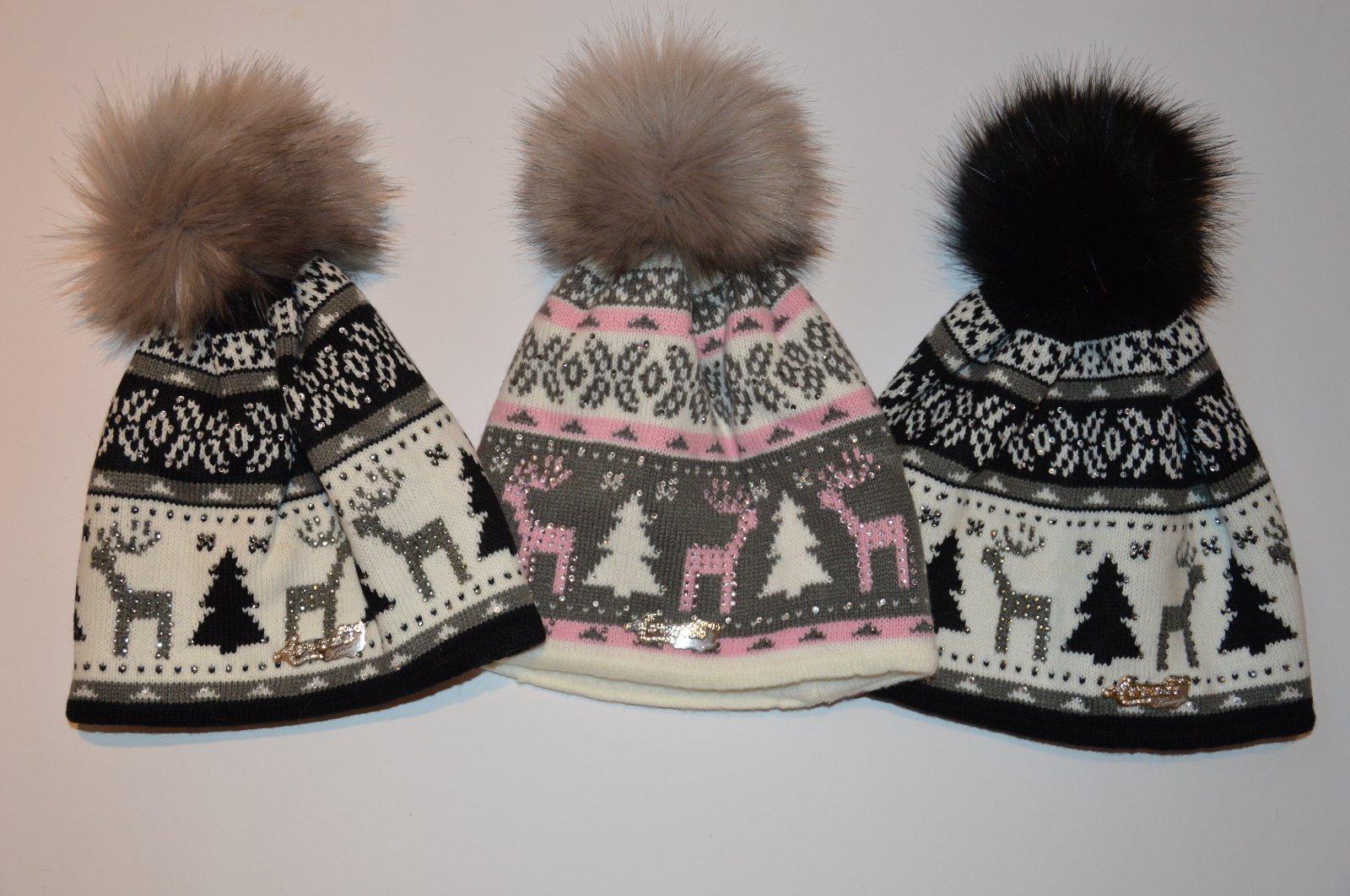 Pletená čiapočka s veľmi pekným vzorom a bohatým brmbolcom.