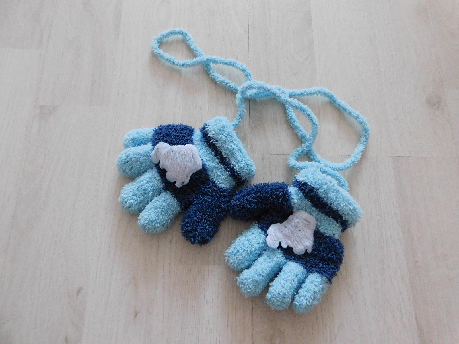 Parkrat oblecene rukavice. Velkost iba odhadujem. Maly ich mal cca v 9-12 mesiacoch, max 7x. Su podsite teplym flisom bledomodrej farby. Znacka je bud H&M alebo Next, nepamatam si a stitok som ods...