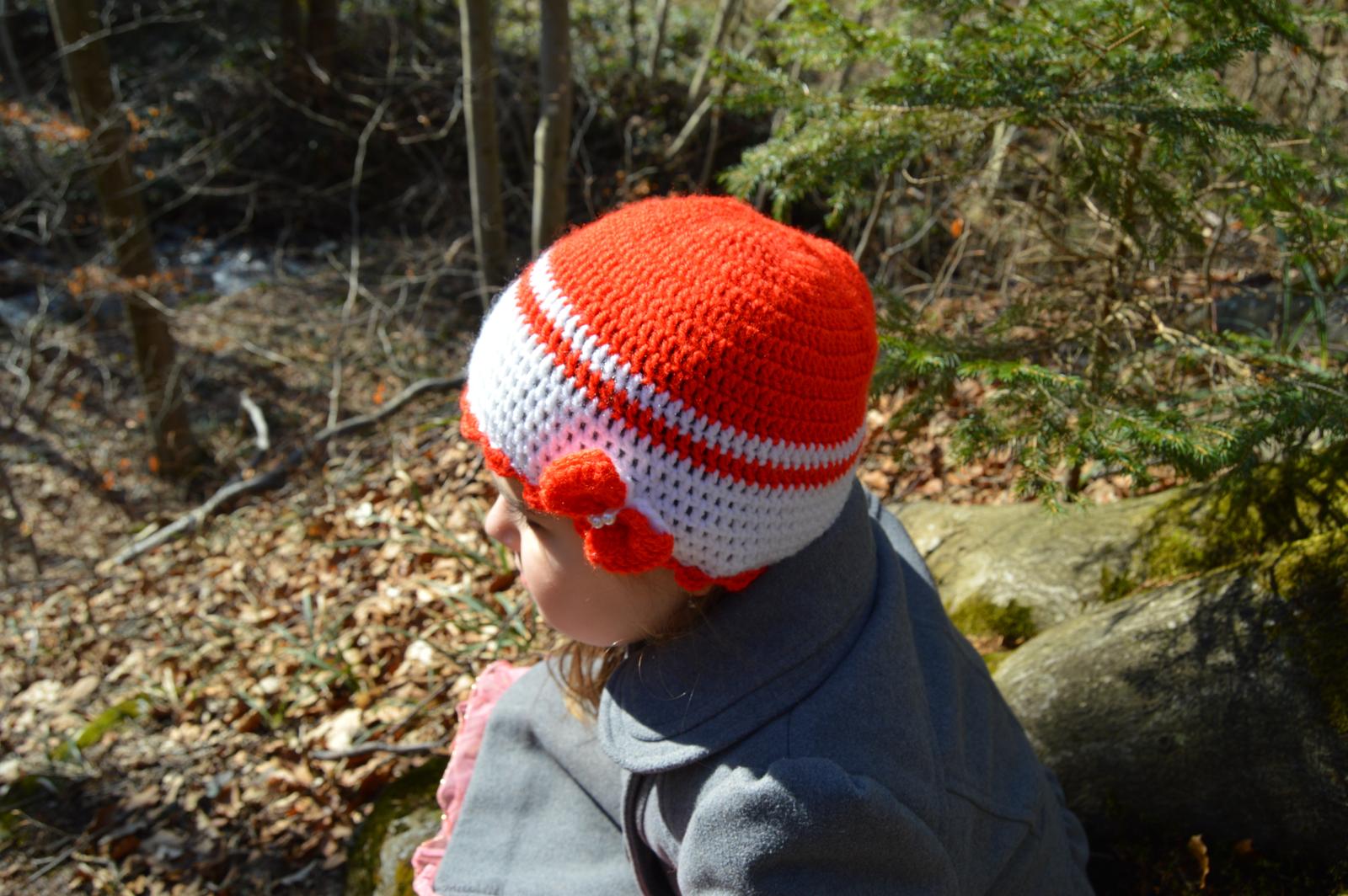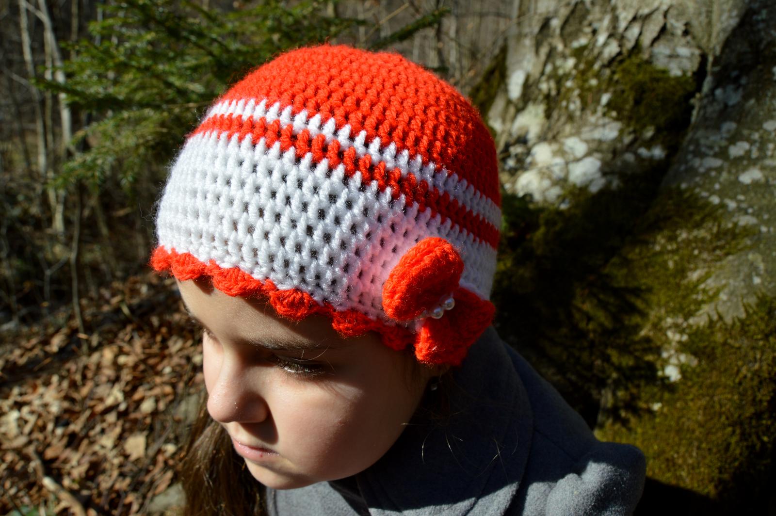 Háčkovaná čiapočka s mašličkou Červená karkulka.
