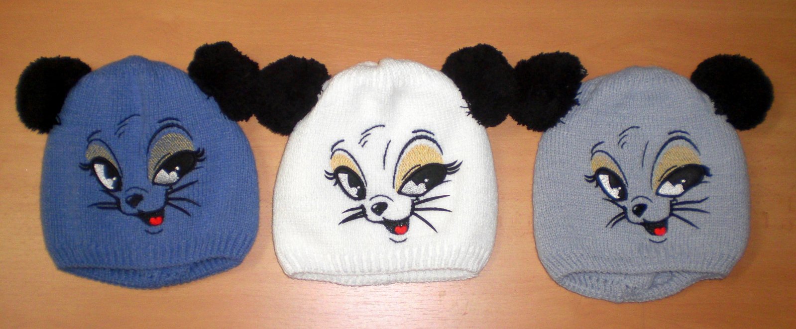 Pletená čiapočka s veľmi pekným vzorom a bohatými bambuľkami.