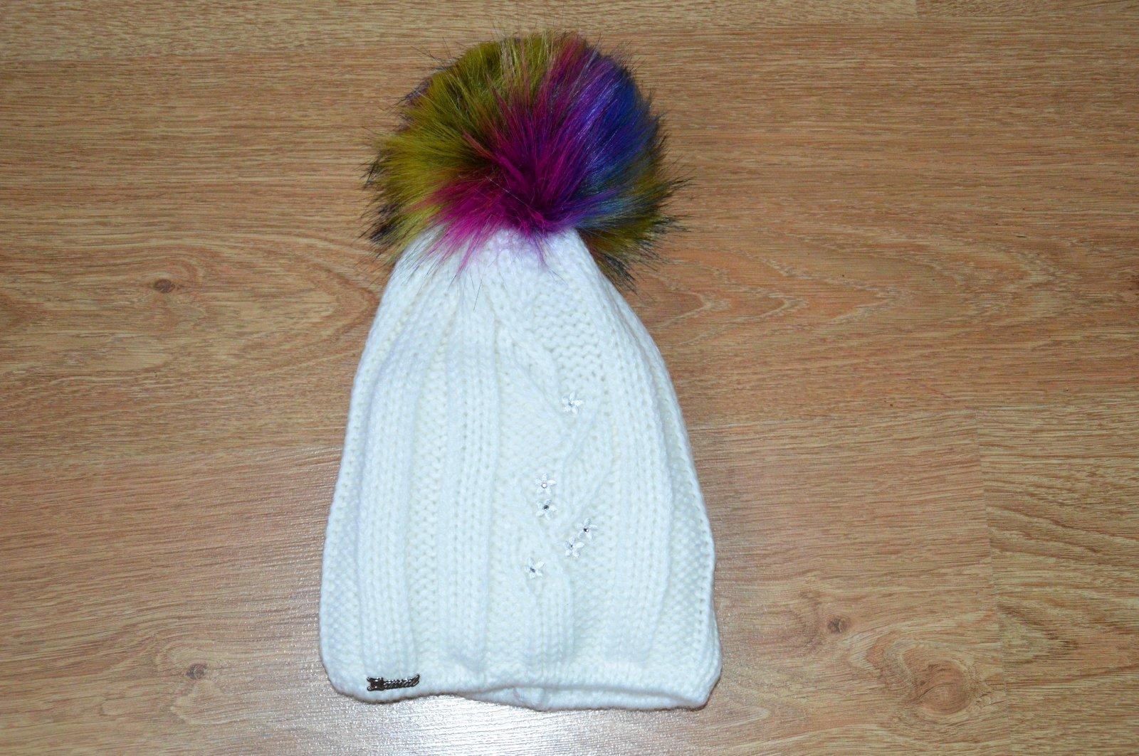 SkladomPletená čiapočka s veľmi pekným vzorom a bohatým brmbolcom.
