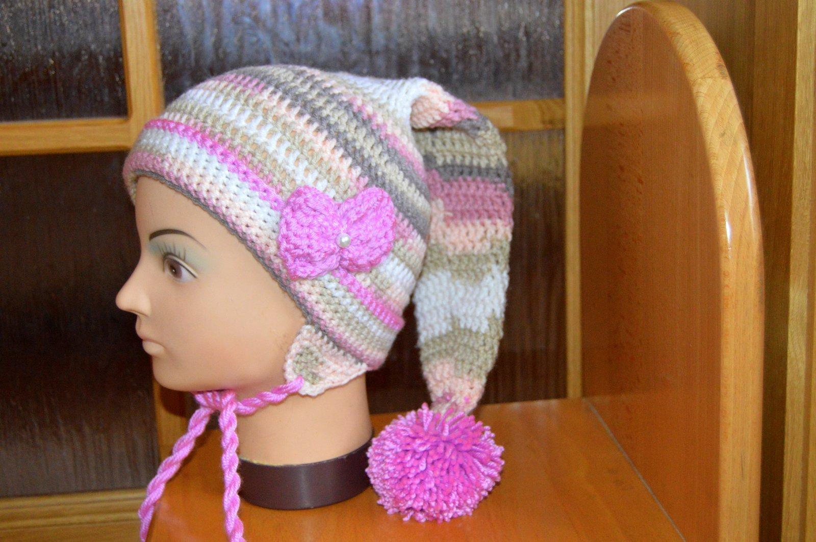 Háčkovaná čiapočka s bambuľkou.