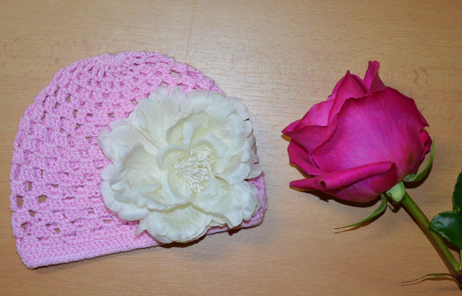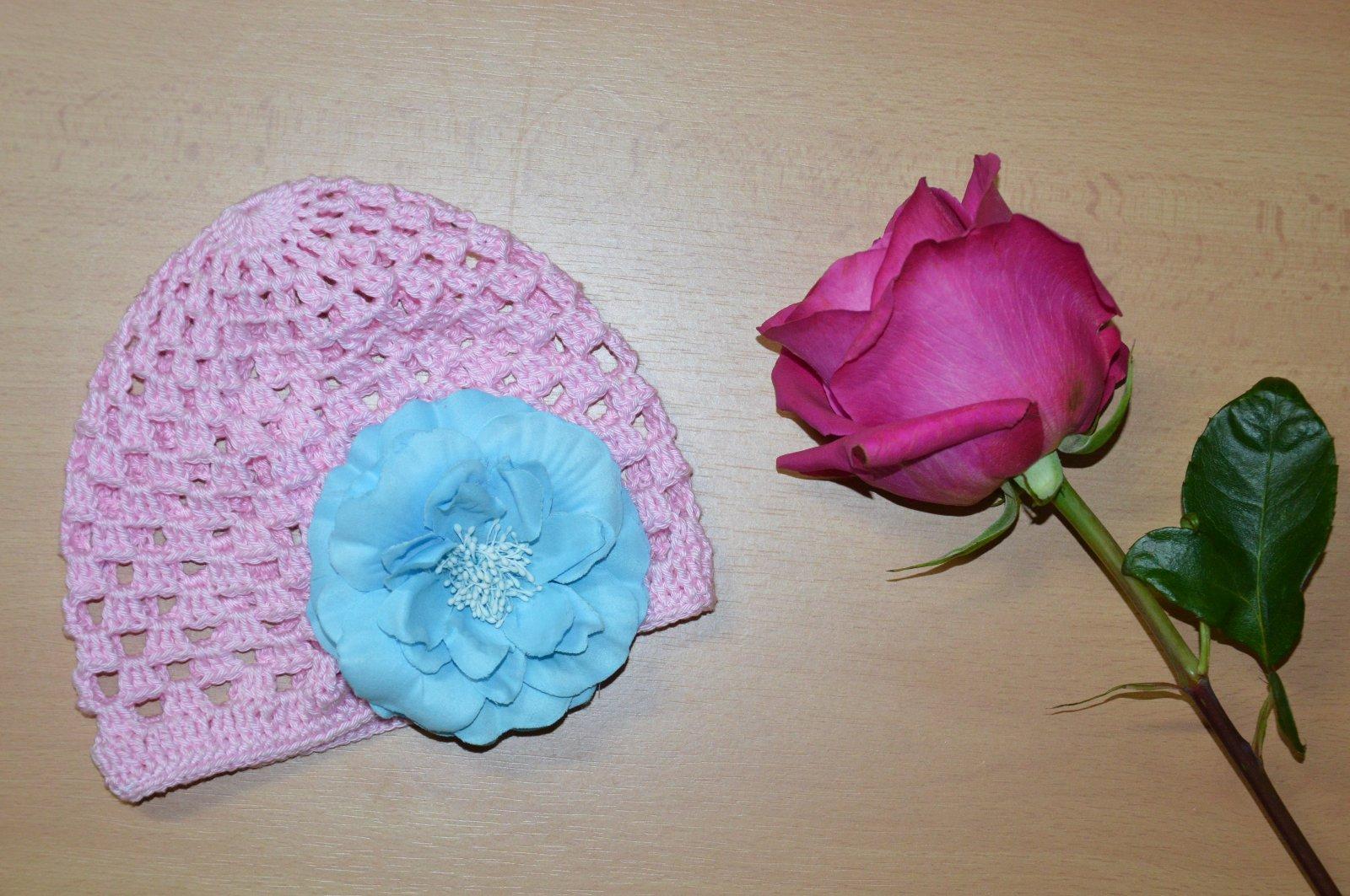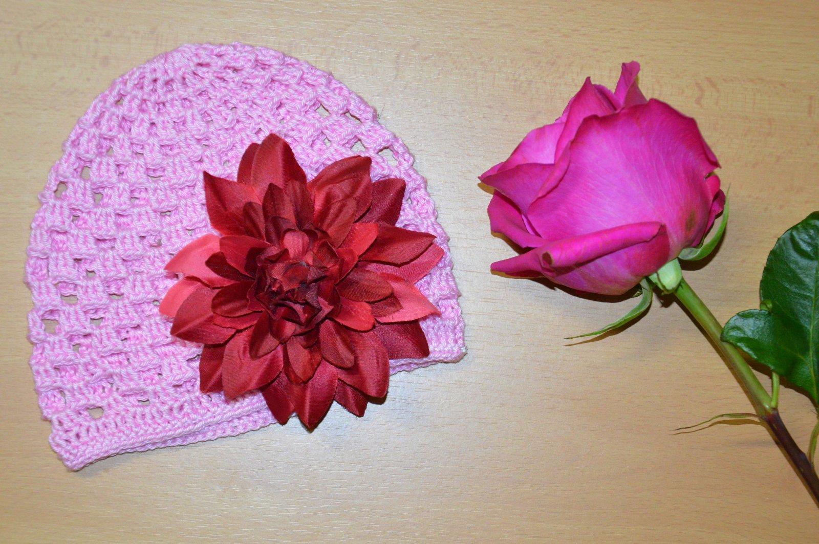 Háčkovaná čiapočka s kvetom