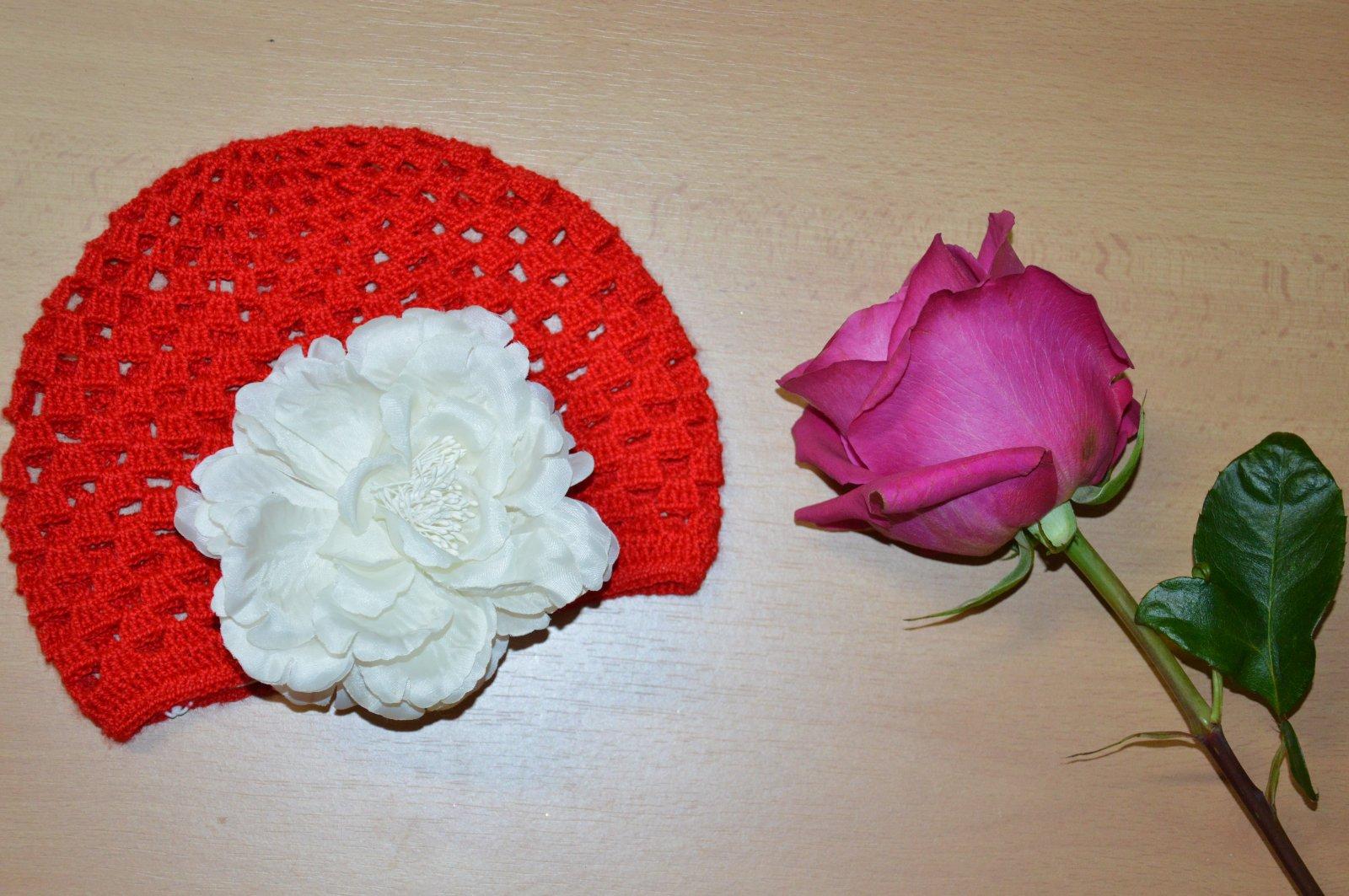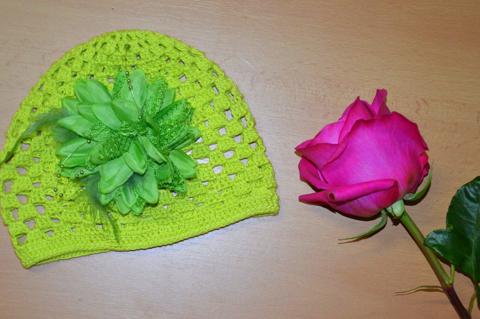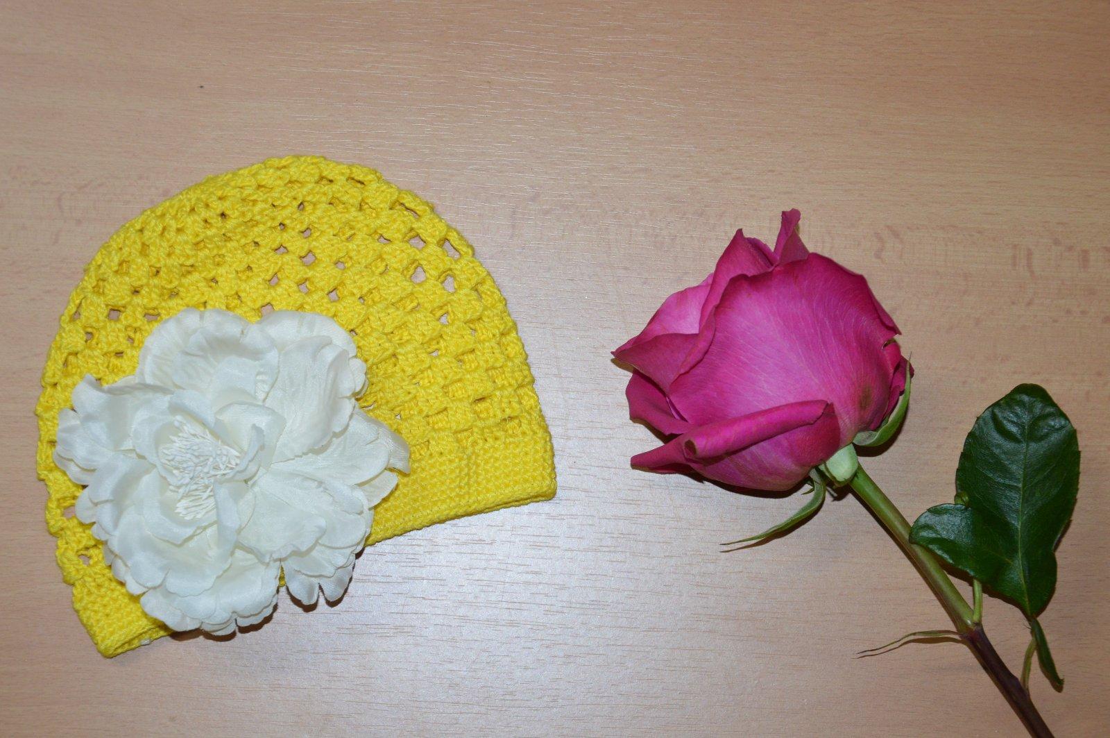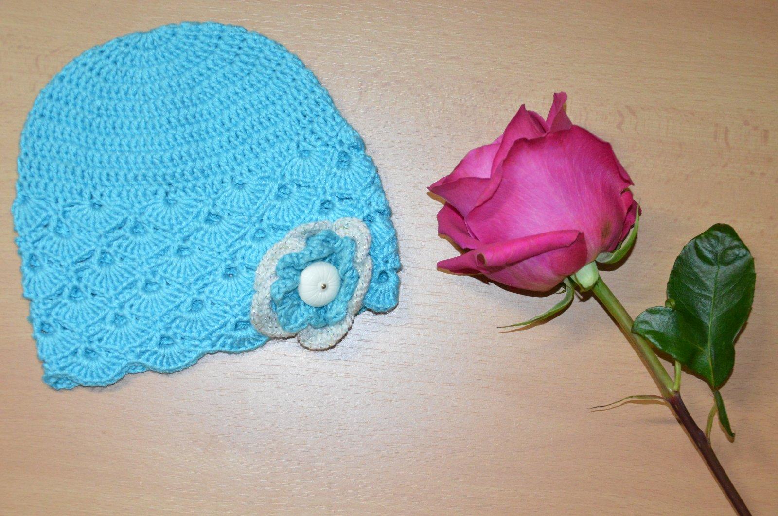 Háčkovaná čiapočka s kvetom