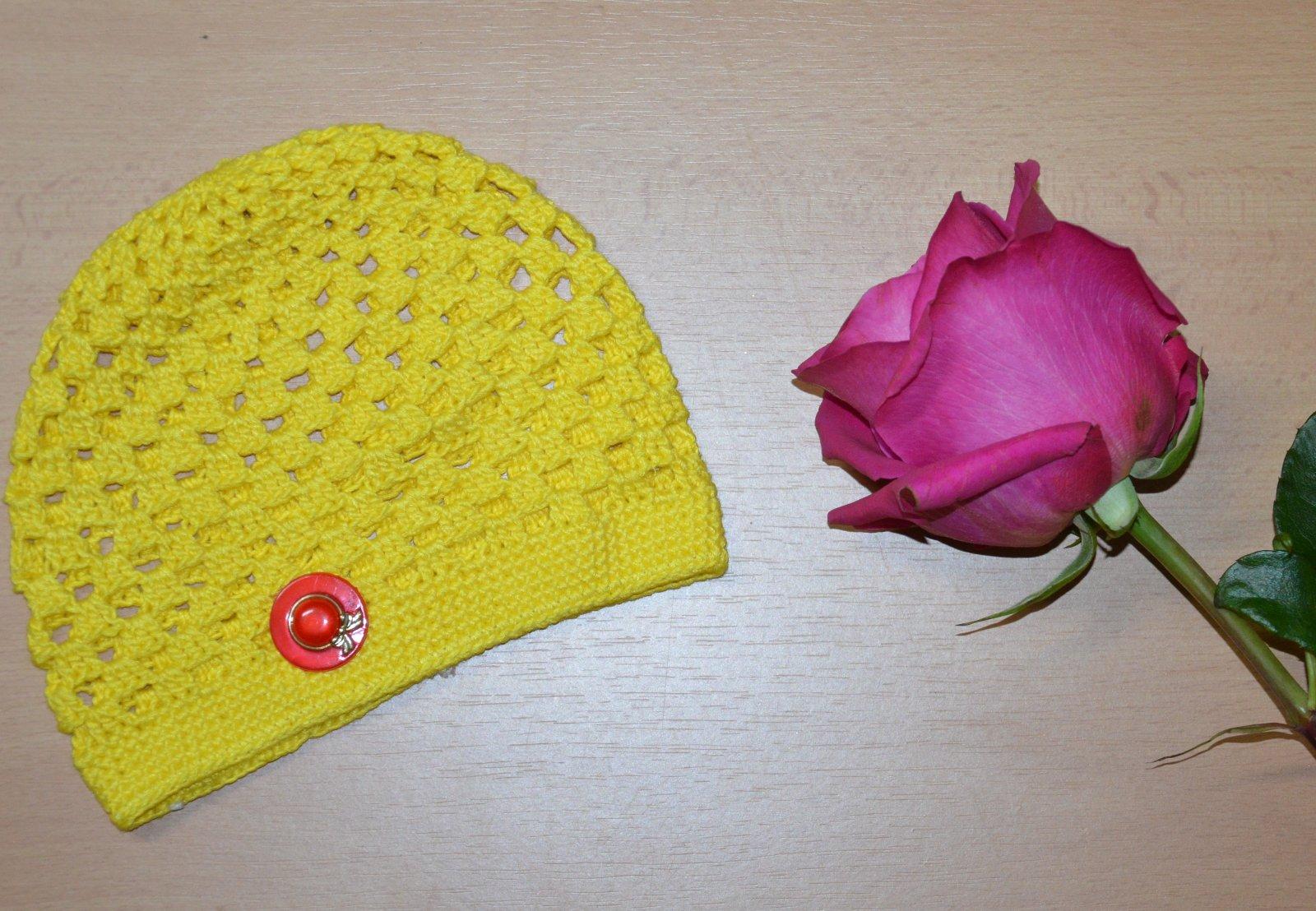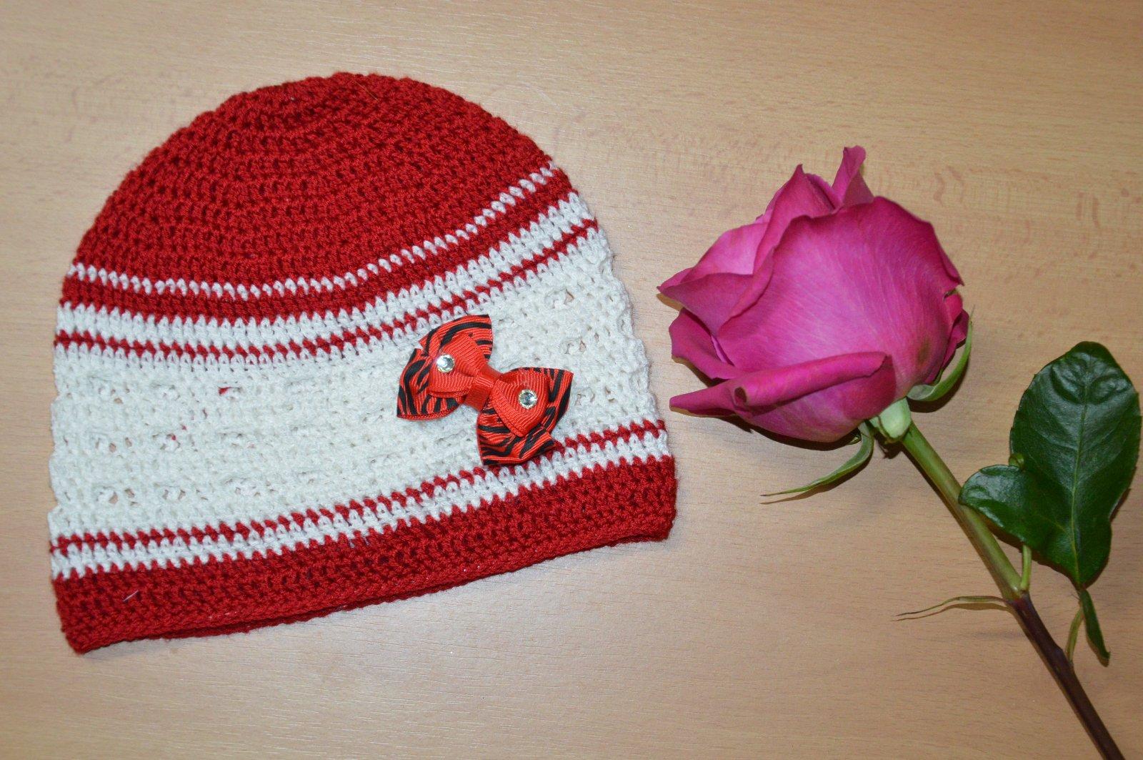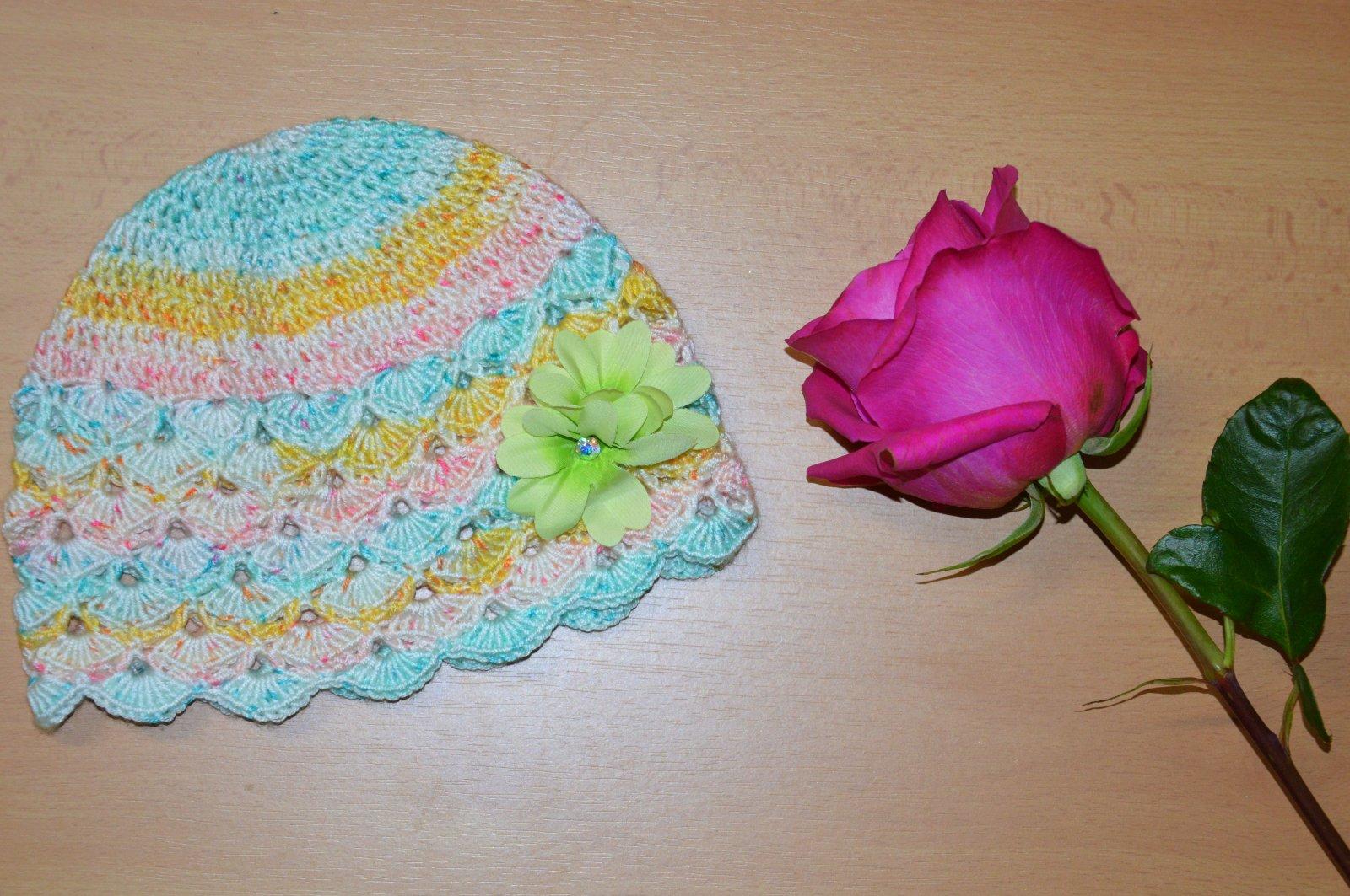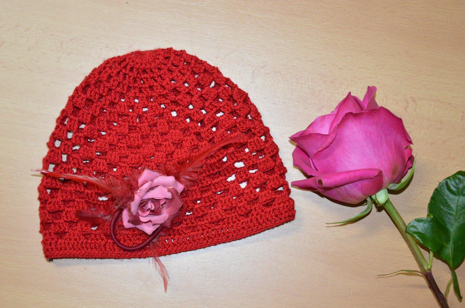 SkladomRučne háčkovaná čiapočka s veľmi pekným vzorom a kvetom.