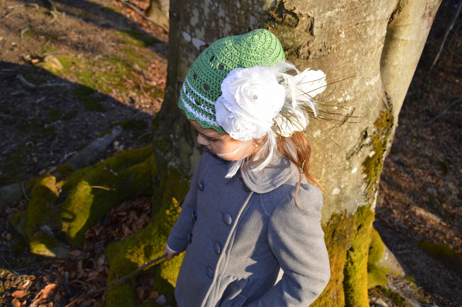 Háčkované čiapočky s veľkými odopínateľnými kvetmi.