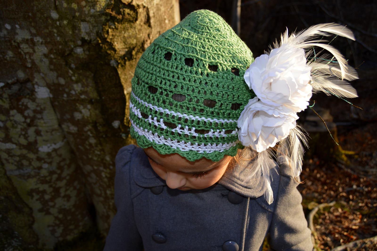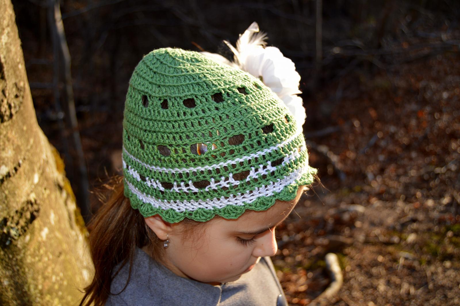 Ručne háčkovaná čiapočka s veľmi pekným vzorom a kvetom.
