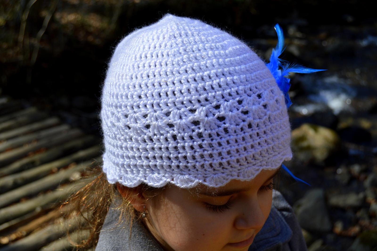 Ručne háčkovaná čiapočka s veľmi pekným vzorom a kvetom.