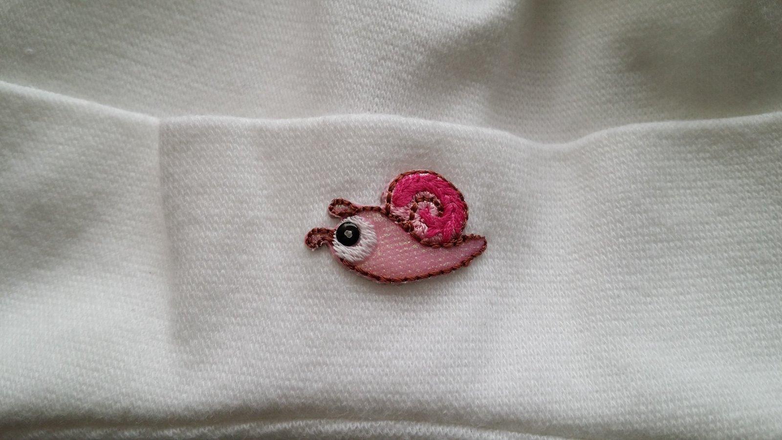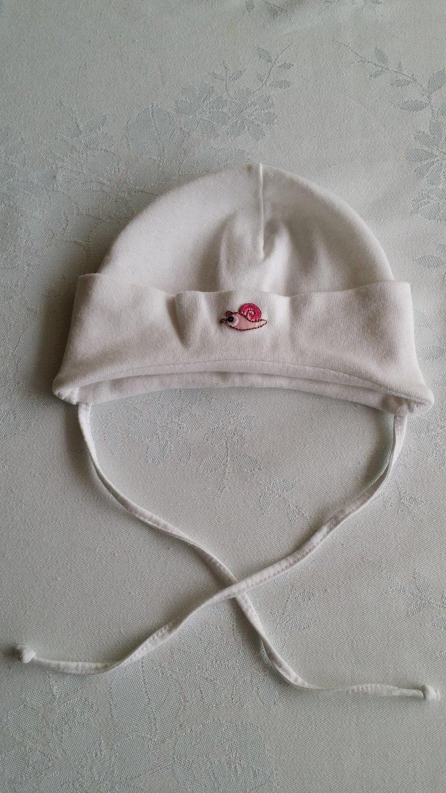 Málo nosená čiapočka, s vyšívaným slimáčikom. Značka RADETEX, veľ.1. 96% bavlna, 4% elastan.