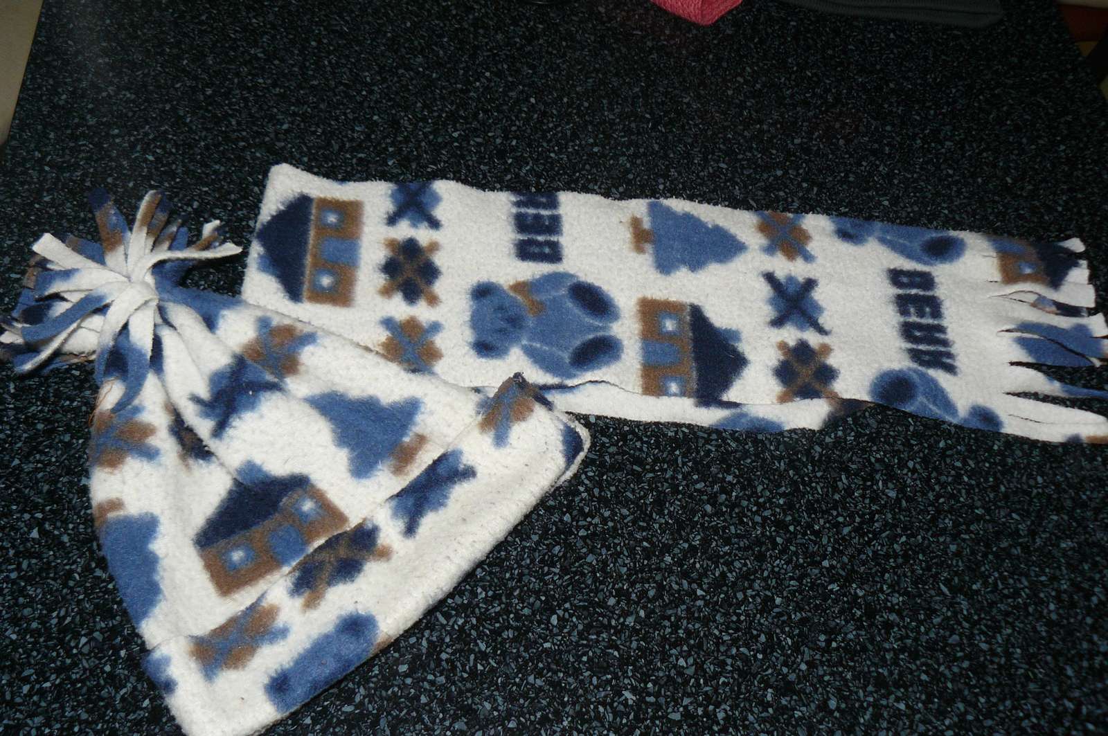Predám súpravu.Cena 6€ plus poštovné a balné.Tovar zasielam po vložení peňazí na môj účet.Objednávka je záväzná.Po objednaní nie je možné tovar vrátiť.Výška bez brmbolca-21cm,šírka-23cm.Šál-14cm x 96cm.