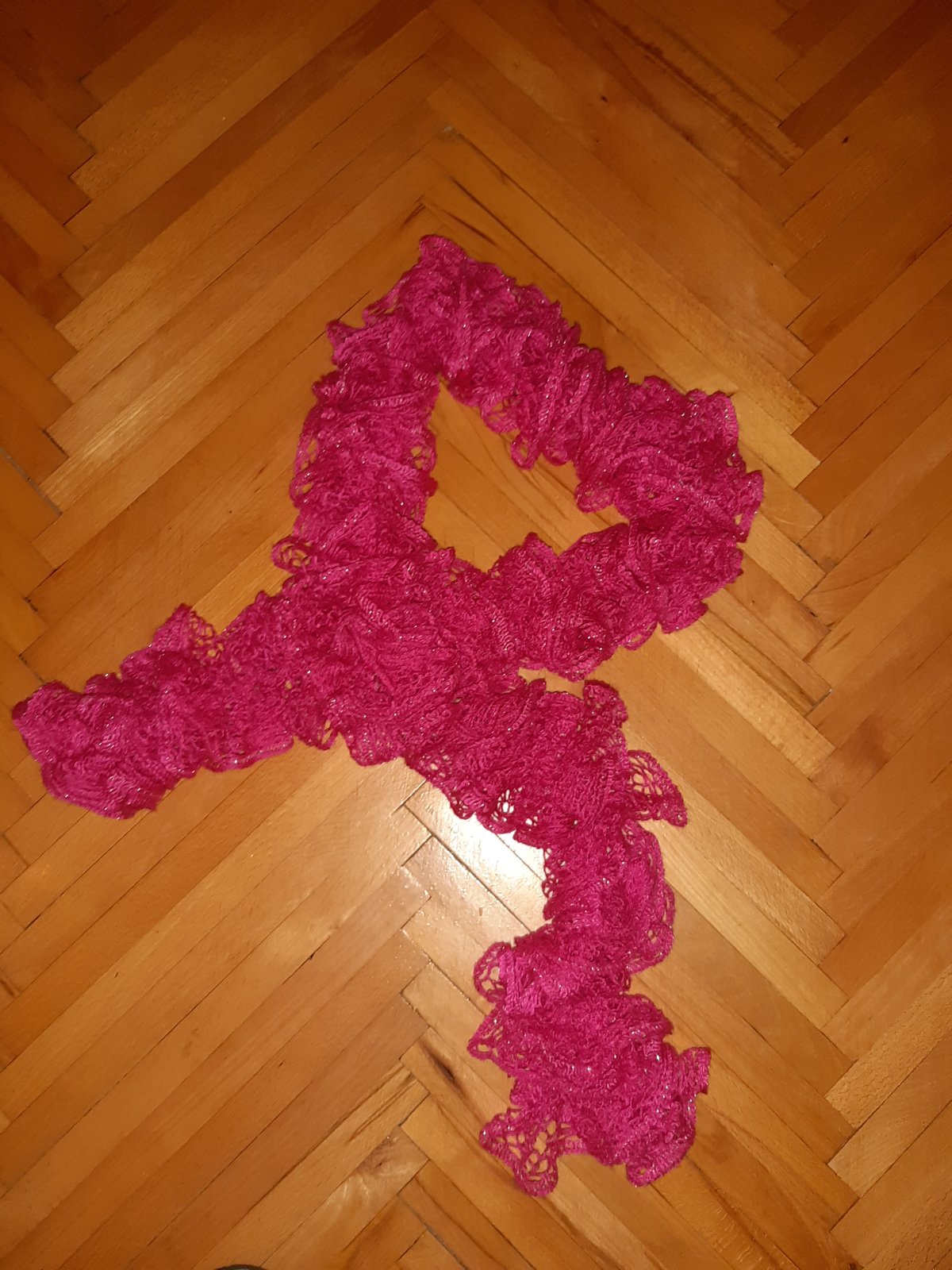 Dámsky ružový šál bez poškodení.
