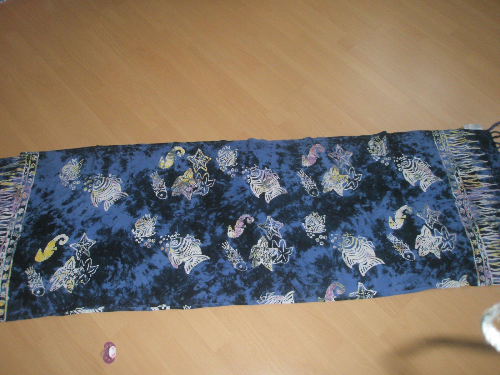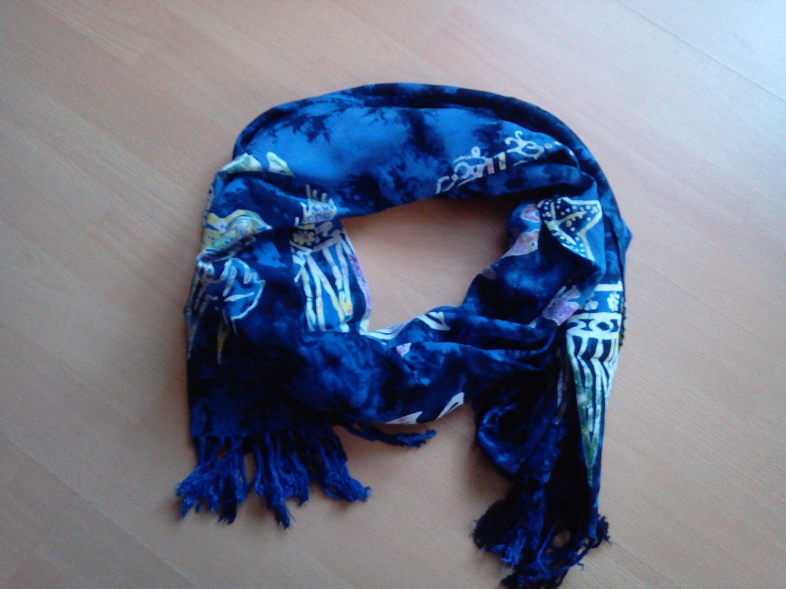 predám širokú maľovanú (štýl batika) šatku, je akokeby z dvoch vrstiev, strapce "posplietané"....