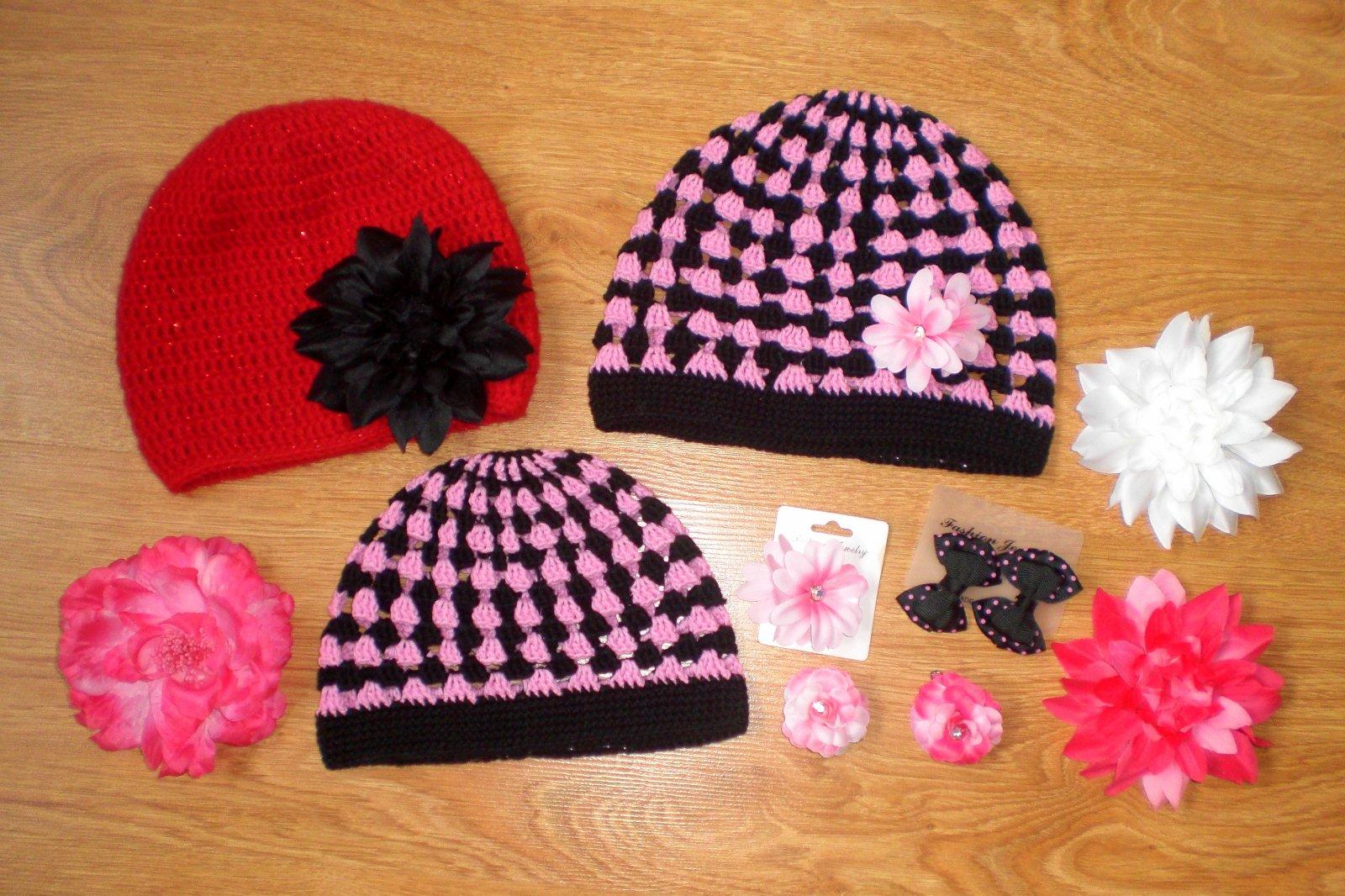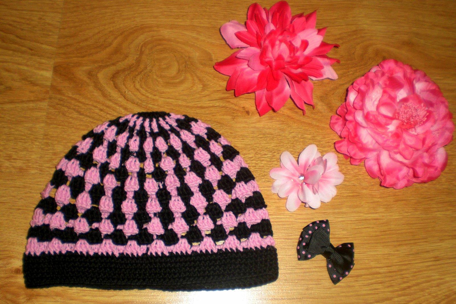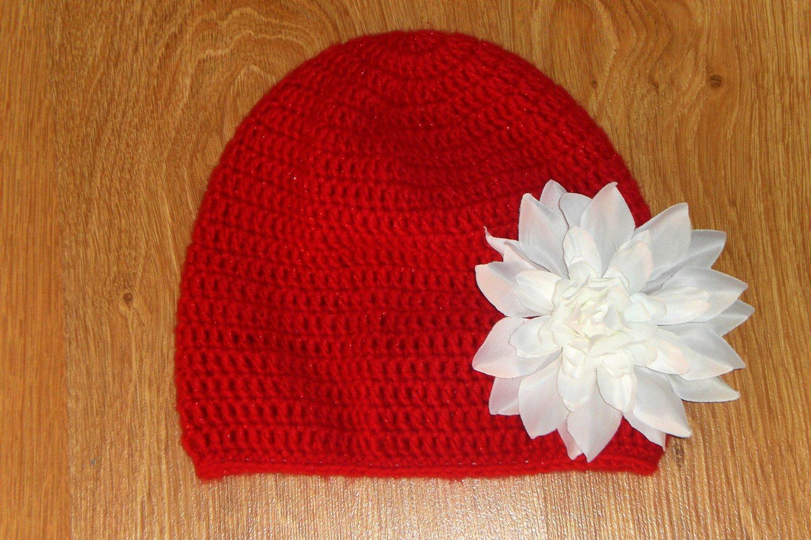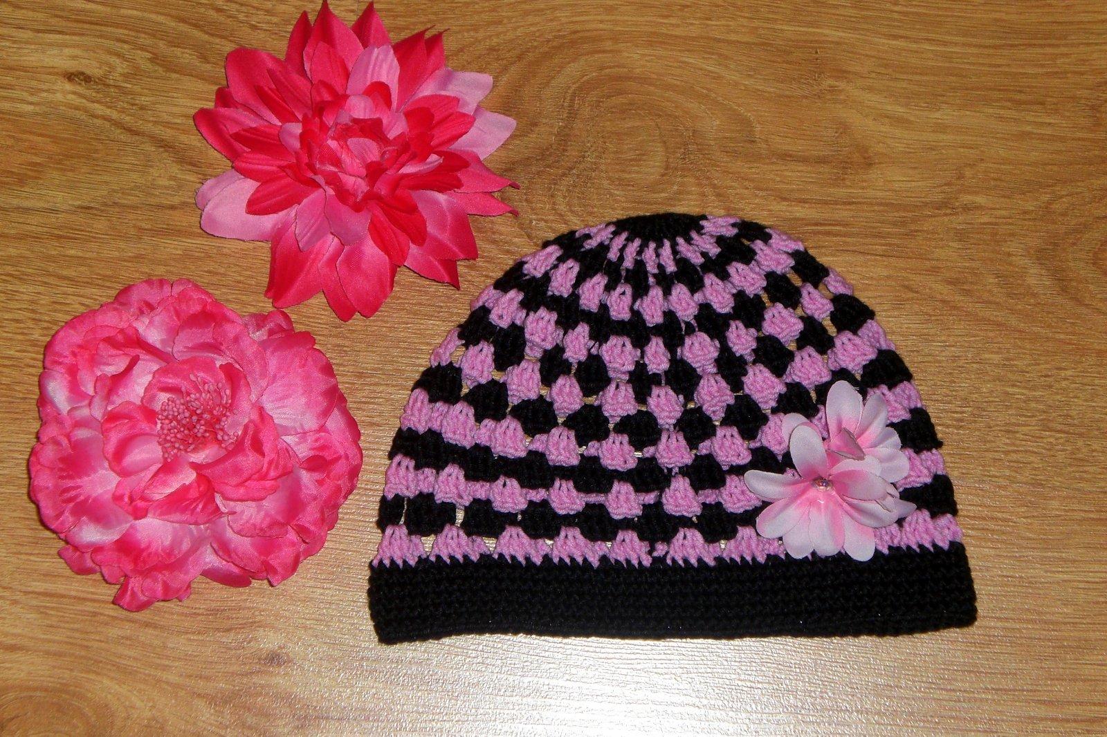 Ručne háčkovaná čiapočka s veľmi pekným vzorom a kvetom.