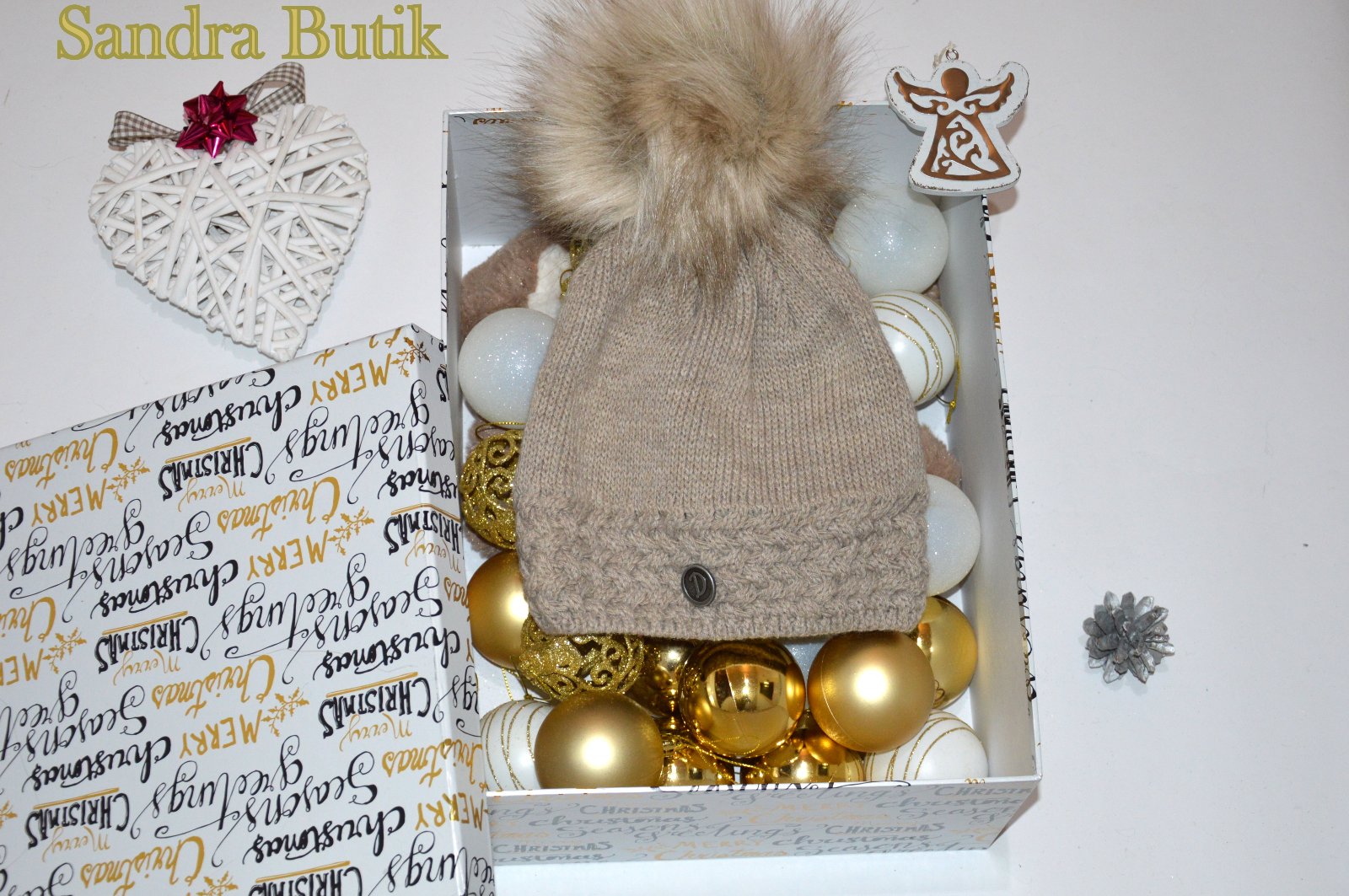 SkladomPletená čiapočka s veľmi pekným vzorom a bohatým brmbolcom.
