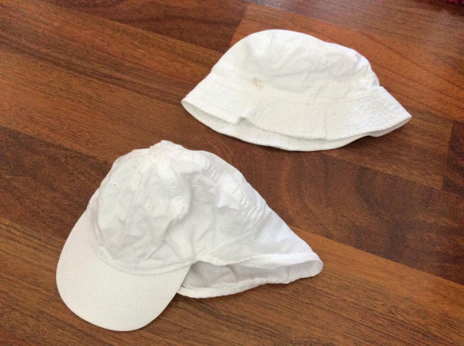 Biela siltovka s ochranou na krk, ktora sa sa zrolovat a upnut hore na ciapku, biely klobuk, vel. 6-9 mes. 5€ spolu