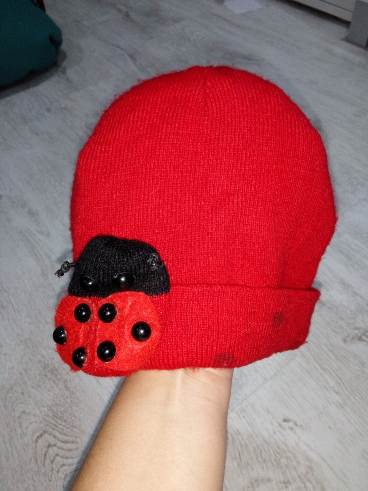Zimná čiapka a šál s lienkou bez poškodenia na obvod hlavičky 36cm+, dĺžka 16cm. Ponosíte dlhšie.