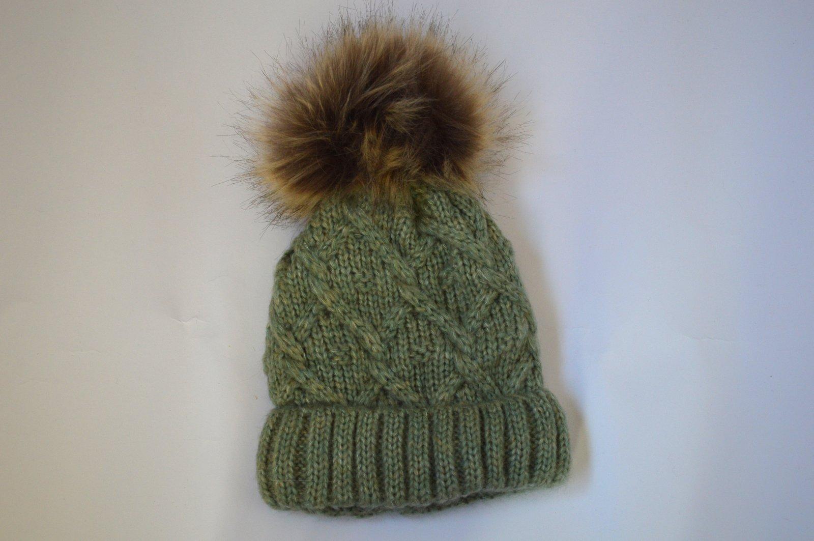 SkladomPletená čiapočka s veľmi pekným vzorom a bohatým brmbolcom.