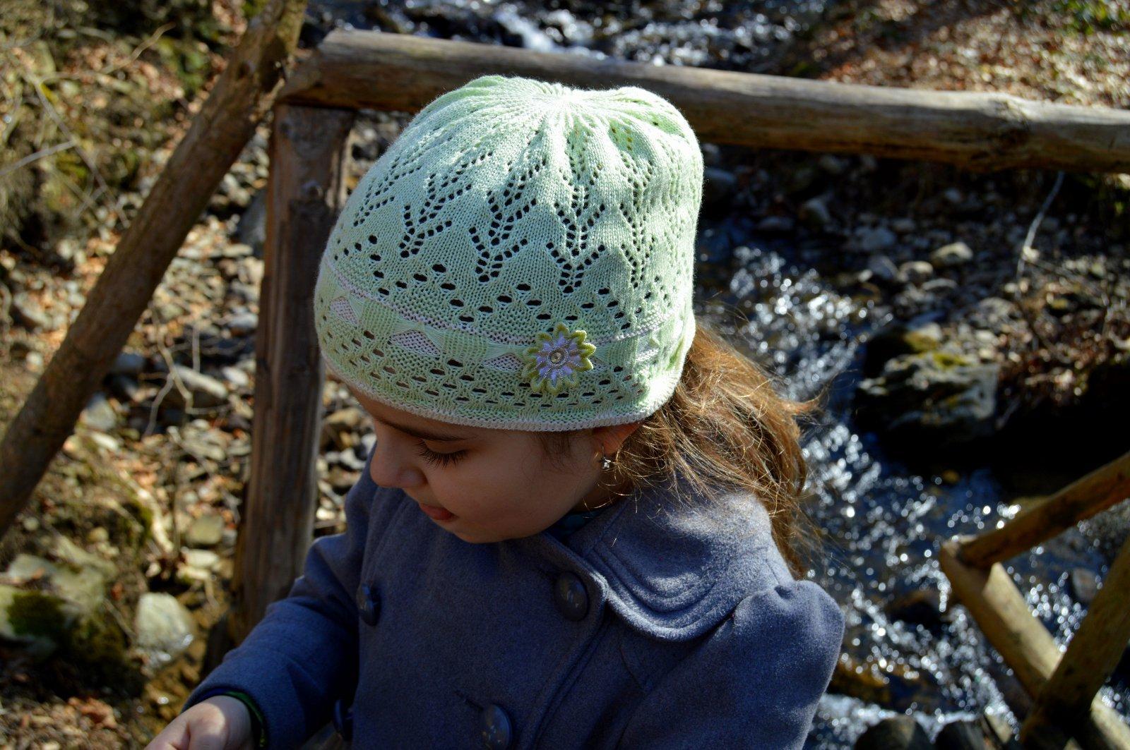 SkladomRučne háčkovaná čiapočka s veľmi pekným vzorom a kvetom.