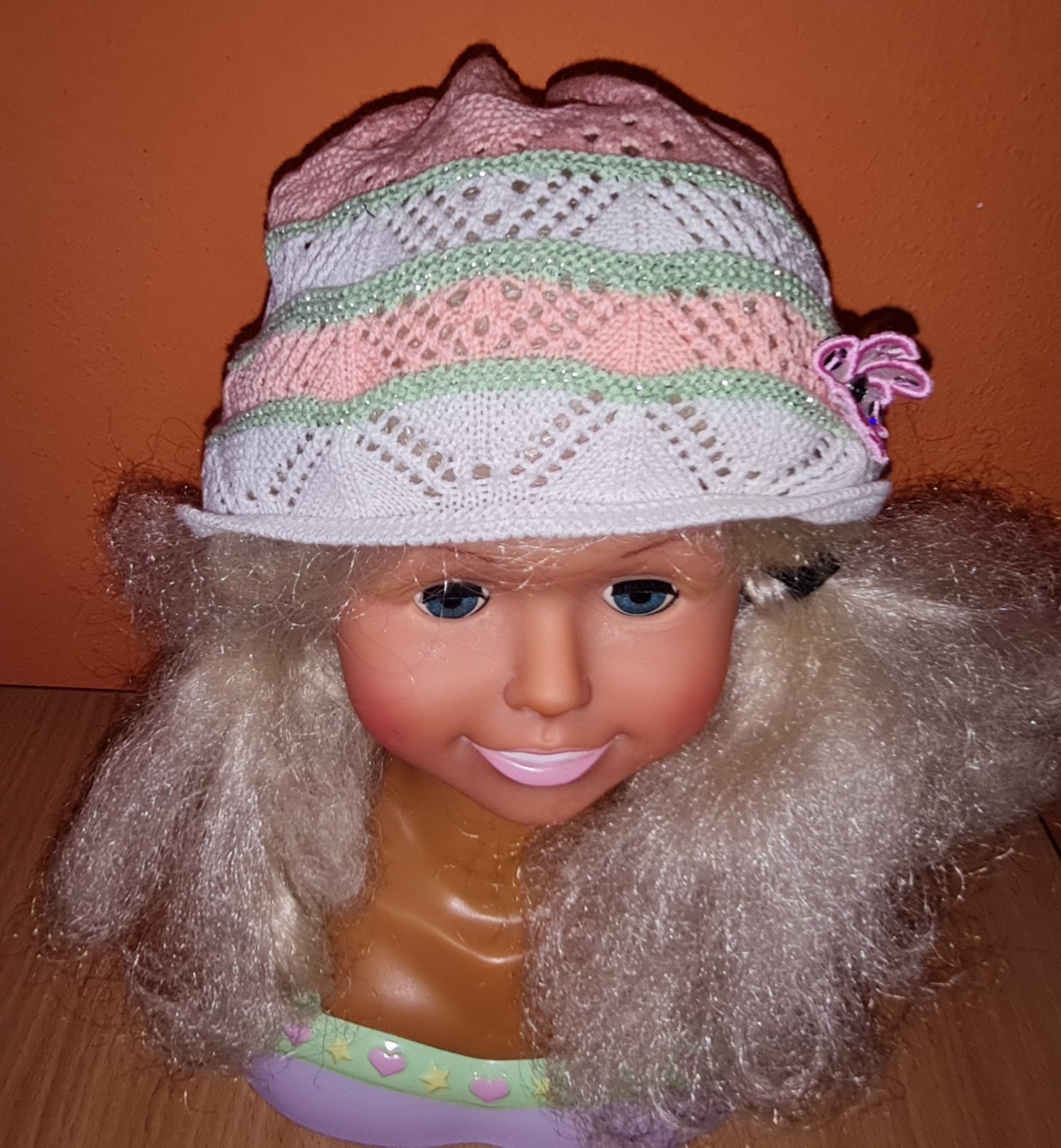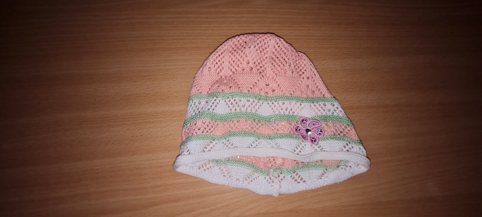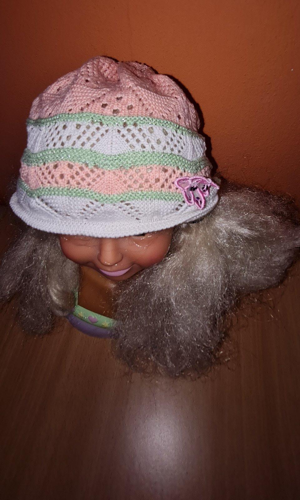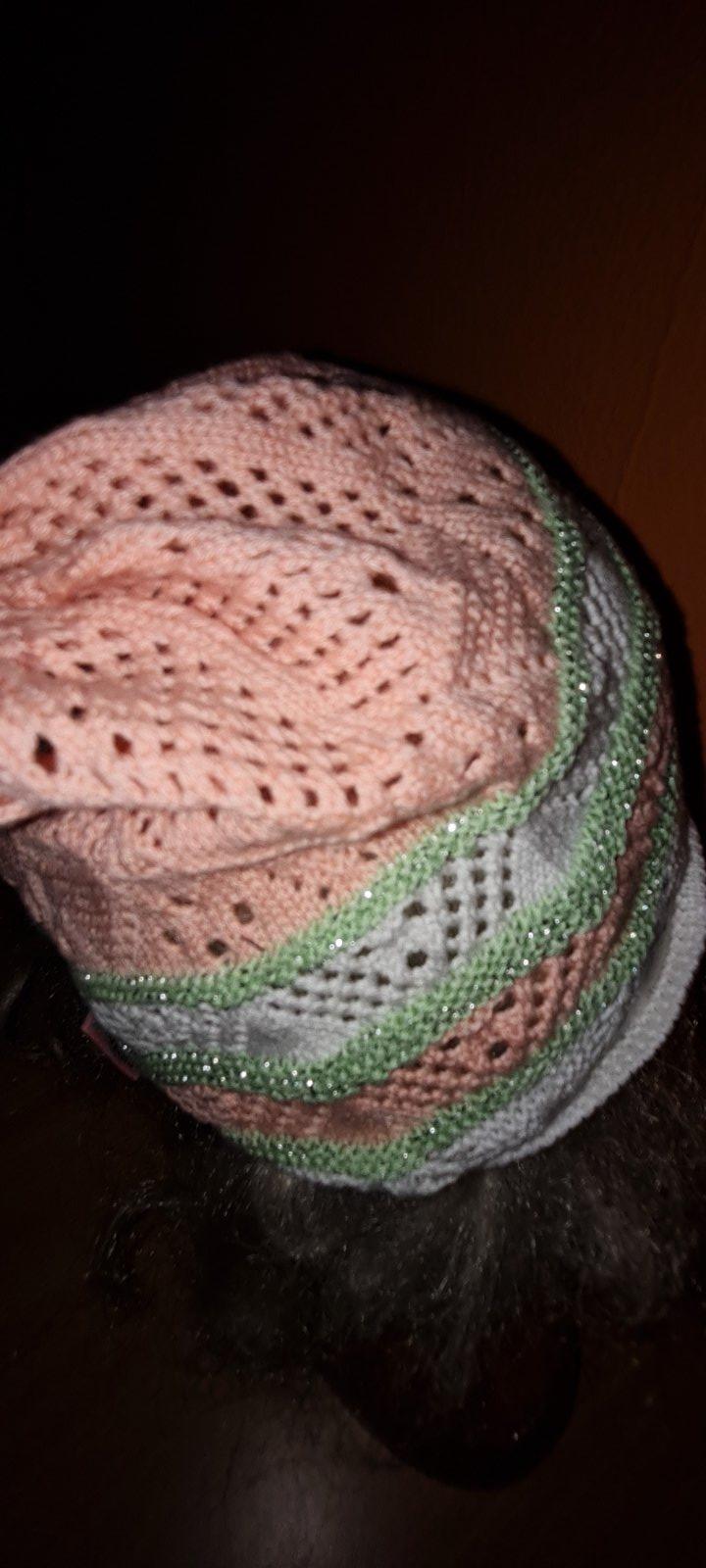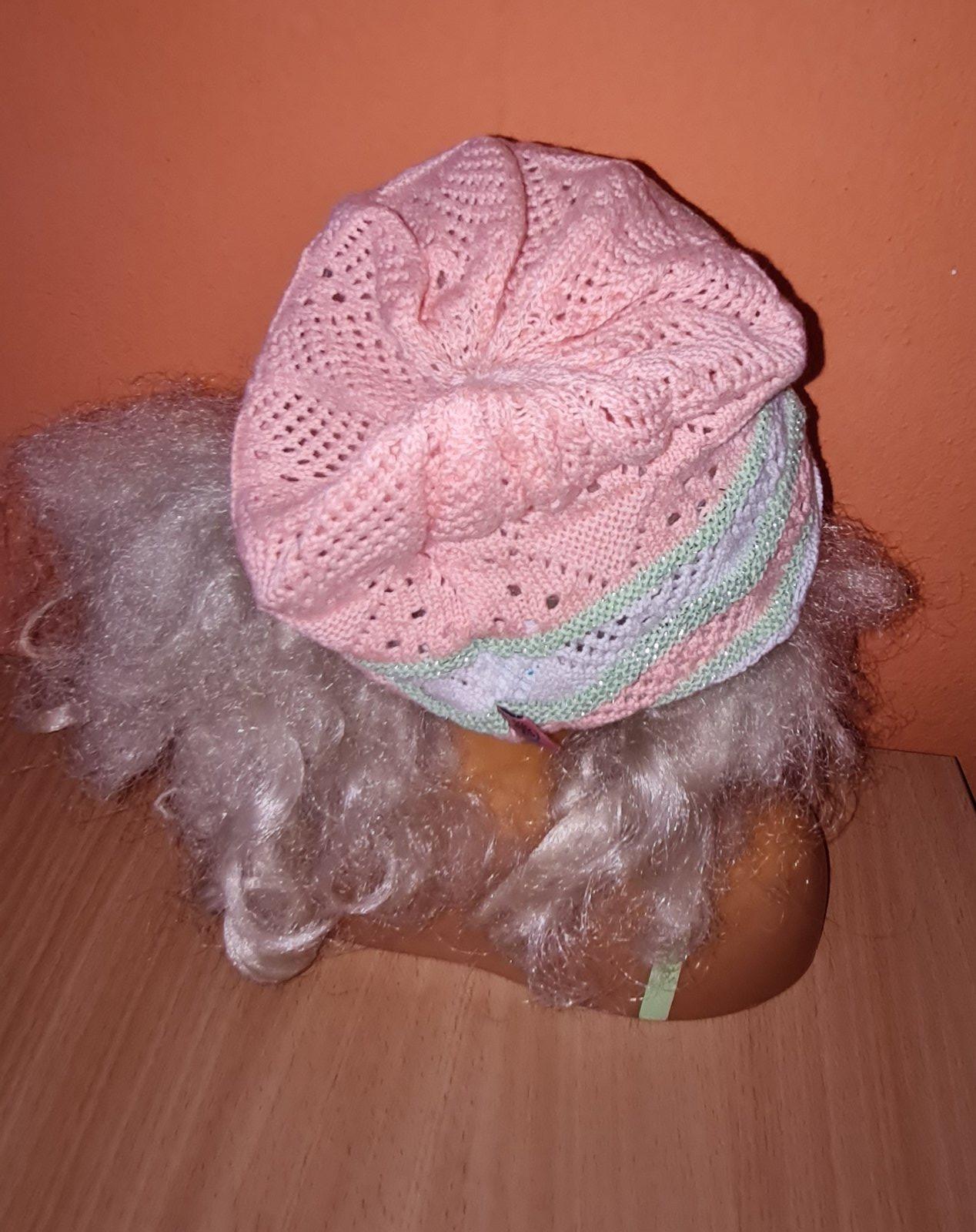 oranžovo - bielo - zelená čiapka, vhodná na jar / jeseň, dierková, tenká, perfektný stav