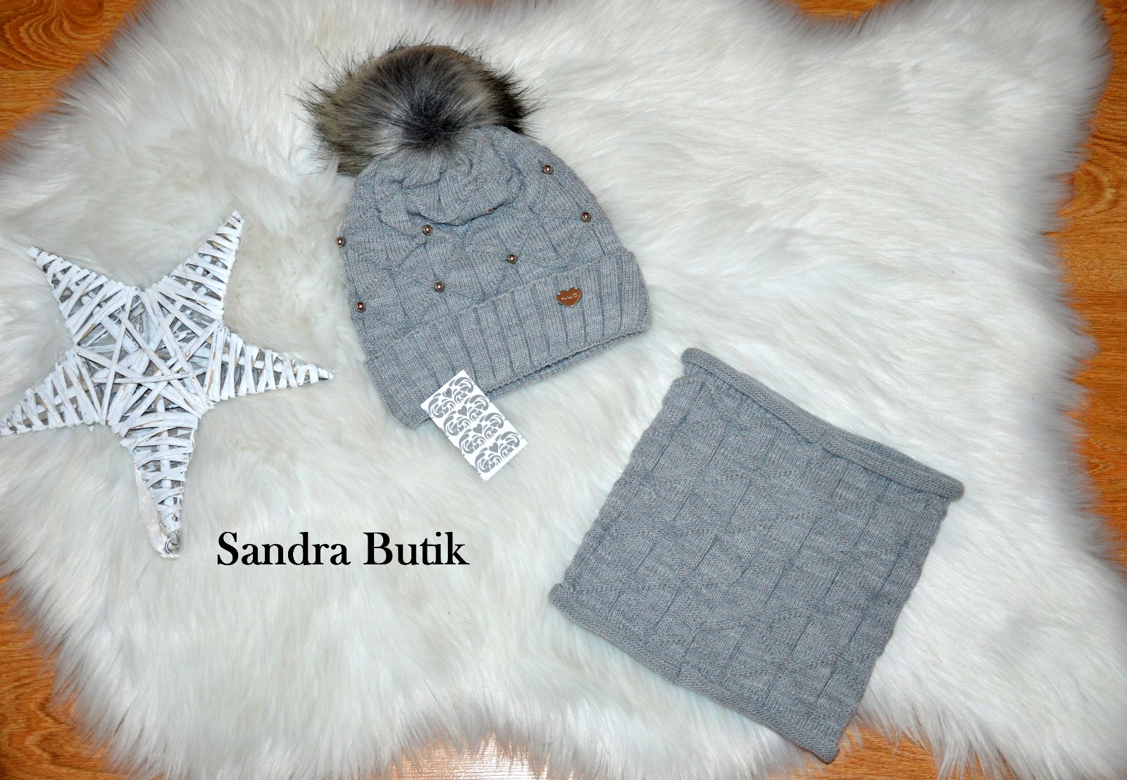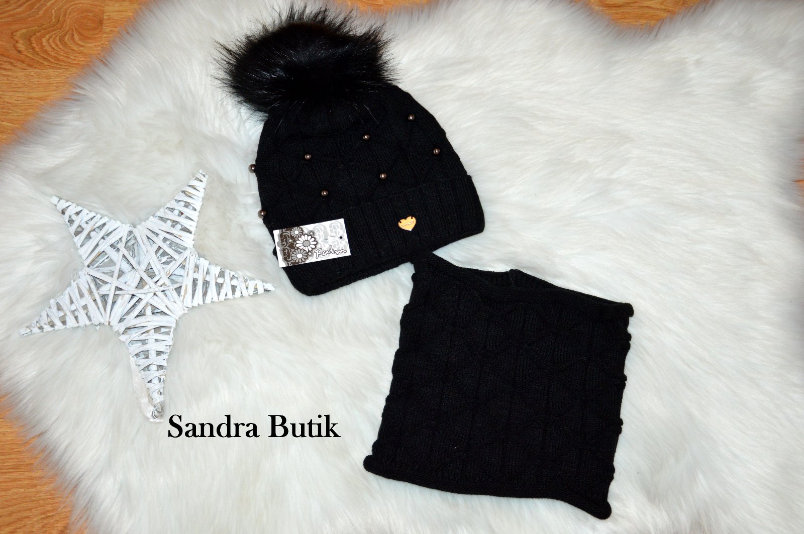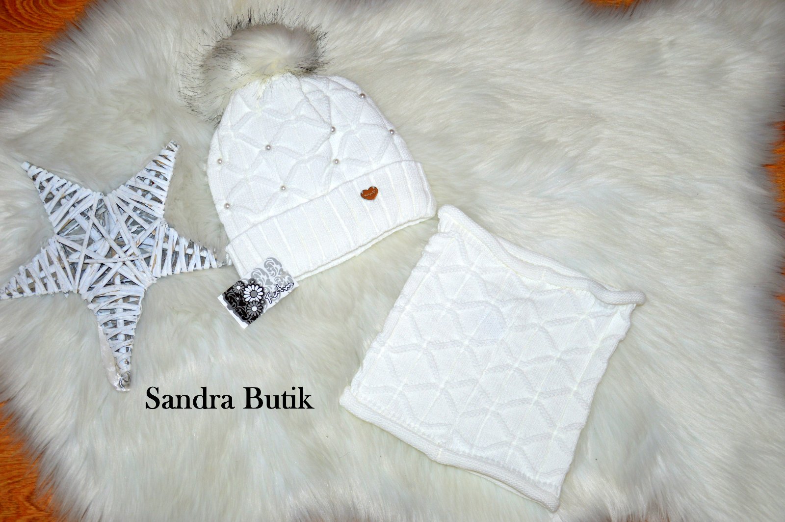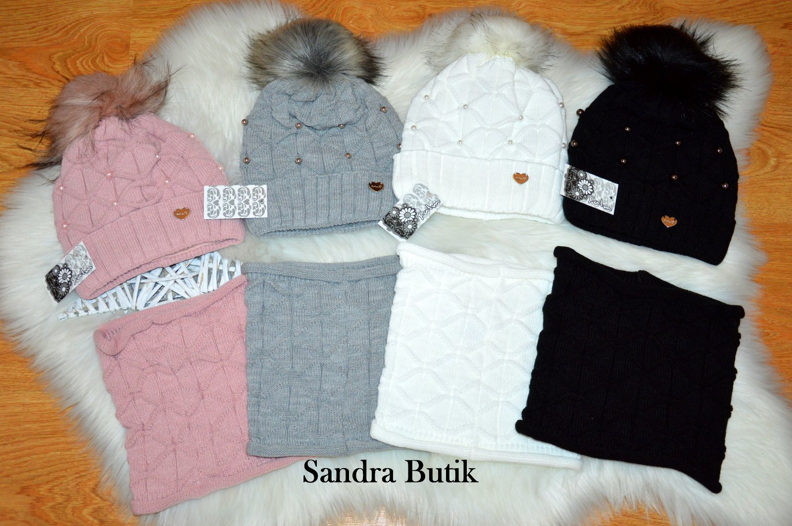 SkladomPletená čiapočka s veľmi pekným vzorom a bohatými brmbolcami.