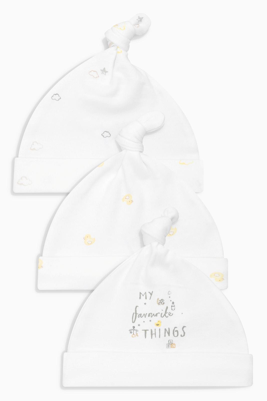 3 balenie čiapok s uzlíkom, zn. Next, dovoz UK, unisex farby, 100% bavlna, kód 184770.