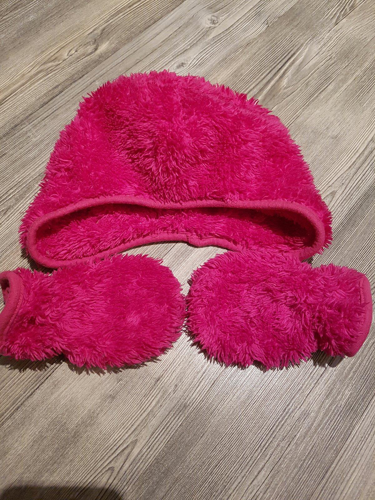 Krásny setík s podšitou čiapočkou, čiapočka nebola nosená,bola nám hneď malá, veľkosť je uvedená 1,5 - 2 roky, ale podľa mňa aj skôr. Rukavičky max.2x oblečené. Cena je za set.