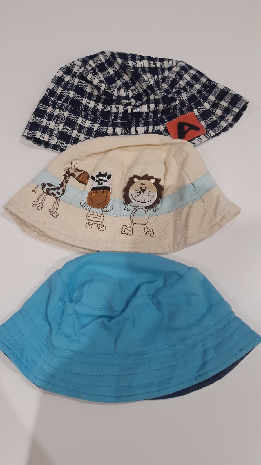 Cena spolu za 3ks.Modry je obojstranný.Obvod hlavičky 2x21cm(74)