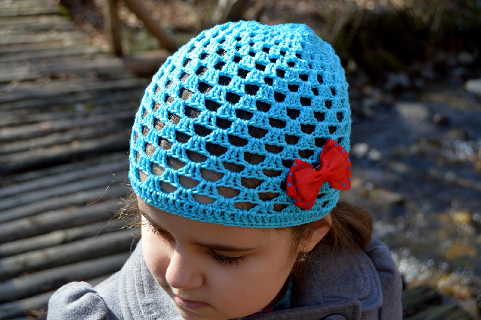 Ručne háčkovaná čiapočka s veľmi pekným vzorom a kvetom.