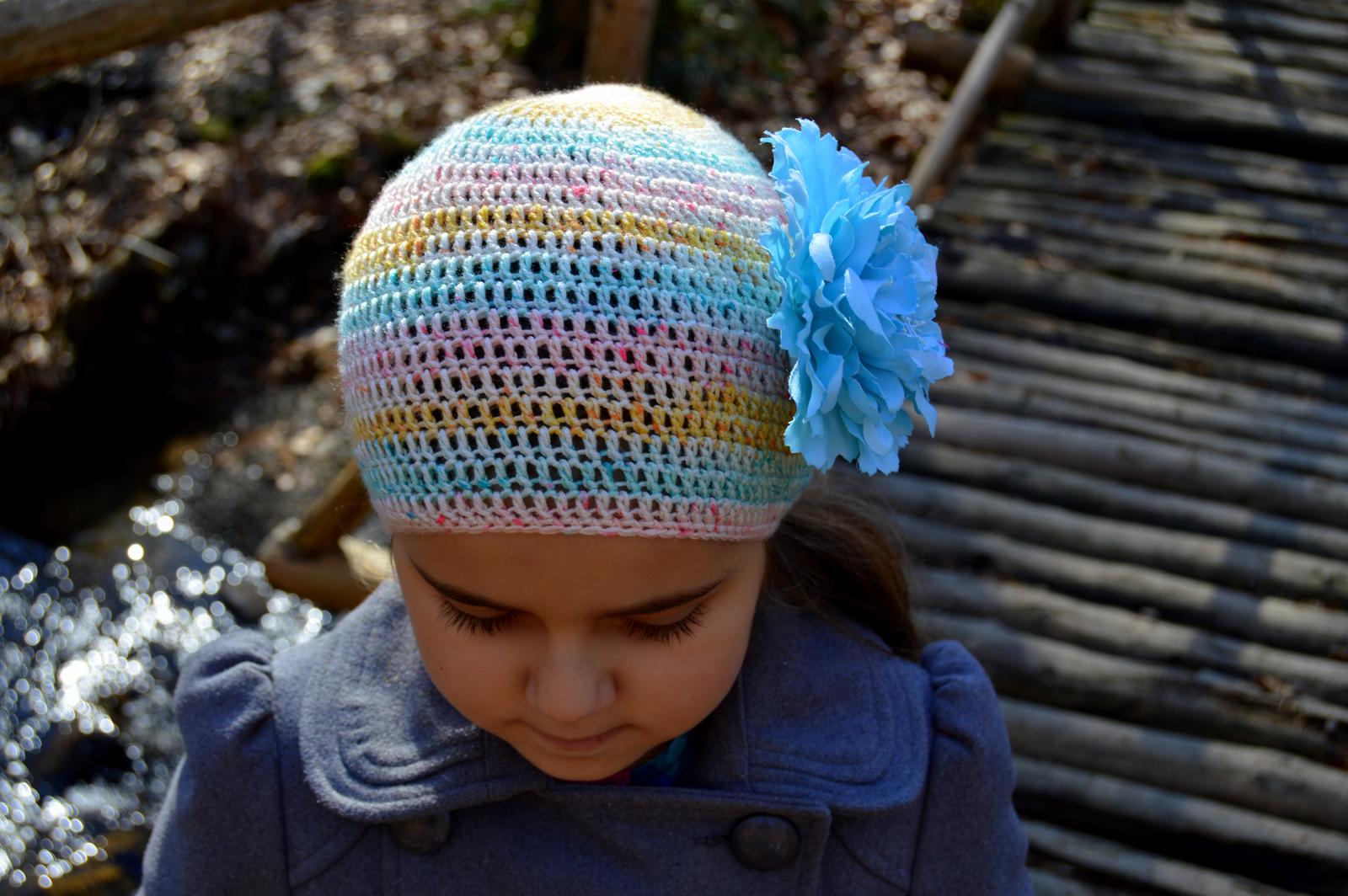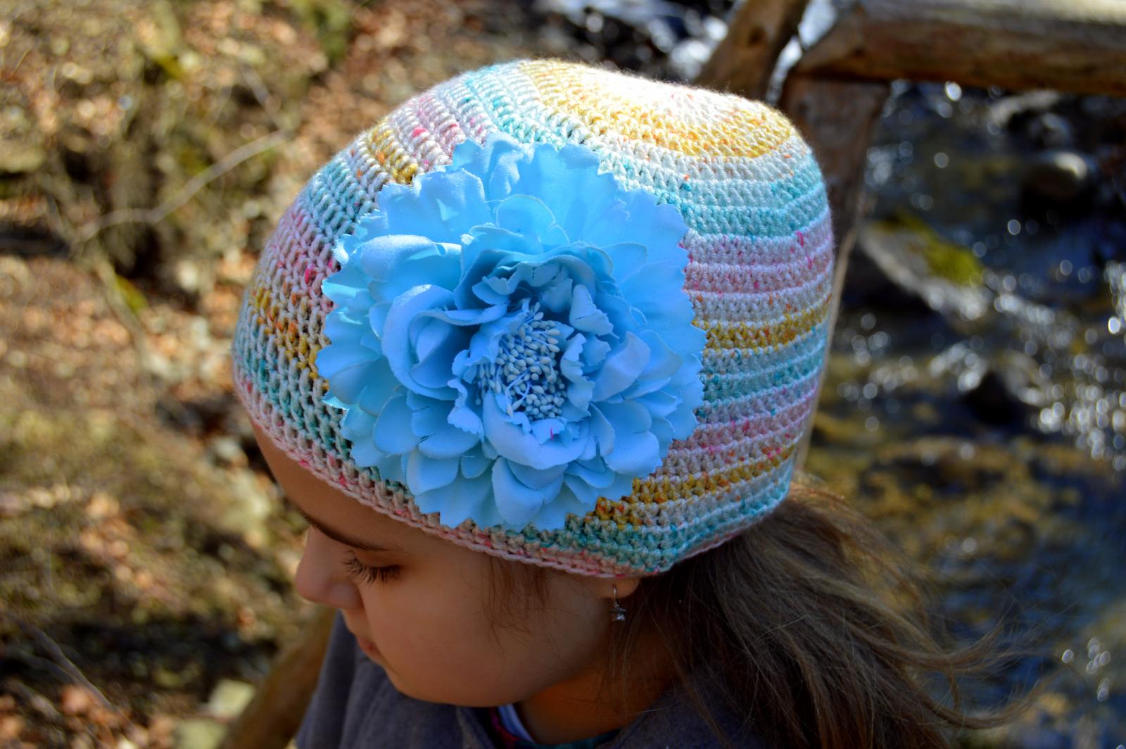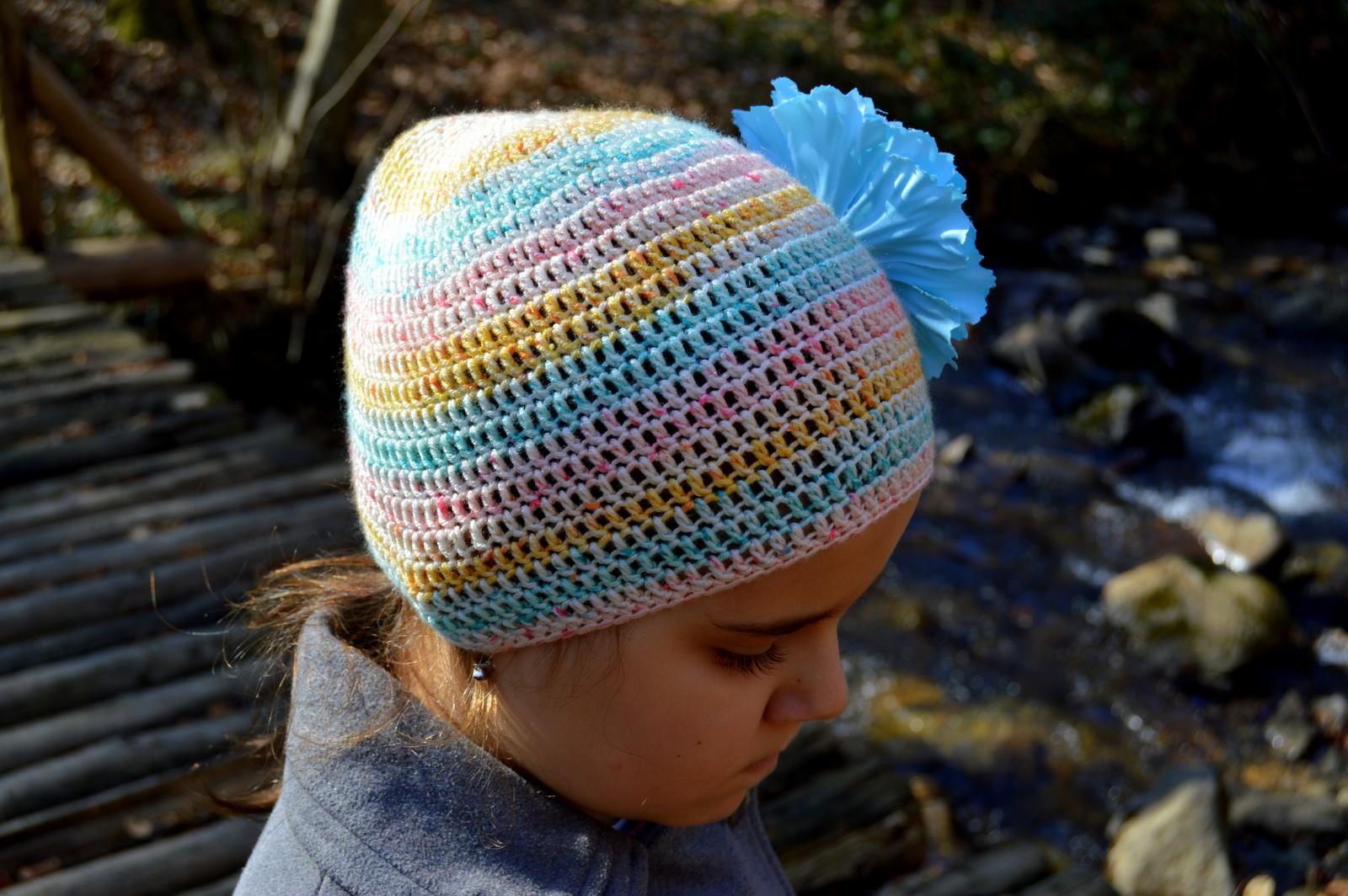 Ručne háčkovaná čiapočka s veľmi pekným vzorom a kvetom.