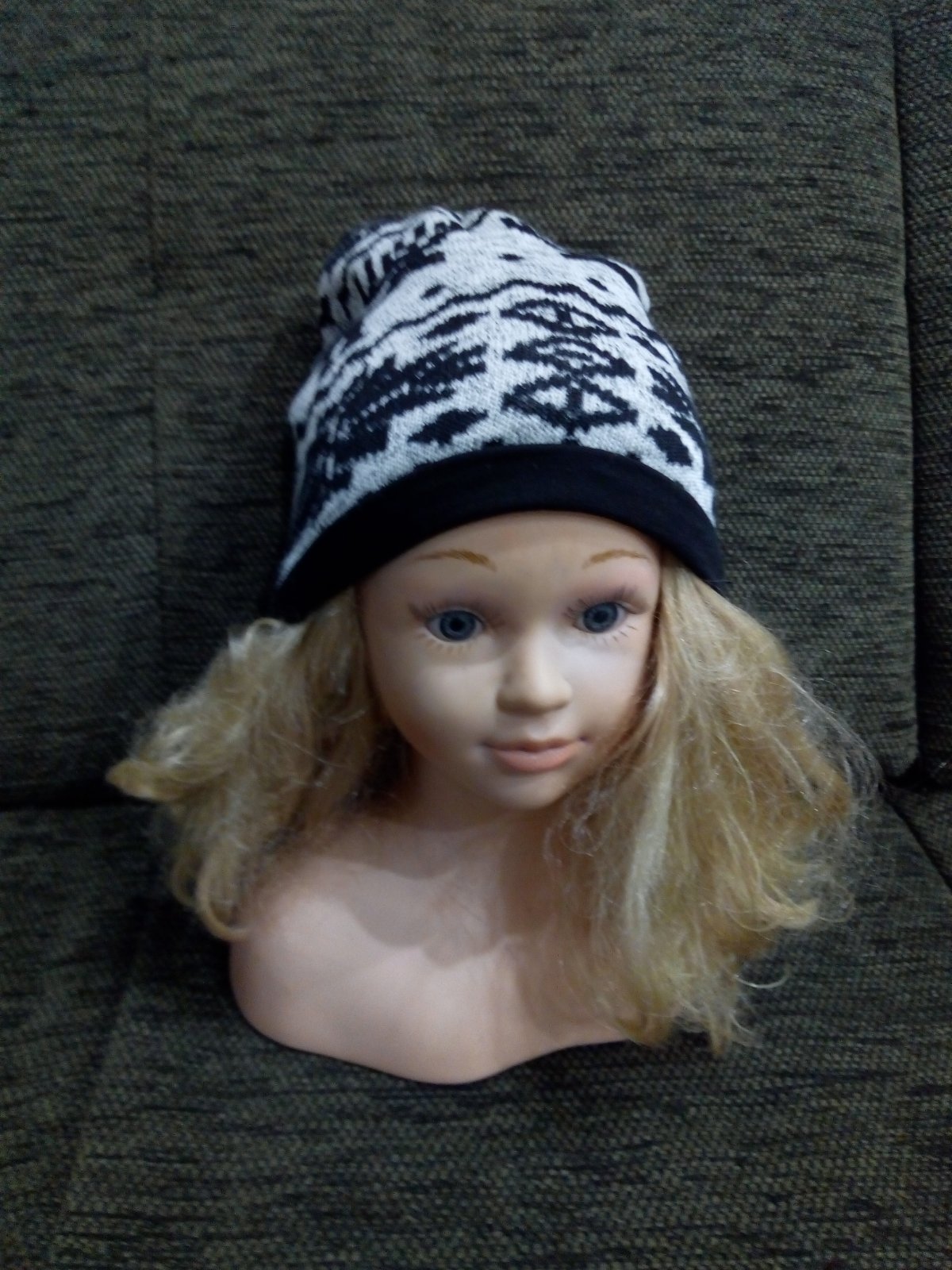 Pletená zimná čiapka s otvorom na cop. Dvojvrstvová.