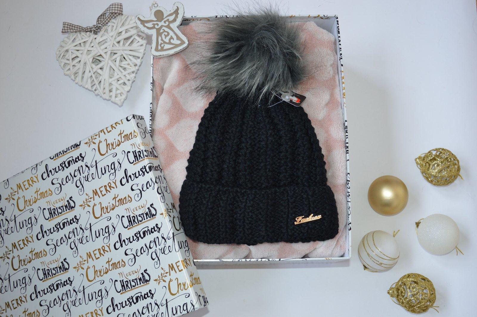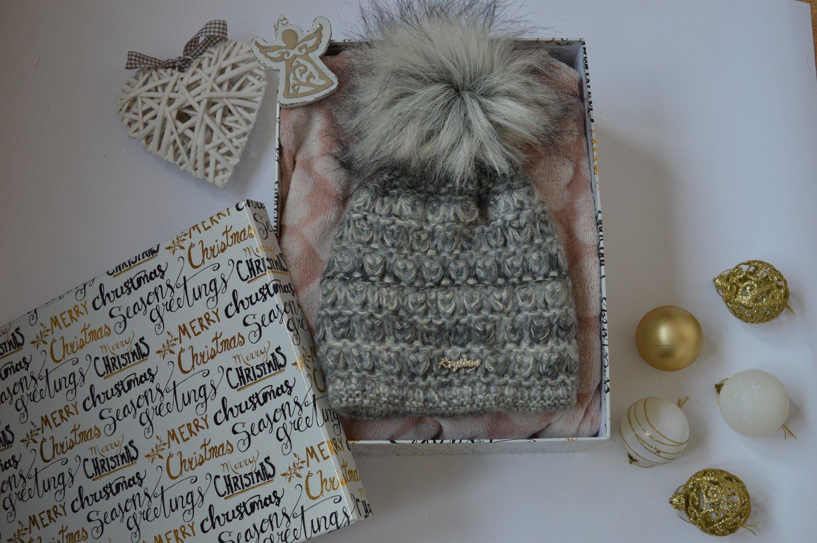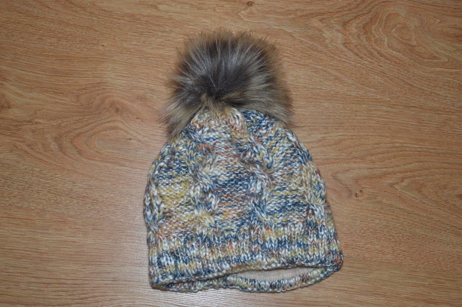 SkladomPletená čiapočka s veľmi pekným vzorom a bohatým brmbolcom.