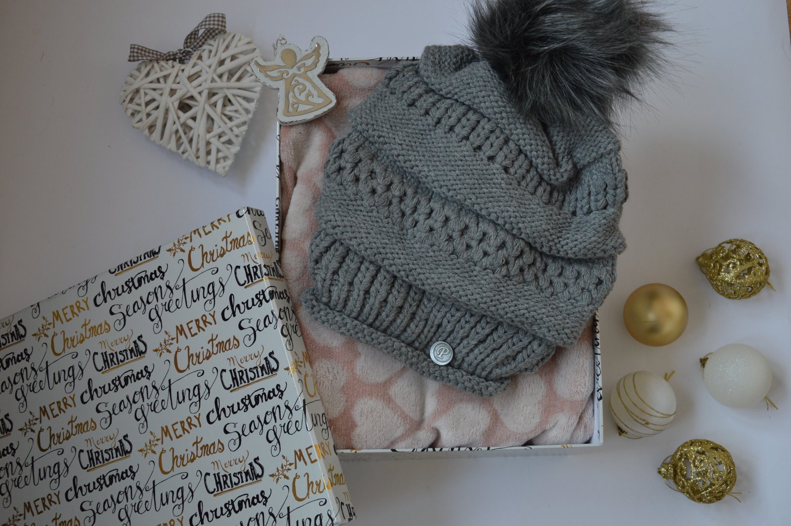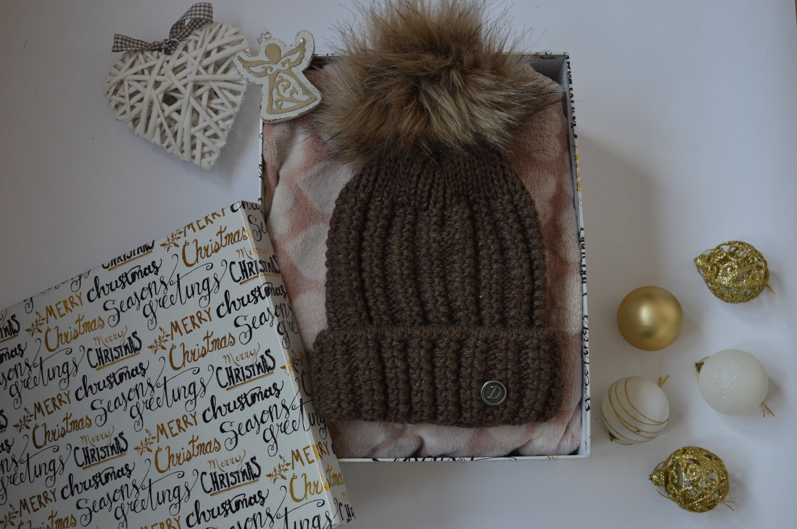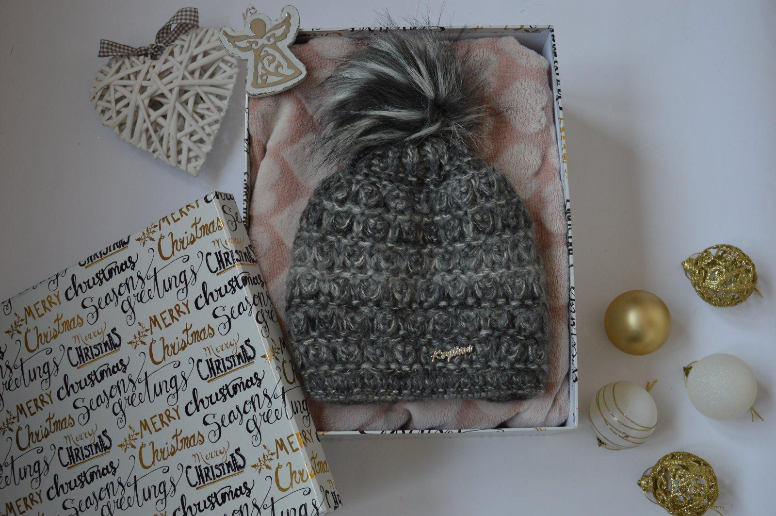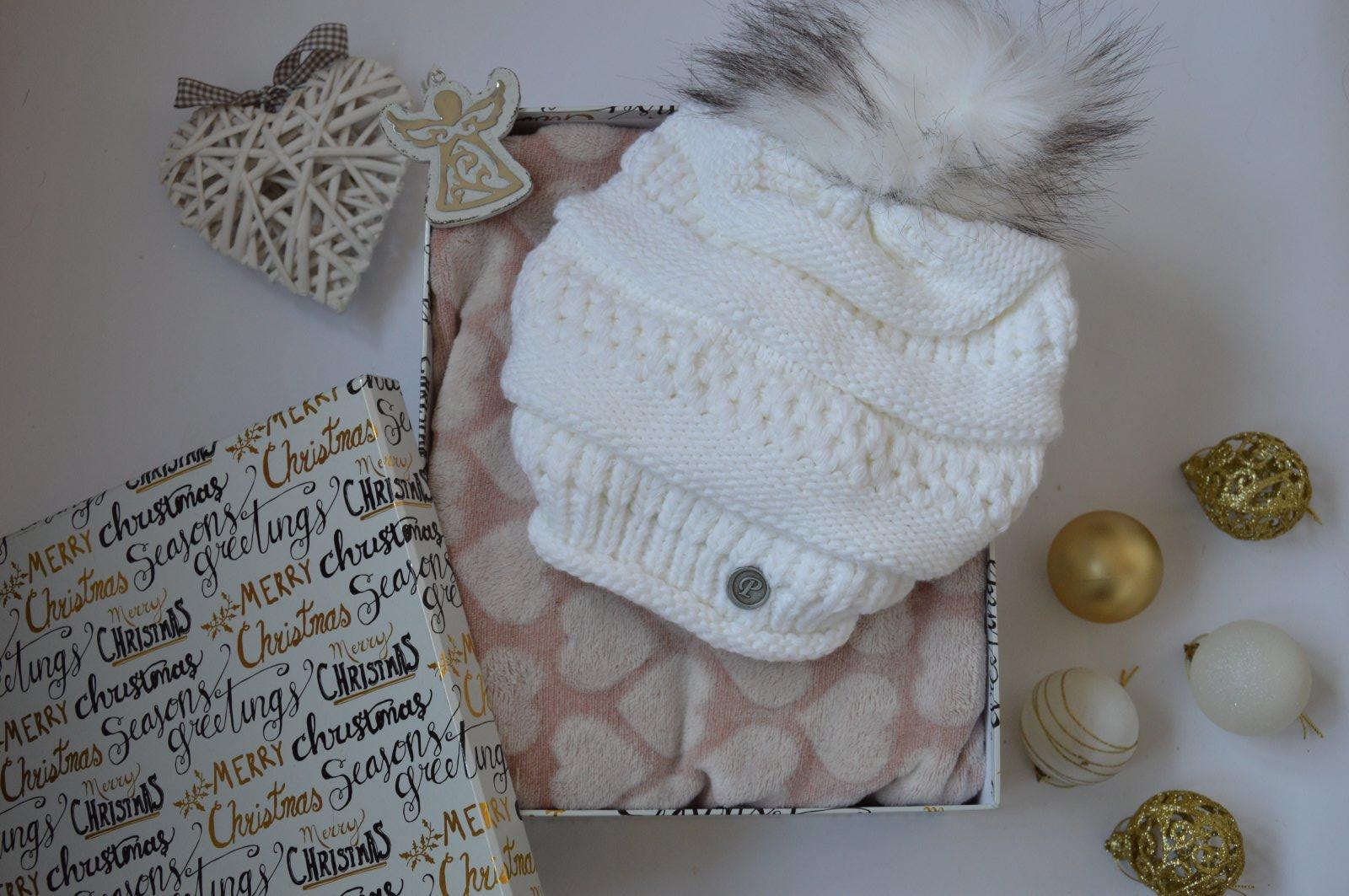 SkladomPletená čiapočka s veľmi pekným vzorom a bohatým brmbolcom.